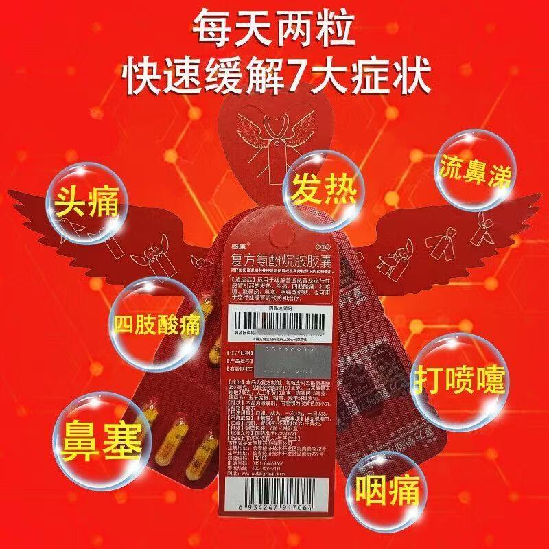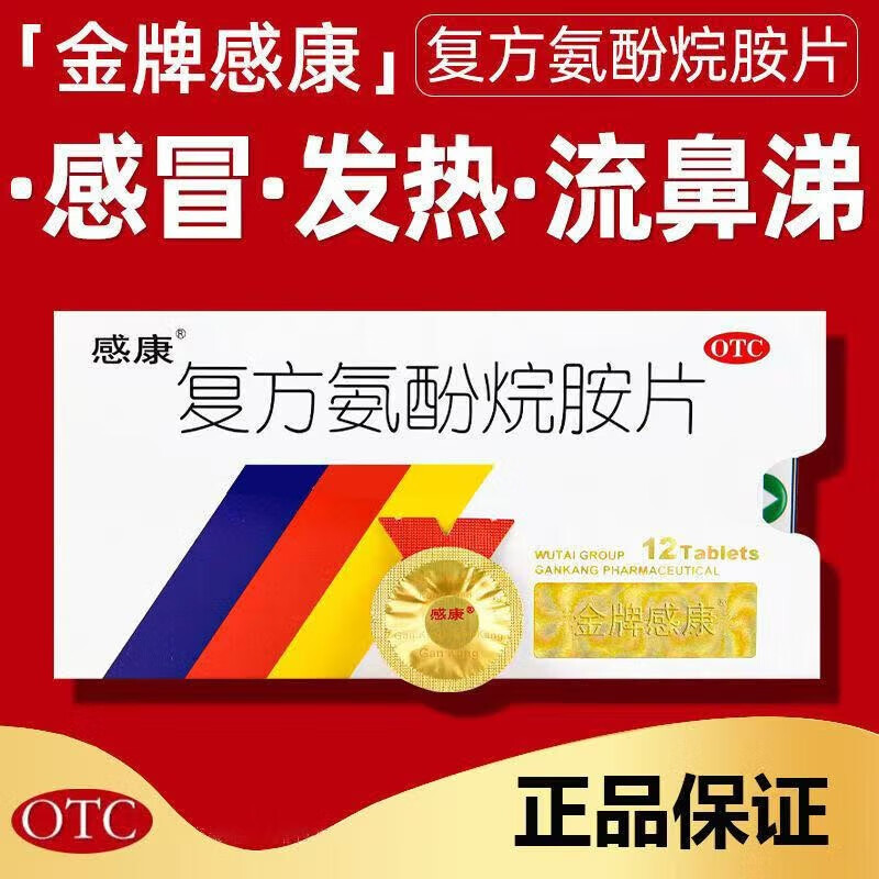 [感康]复方氨酚烷胺片 12片 1盒装 【流感必备】头痛四肢酸痛打喷嚏流鼻涕退烧药感冒常用片剂胶囊多重选择12片/粒 感康胶囊-易于携带
