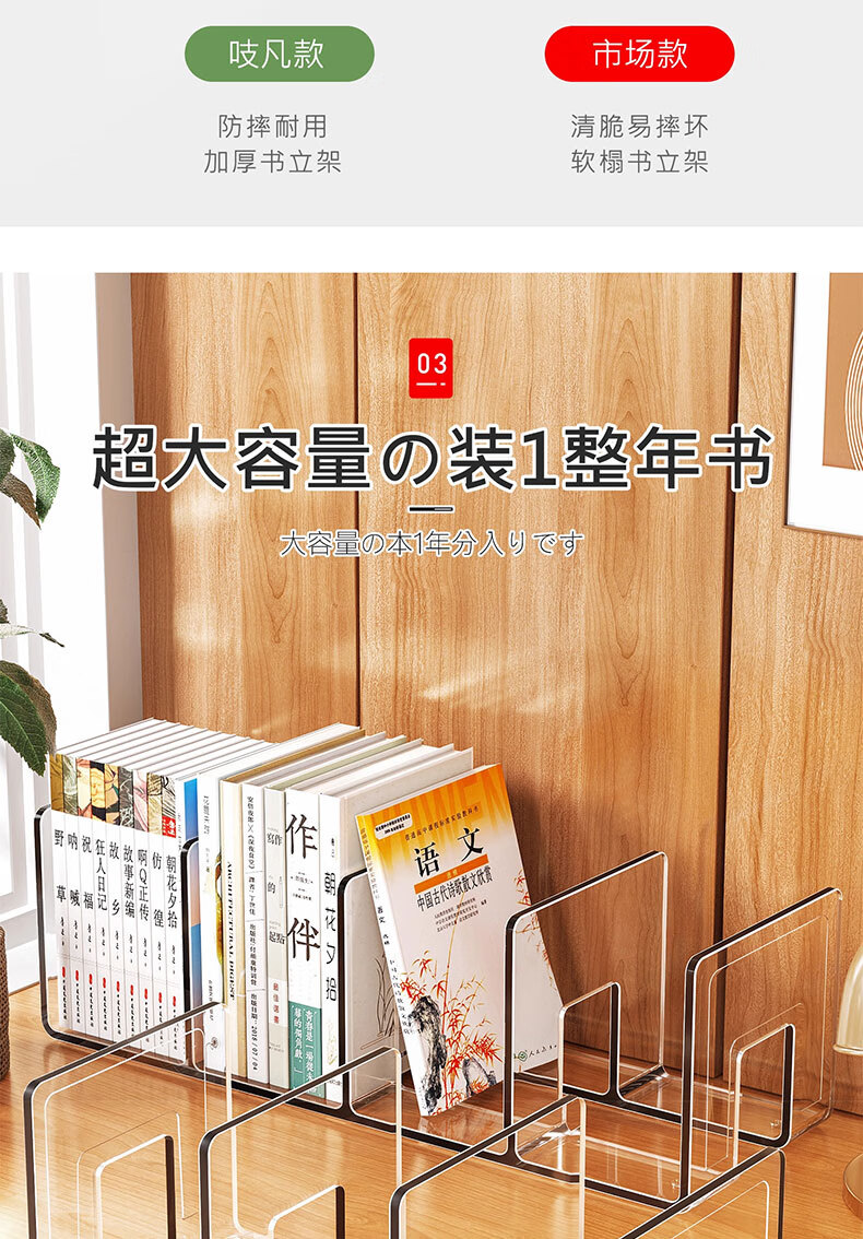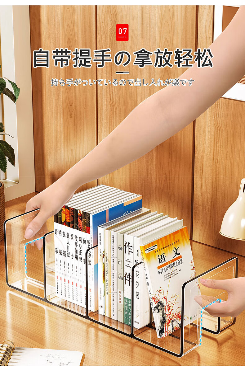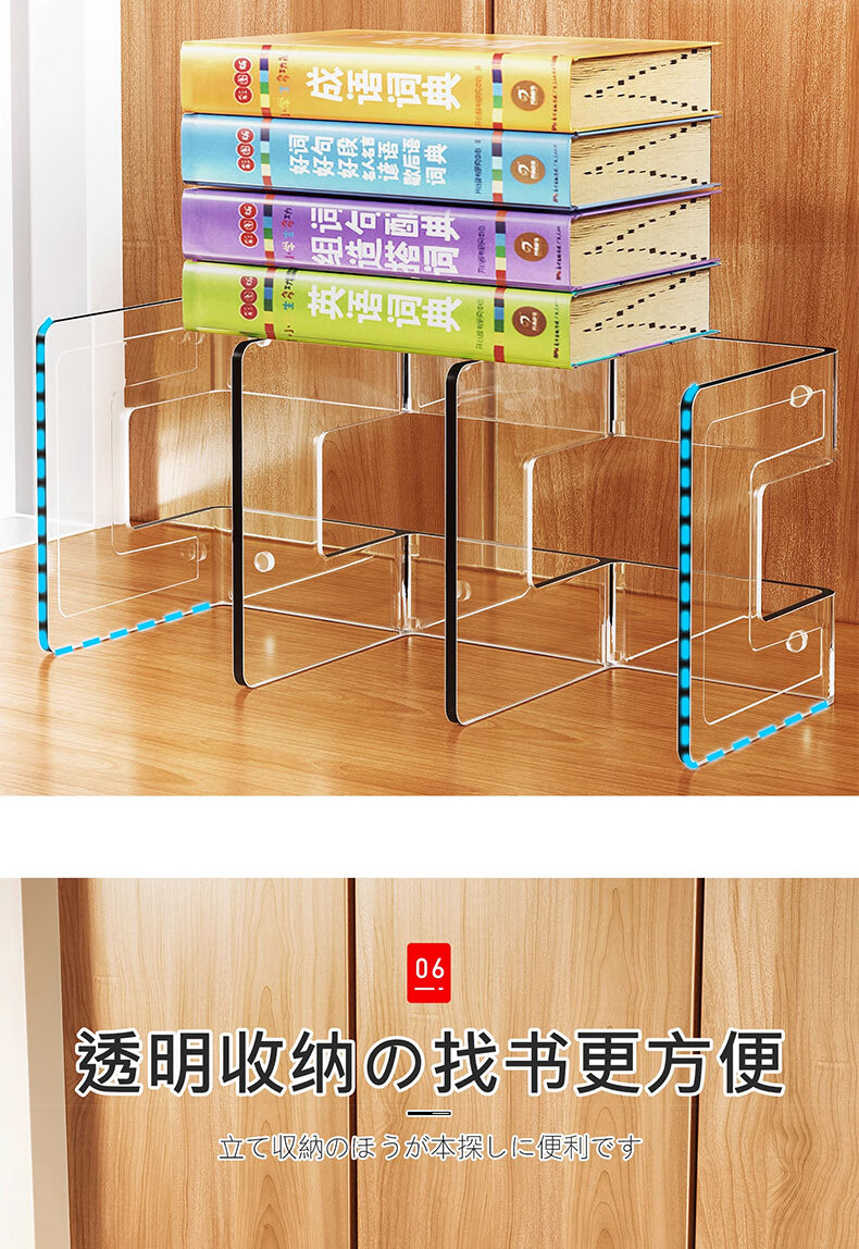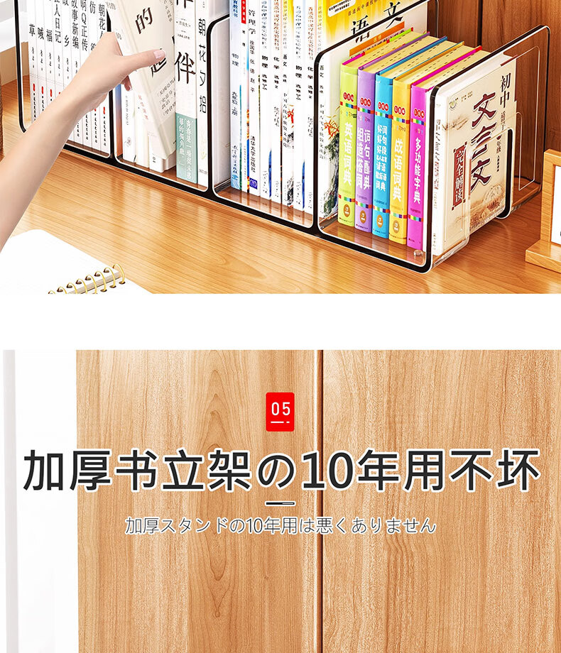 吱凡日本桌面书本收纳学生书桌书立架儿童绘本书架办公室文件夹置物架 【加大4格】【特厚耐摔】