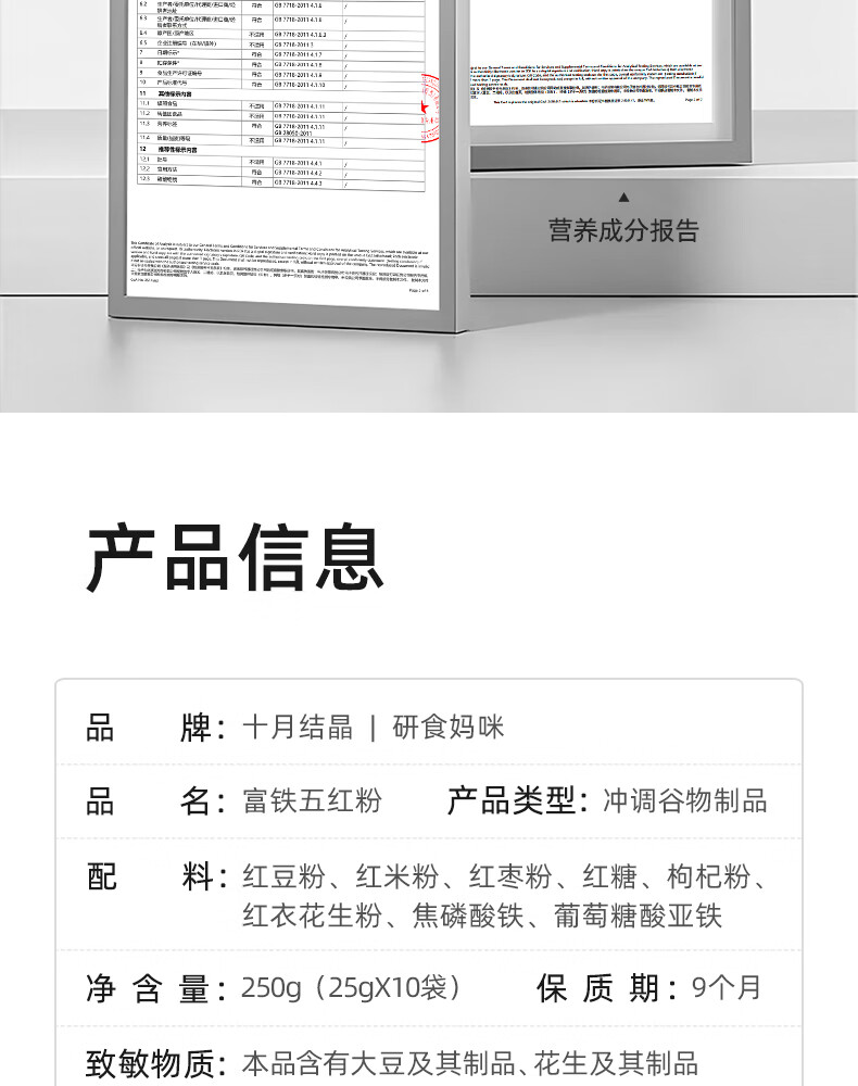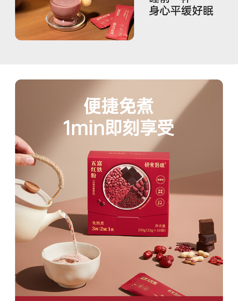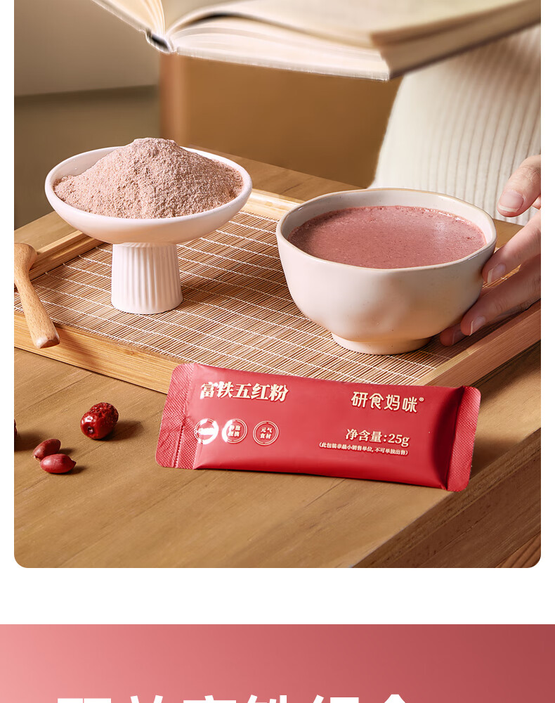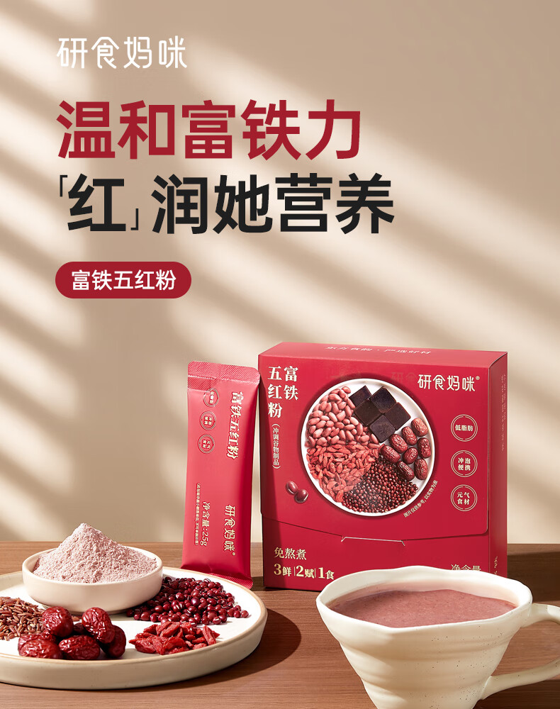 十月结晶研食妈咪富铁五红粉红豆汤孕妇五红汤孕期低脂营养代早餐 25g 10袋 【富铁五红粉】