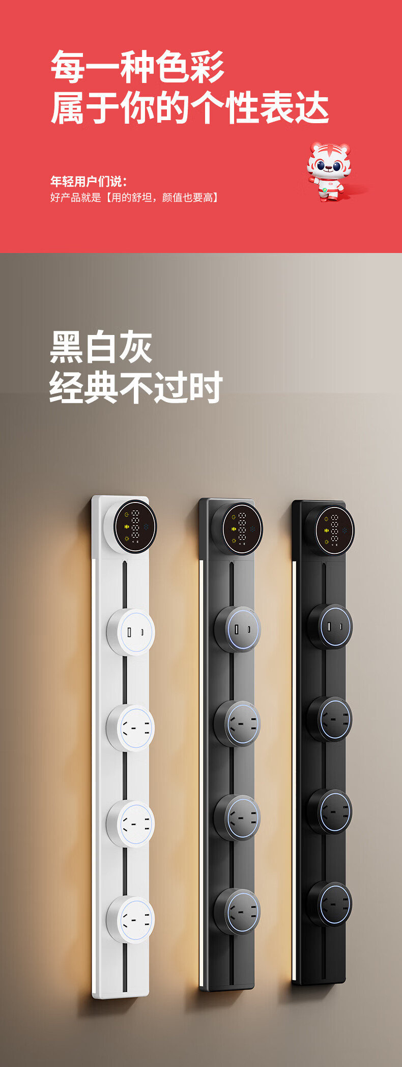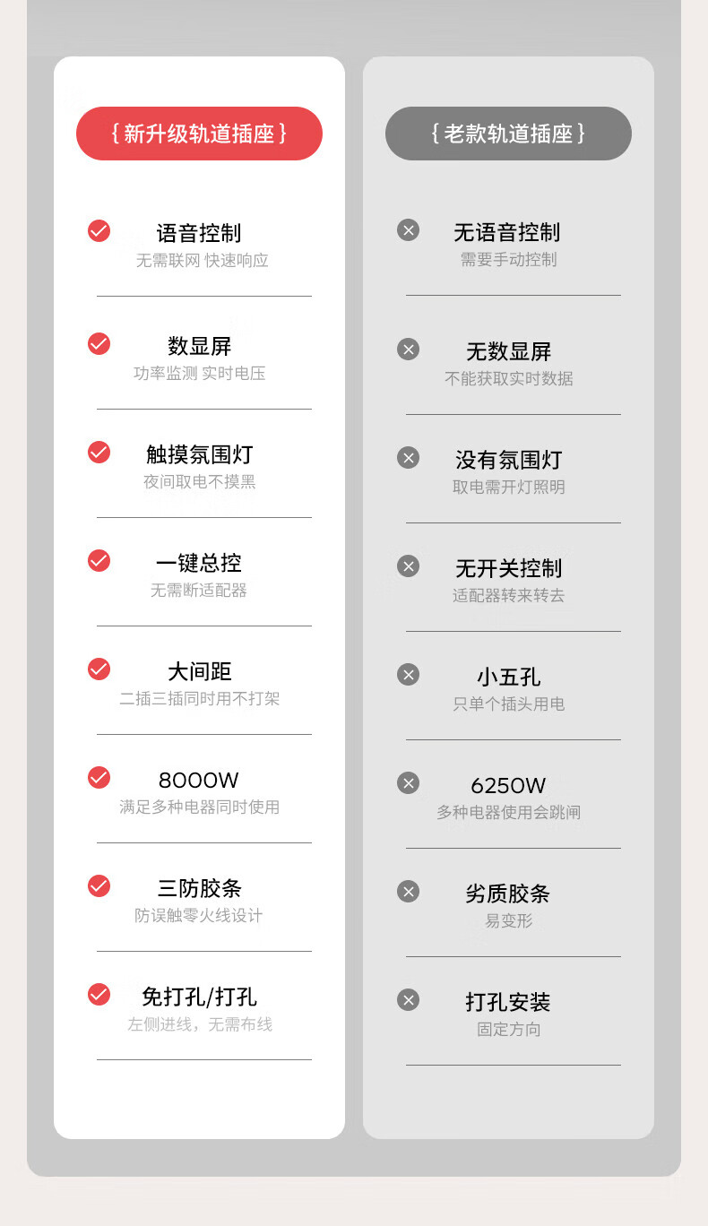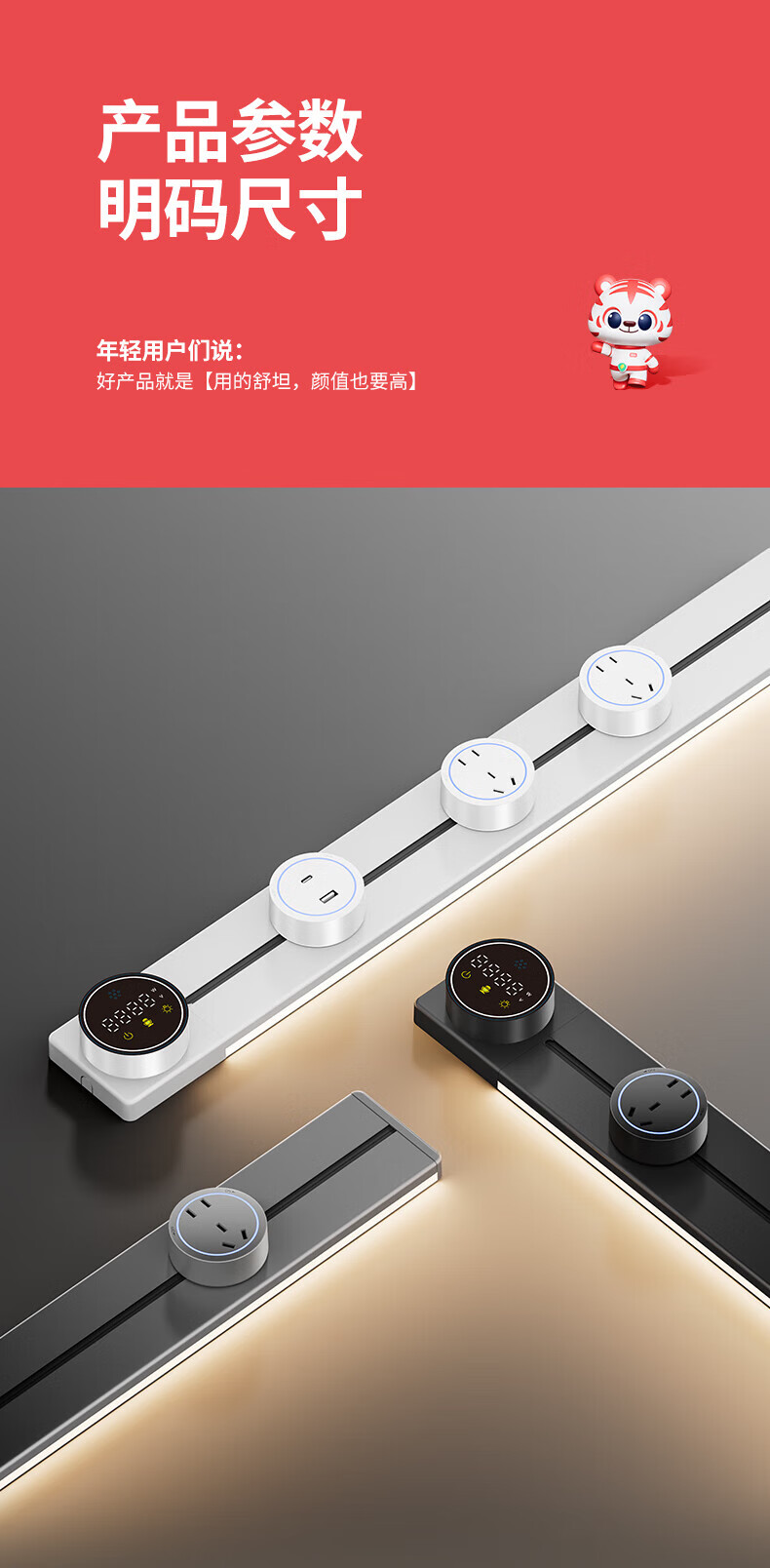 国际电工智能语音轨道插座家用厨房餐边柜移动带灯数显屏滑动插排功率监测 大五孔蓝灯适配器