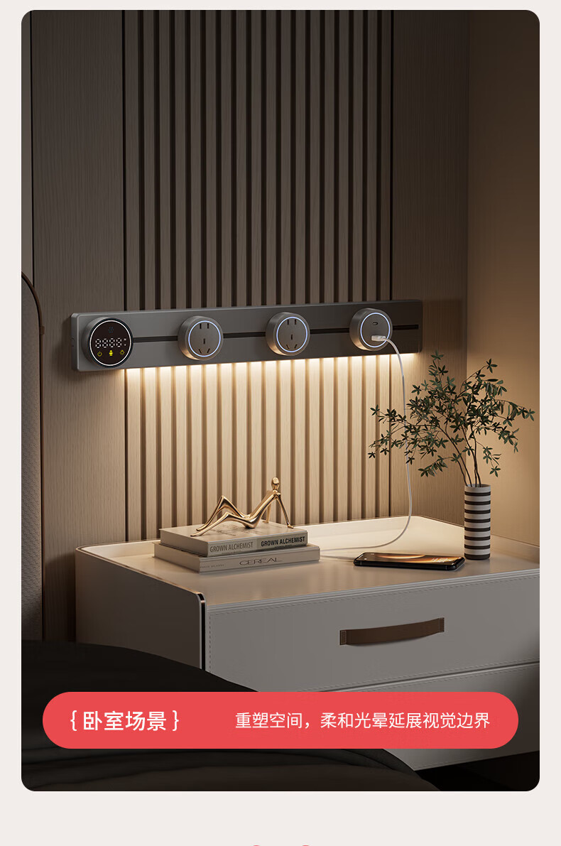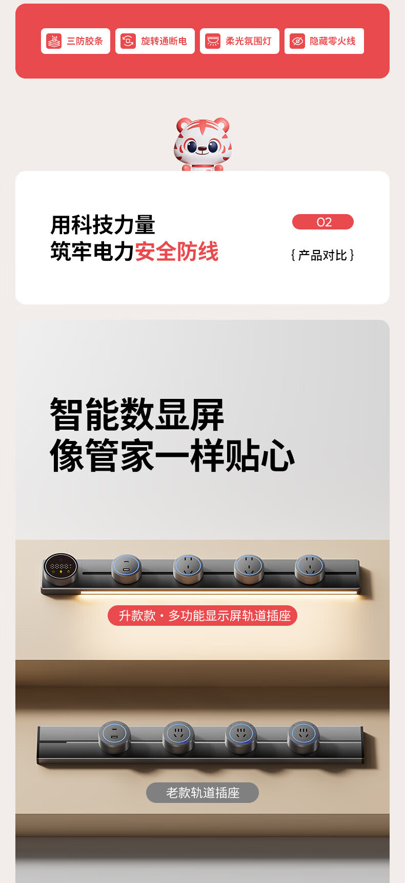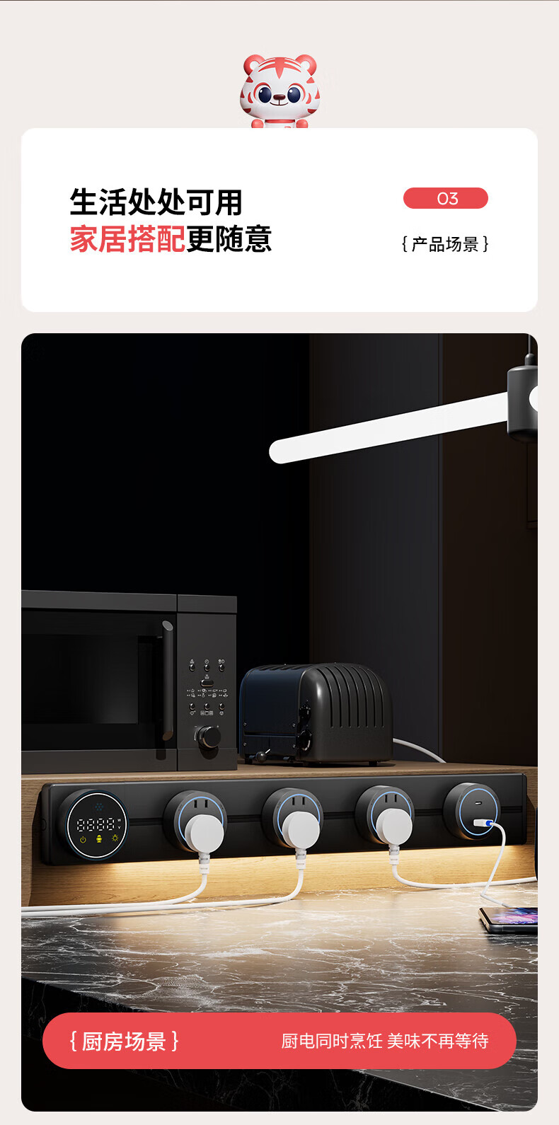 国际电工智能语音轨道插座家用厨房餐边柜移动带灯数显屏滑动插排功率监测 大五孔蓝灯适配器