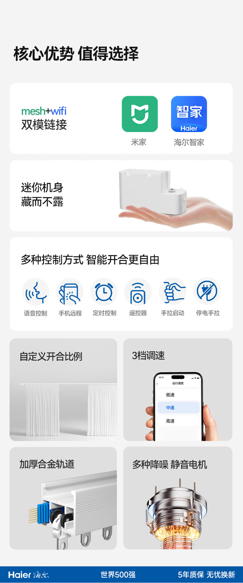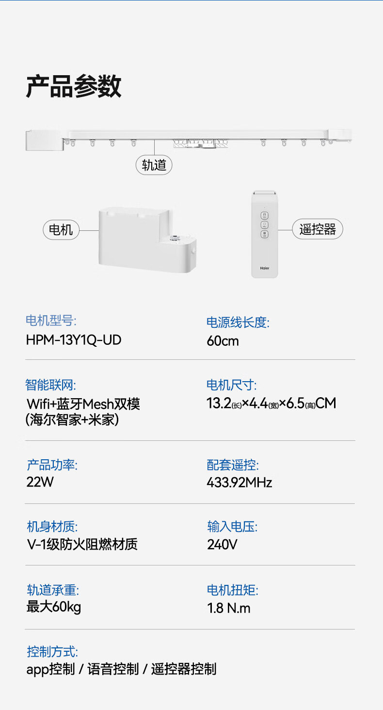 海尔电动窗帘轨道智能全自动电机米家控制 不足半米 按半米计算