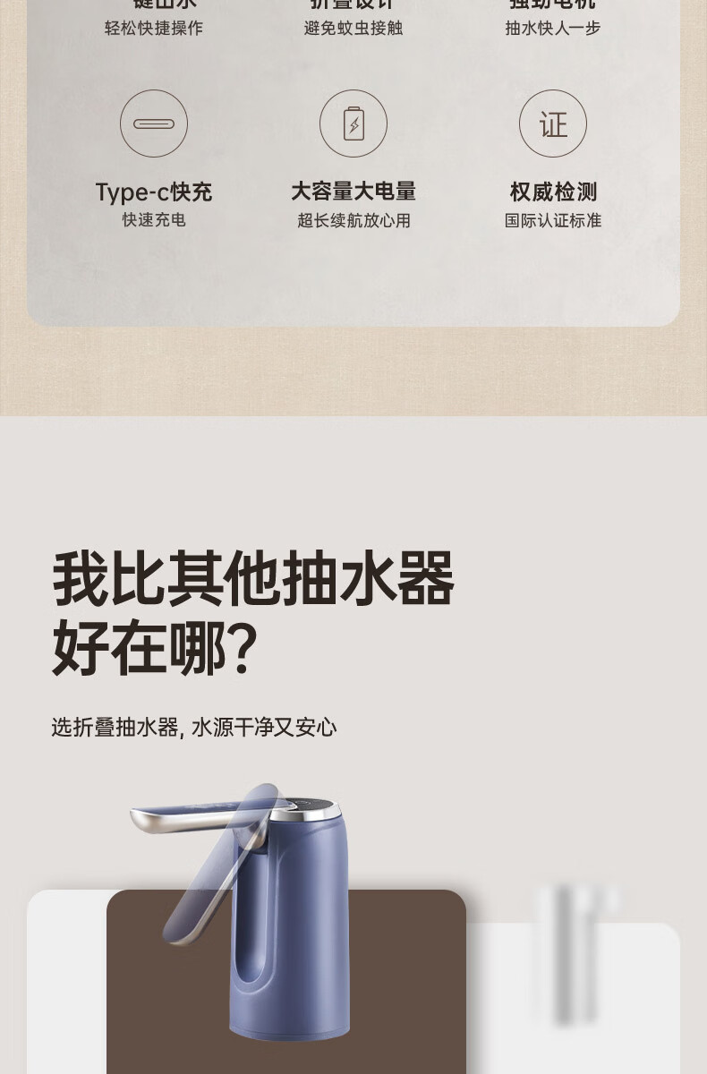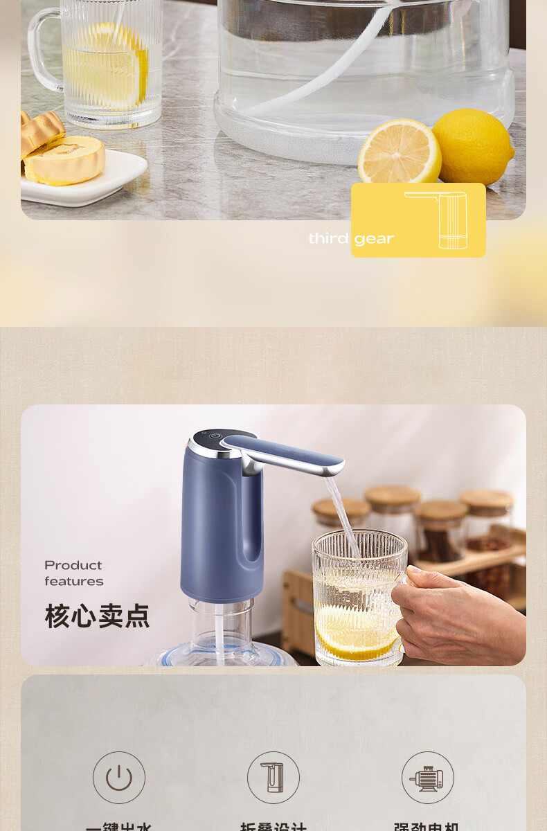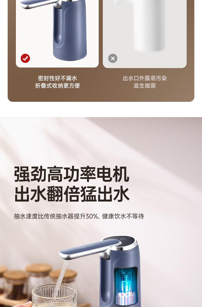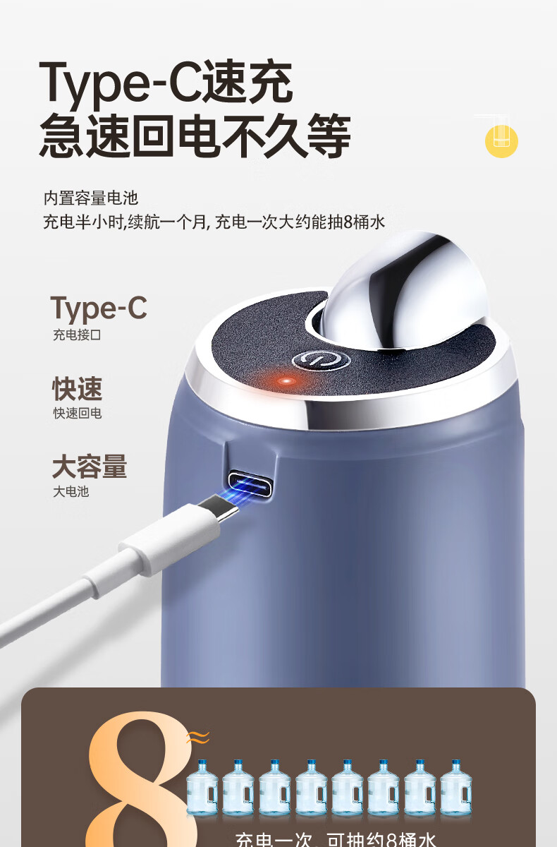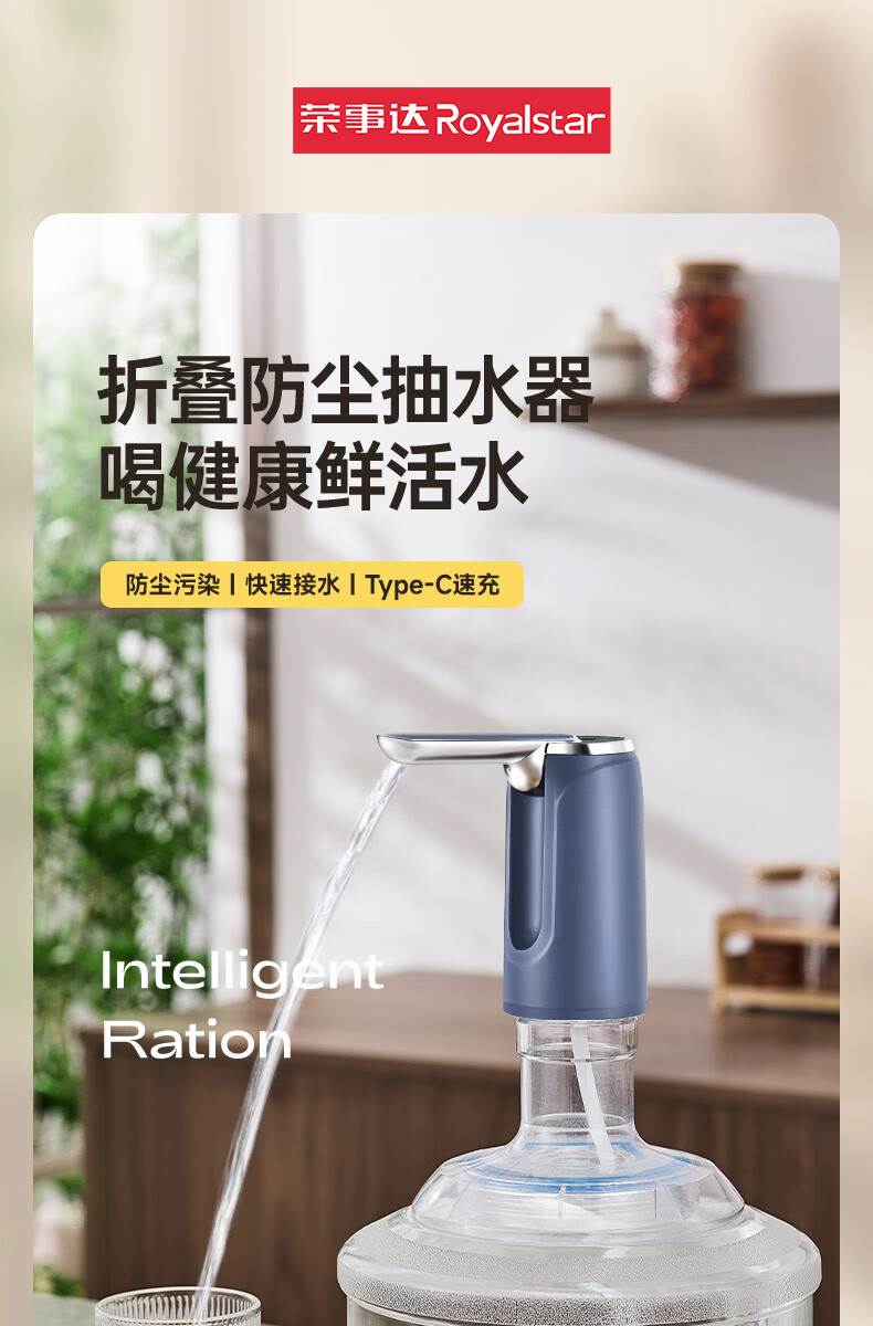 荣事达抽水器桶装水电动吸水器纯净水桶取水器家用压水器办公室出水神器 【折叠定量】全面抗菌+超长续航