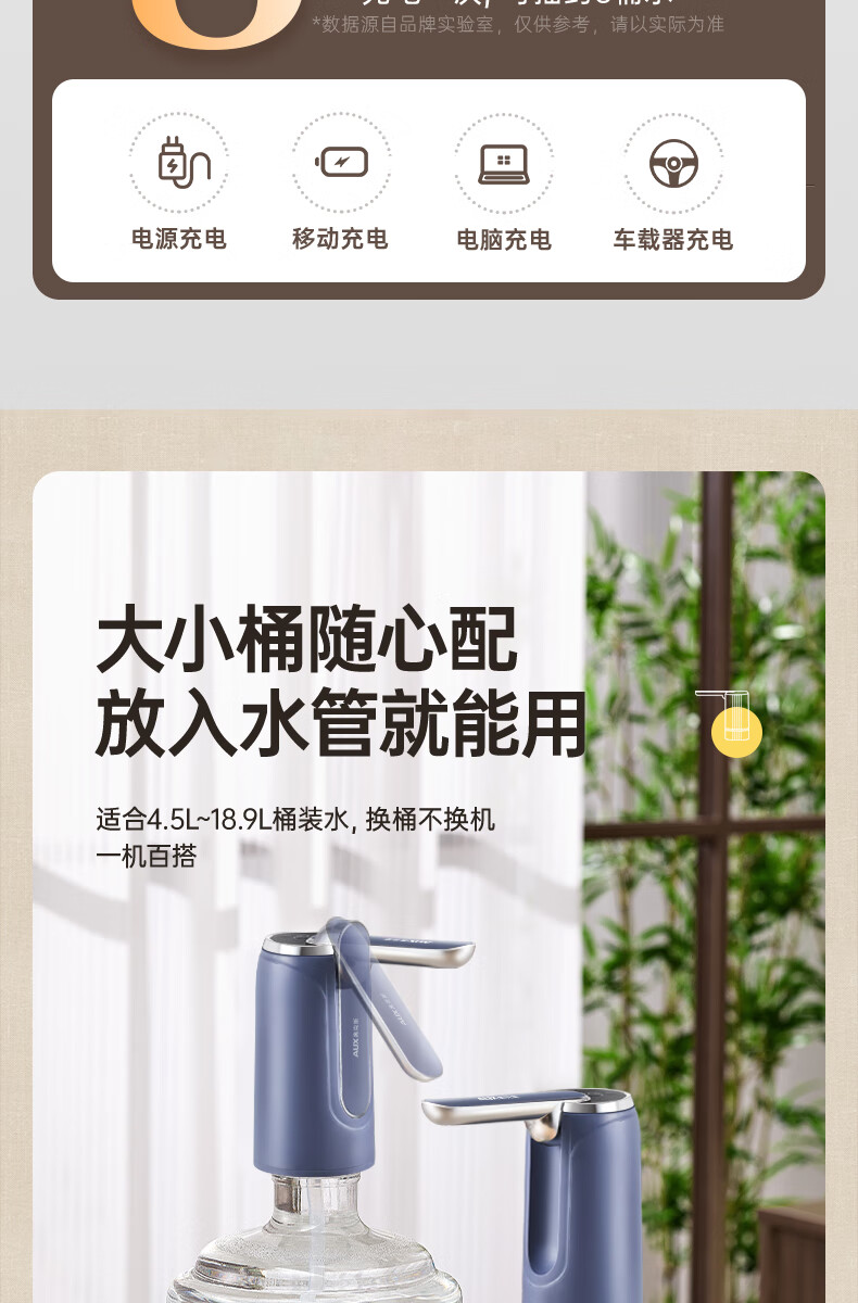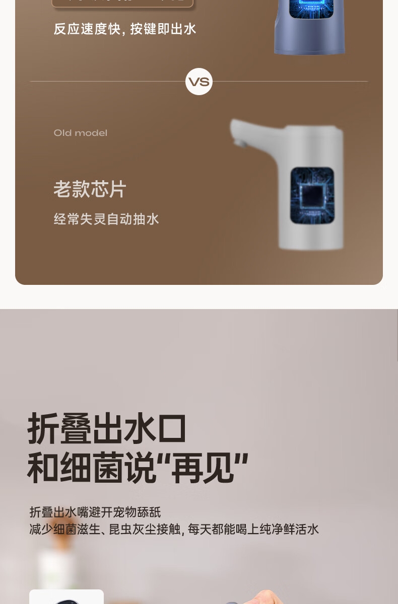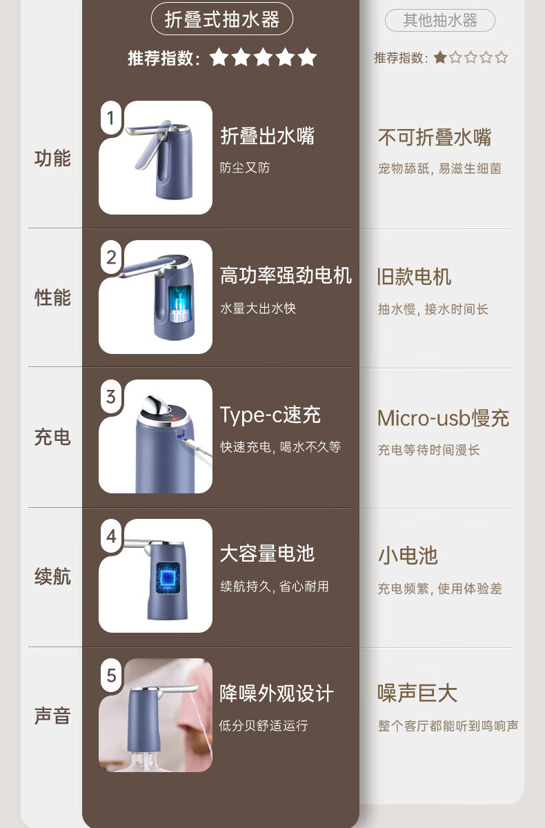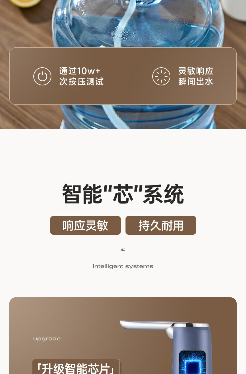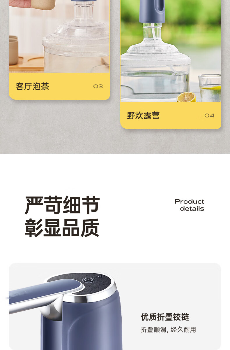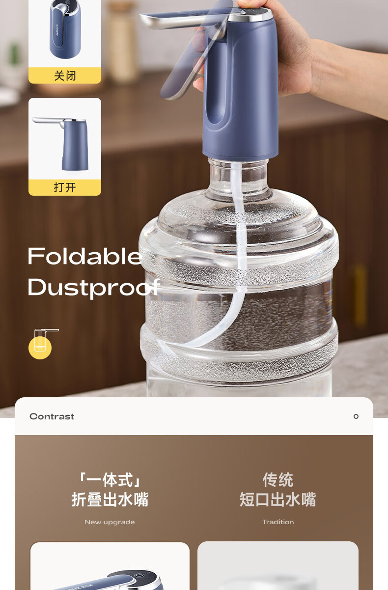 荣事达抽水器桶装水电动吸水器纯净水桶取水器家用压水器办公室出水神器 【折叠定量】全面抗菌+超长续航