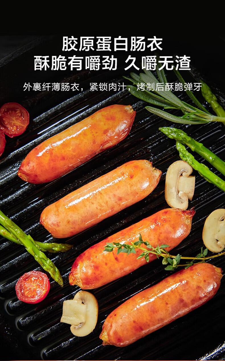 【纯香肉肠】地道黑胡椒火山石脆皮烤肠风味香肠纯香肉肠热狗 【10根】火山石烤肠黑椒味200g