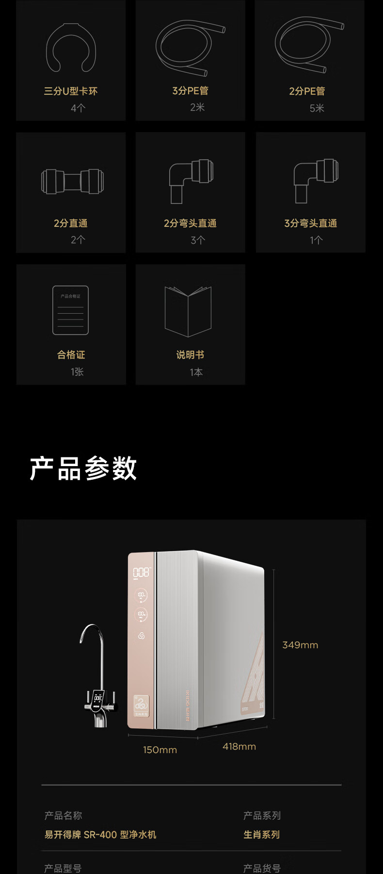 易开得家用净水器净水机直饮净水机厨下净水器6年长效RO膜RO反渗透净饮机直饮一体机国家补贴生肖系列