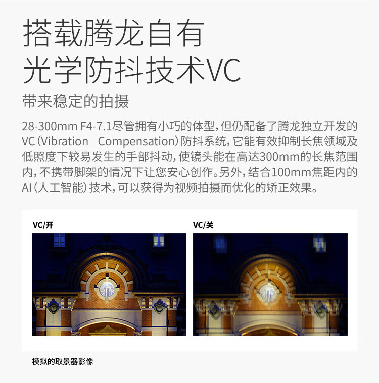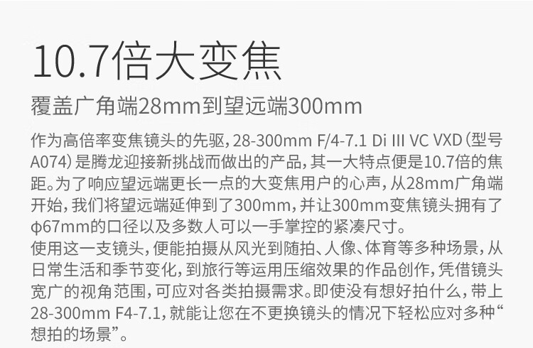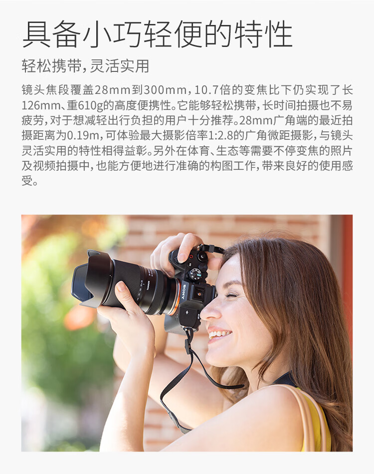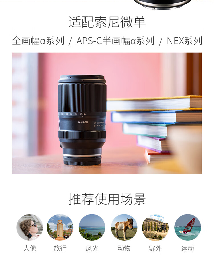 腾龙(Tamron)A074S 28-300mm F/4-7.1 Di III VC VXD防抖大变焦长焦 旅行风光 全画幅微单镜头(索尼全幅E口)
