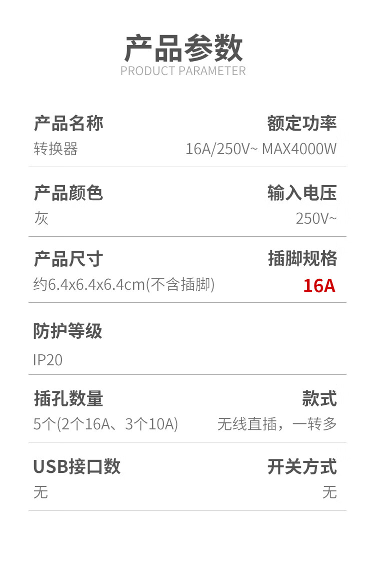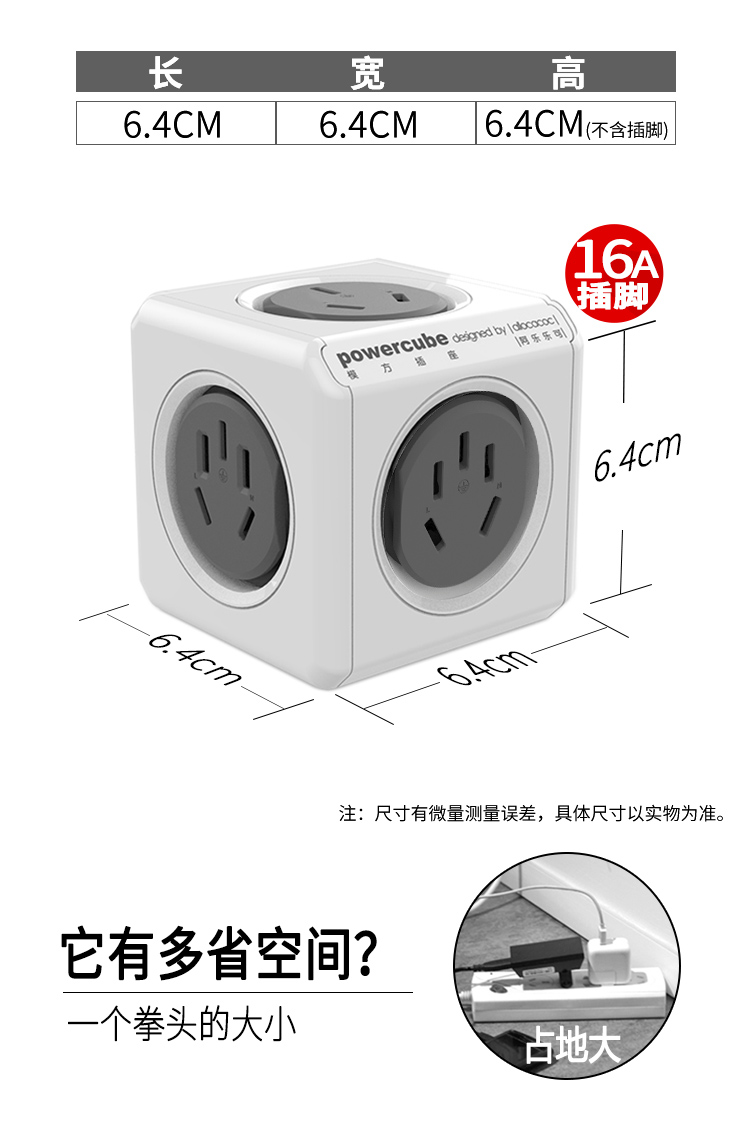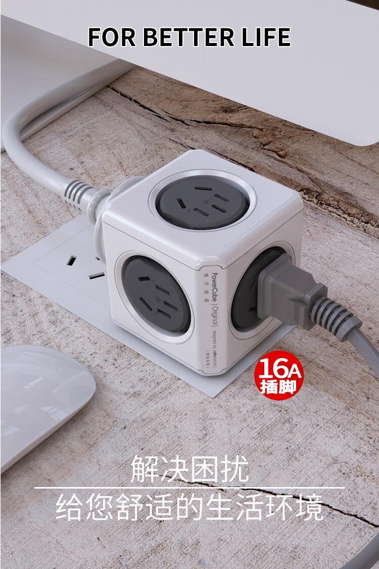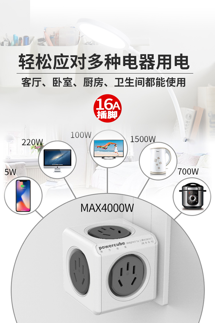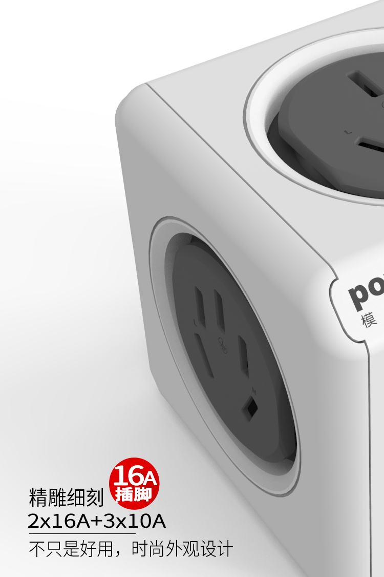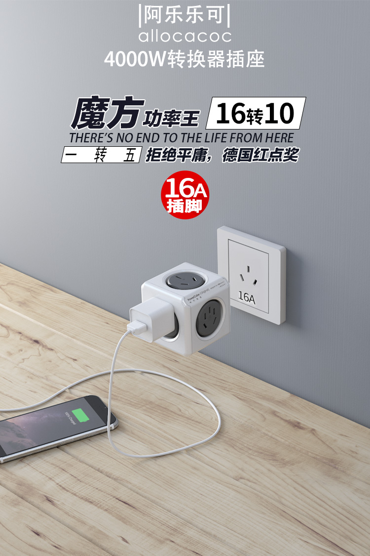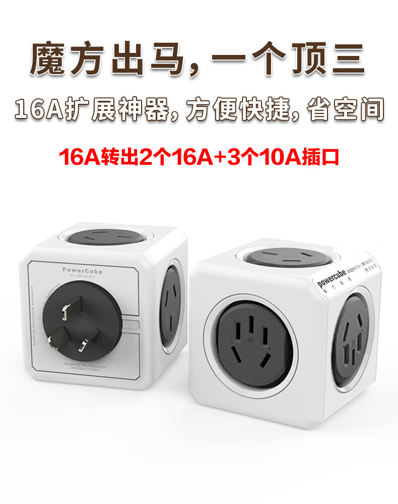 阿乐乐可大功率16A魔方插座转换器一转多 16A转10A转出2个16A+3个10A插口 空调/热水器/电暖器适用