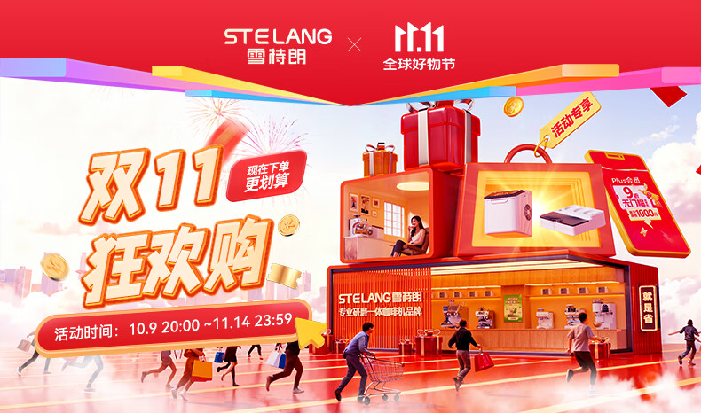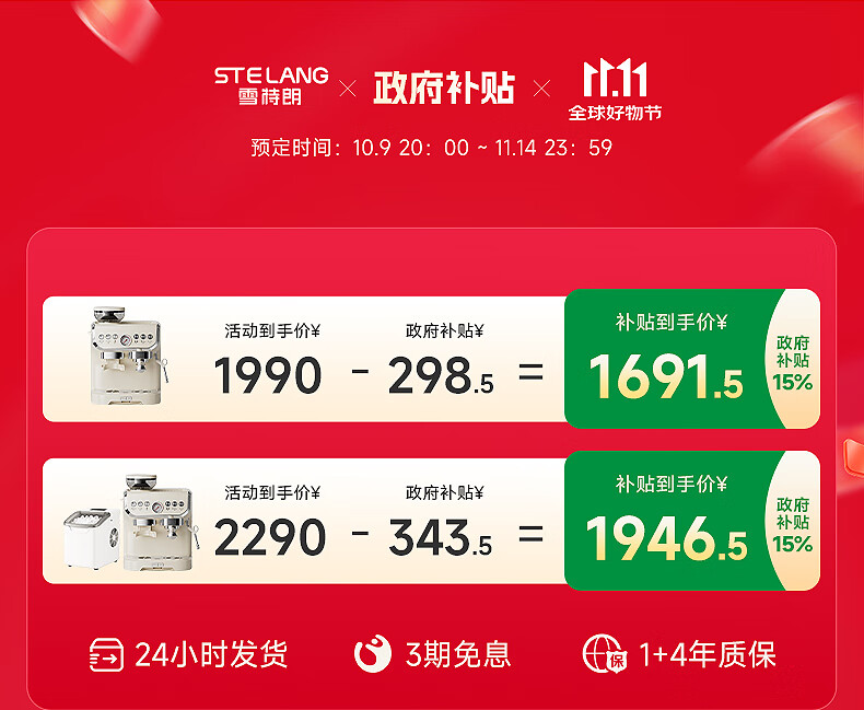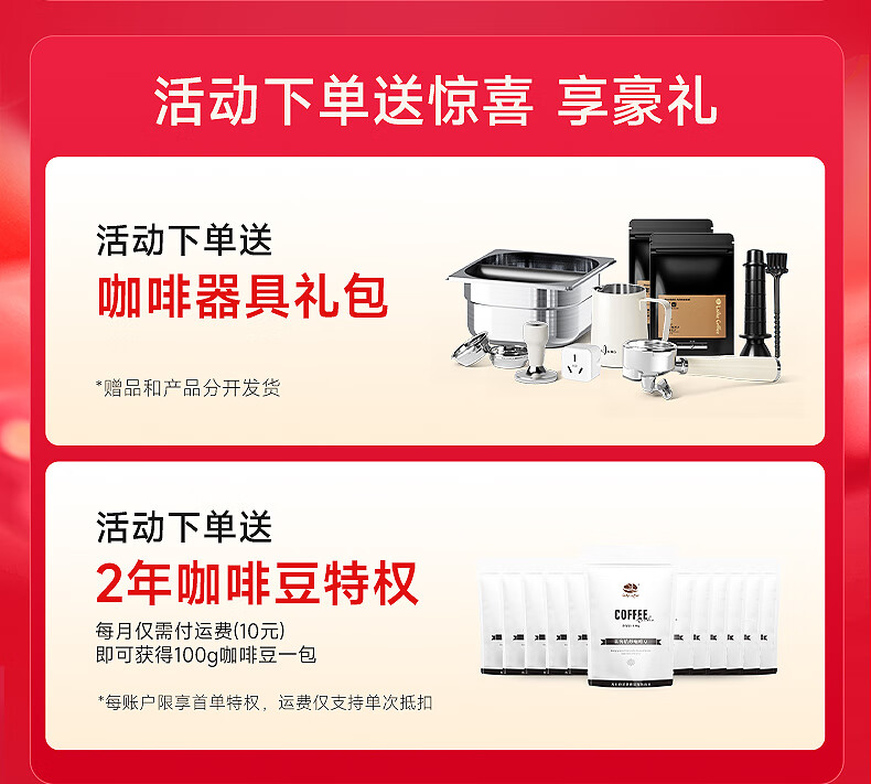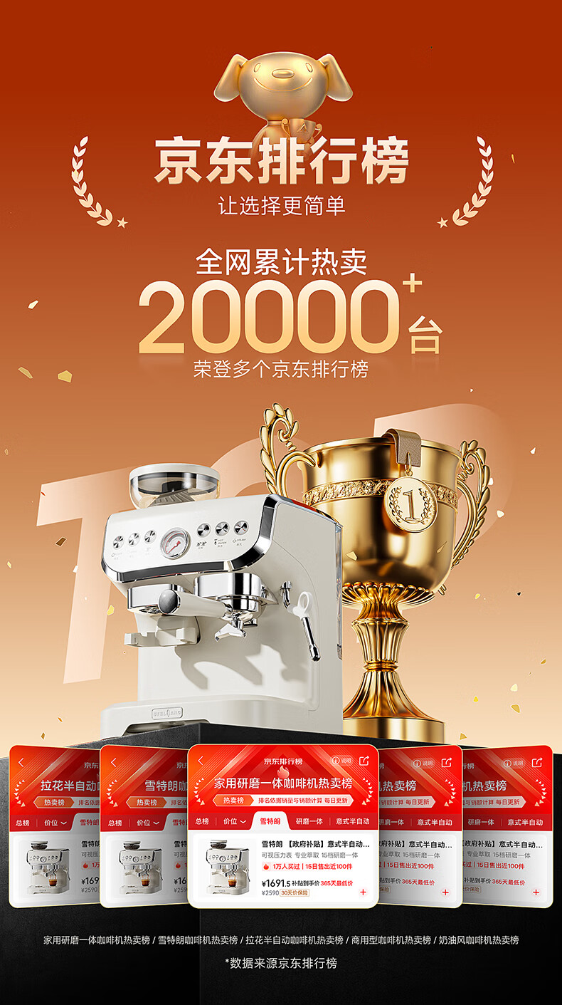 雪特朗 【政府补贴】意式半自动咖啡机家用磨豆机奶泡机研磨一体 可视压力显示AC-517E 【双系统双泵】米白色