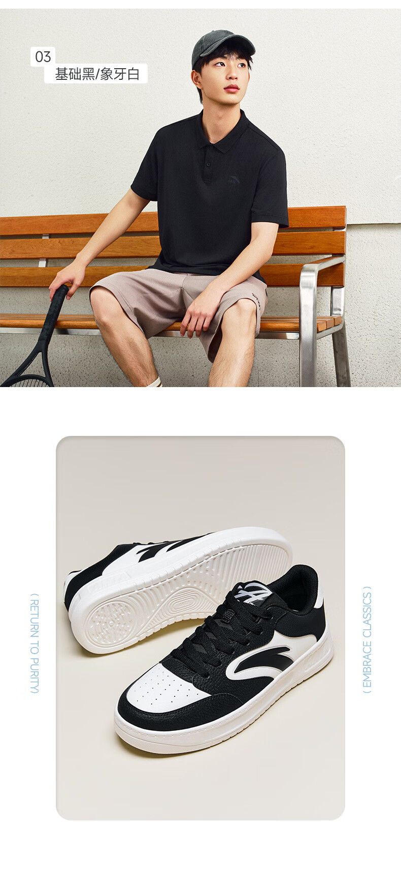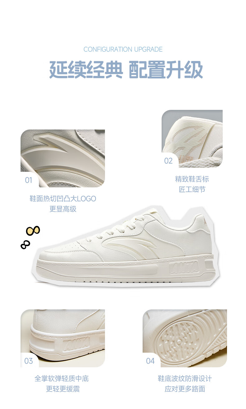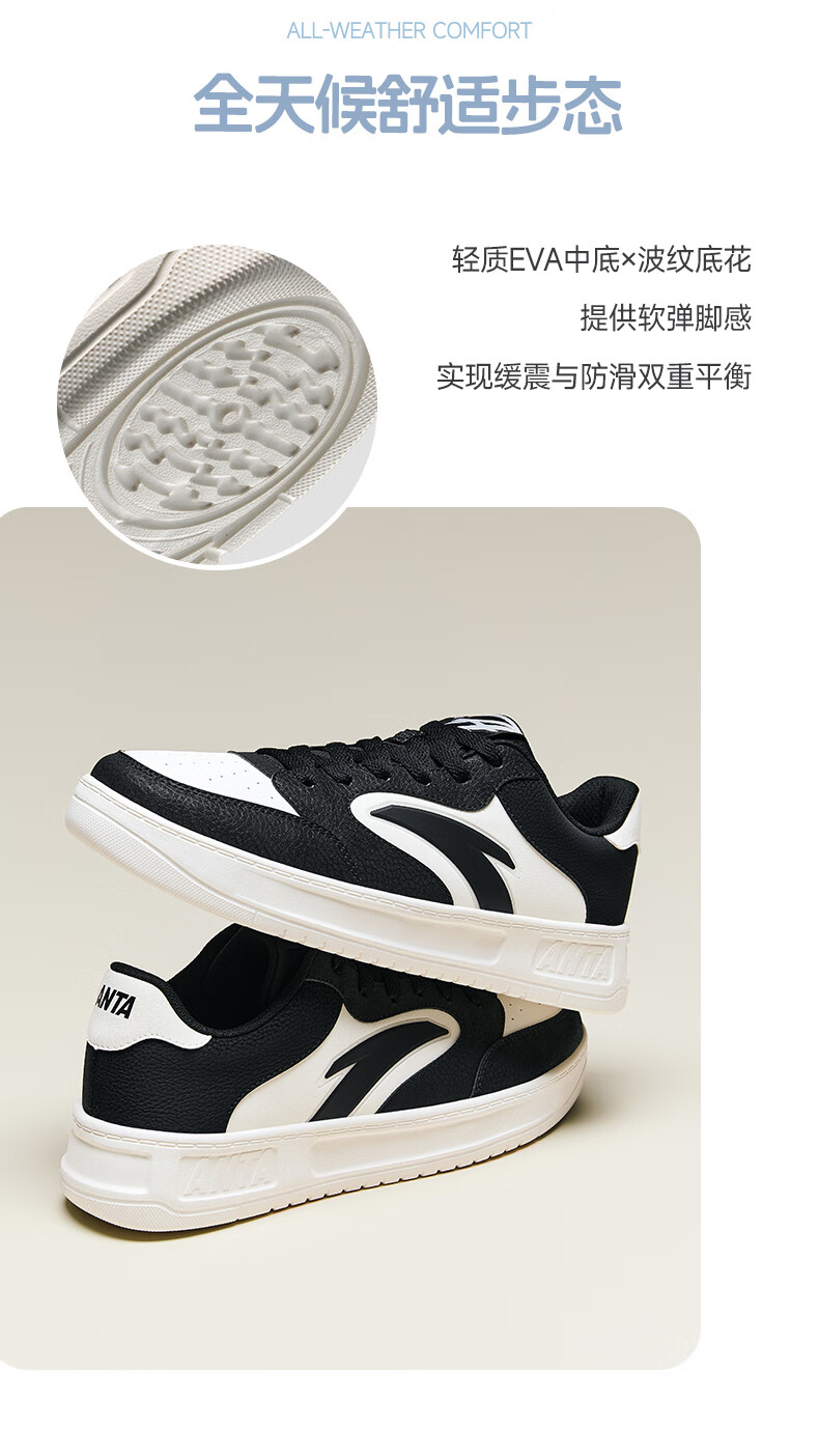 安踏轻松2丨板鞋男秋季经典简约运动鞋百搭小白鞋厚底休闲鞋