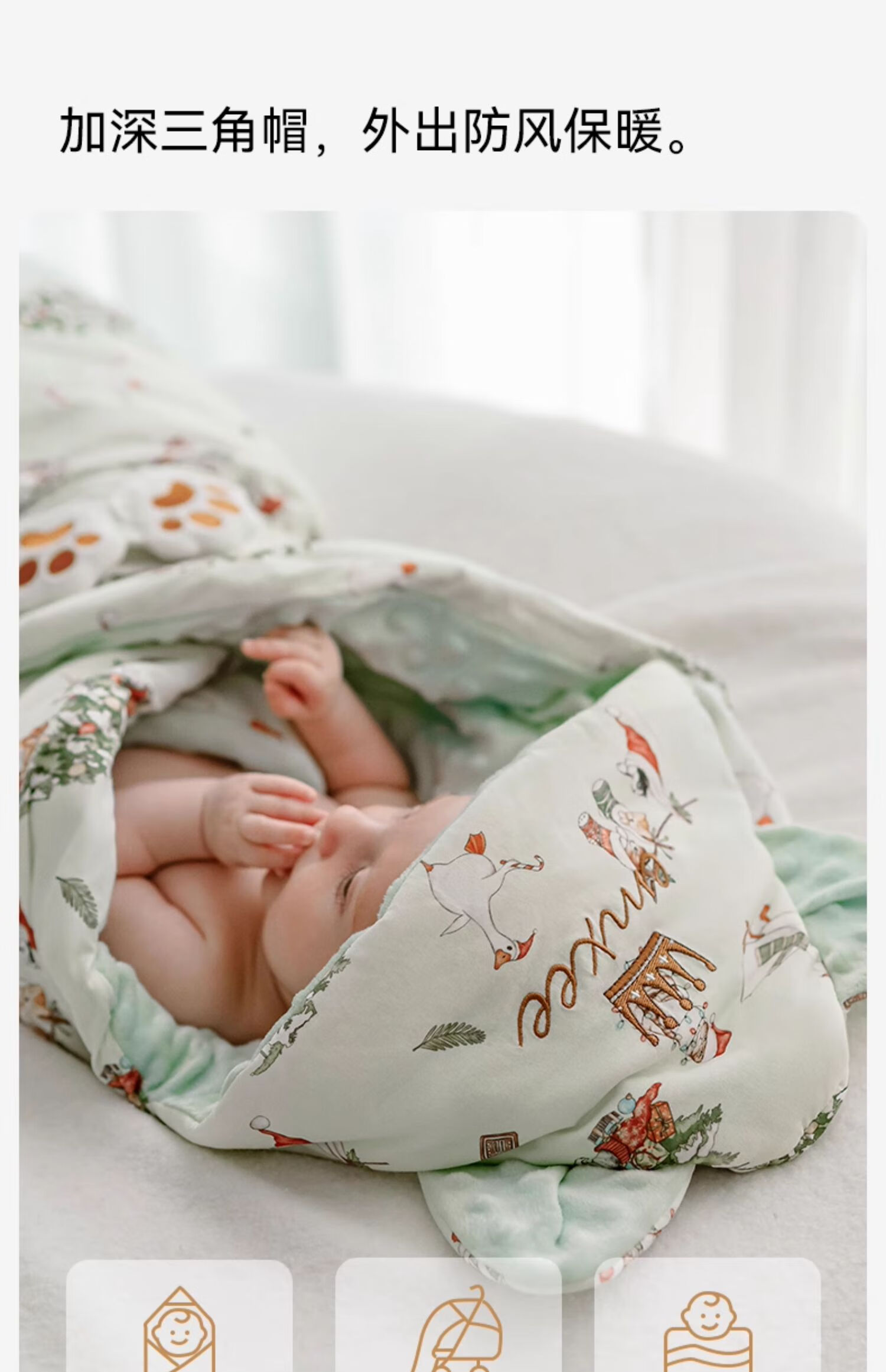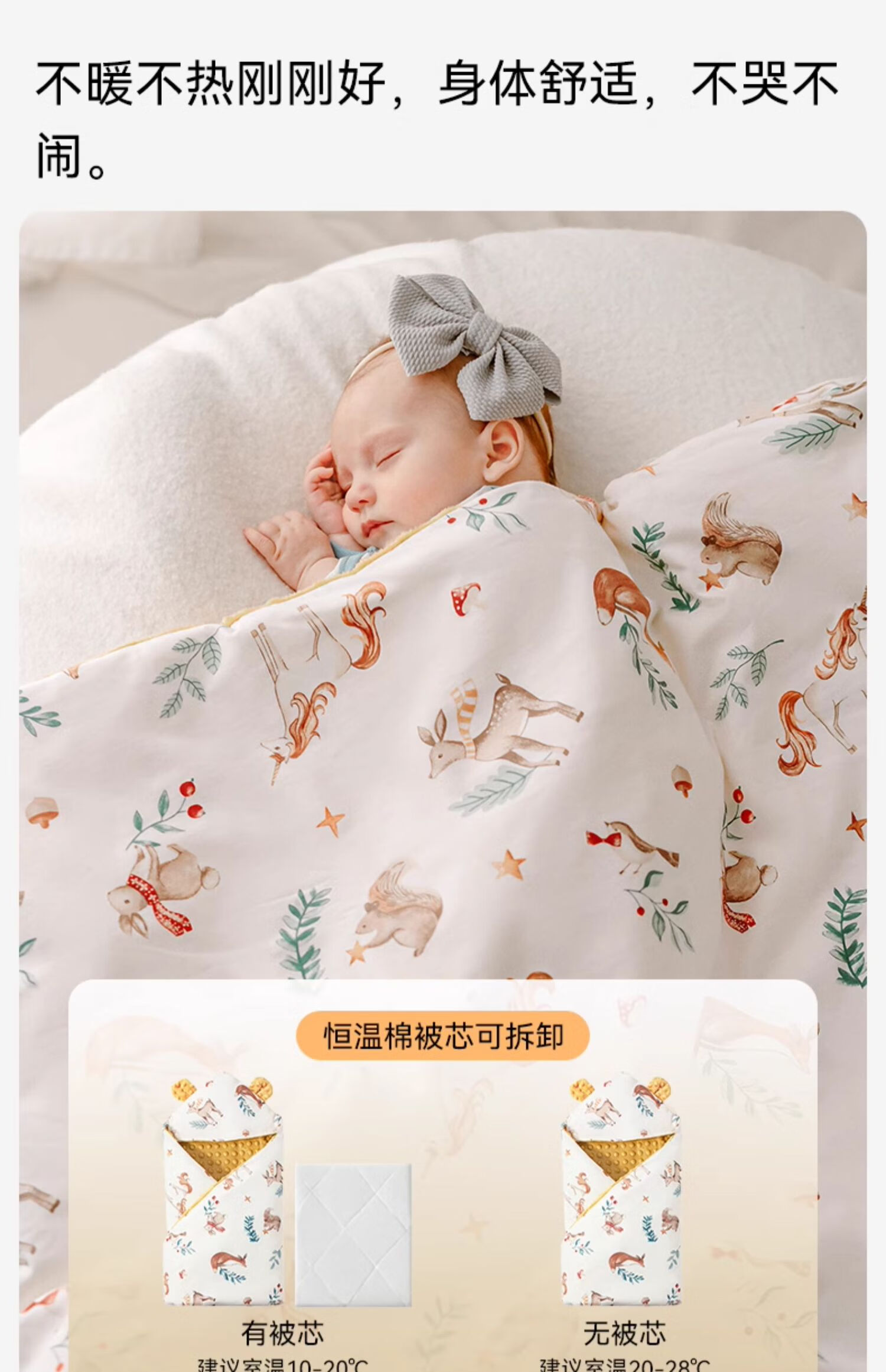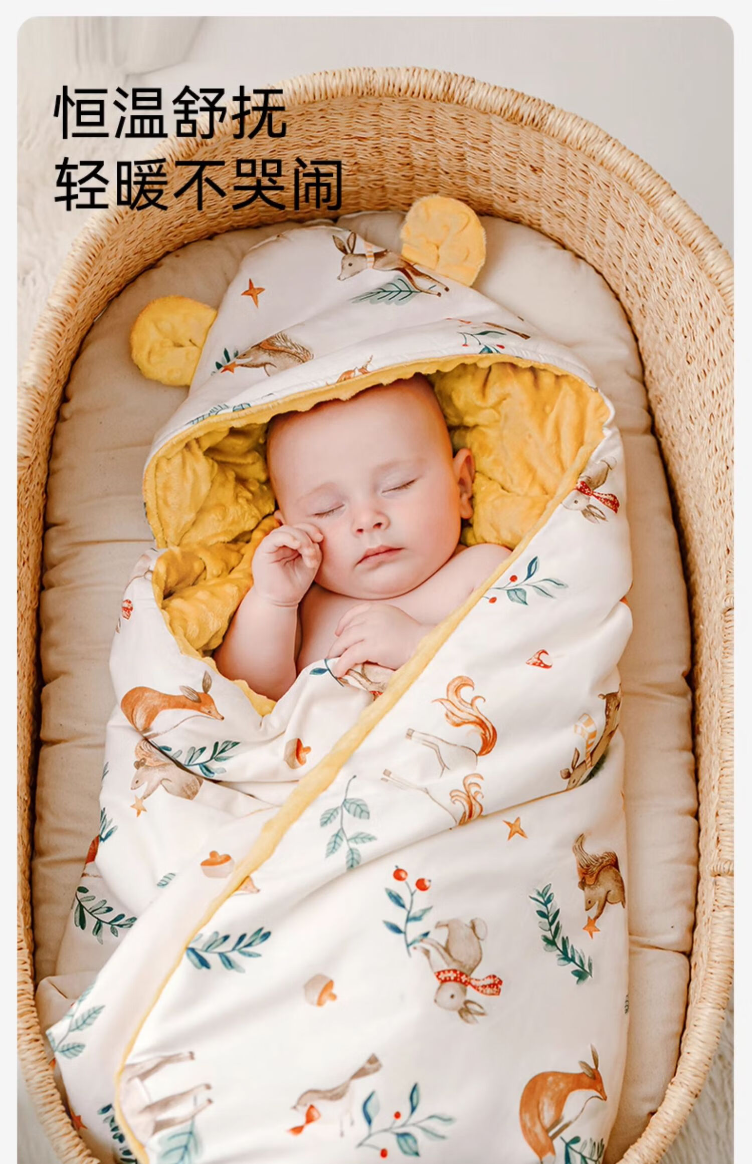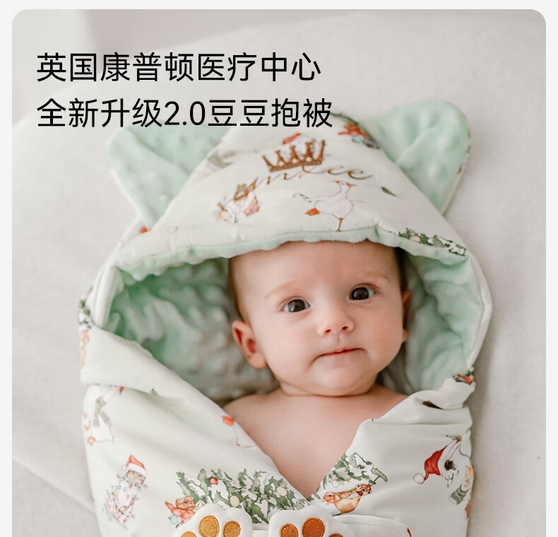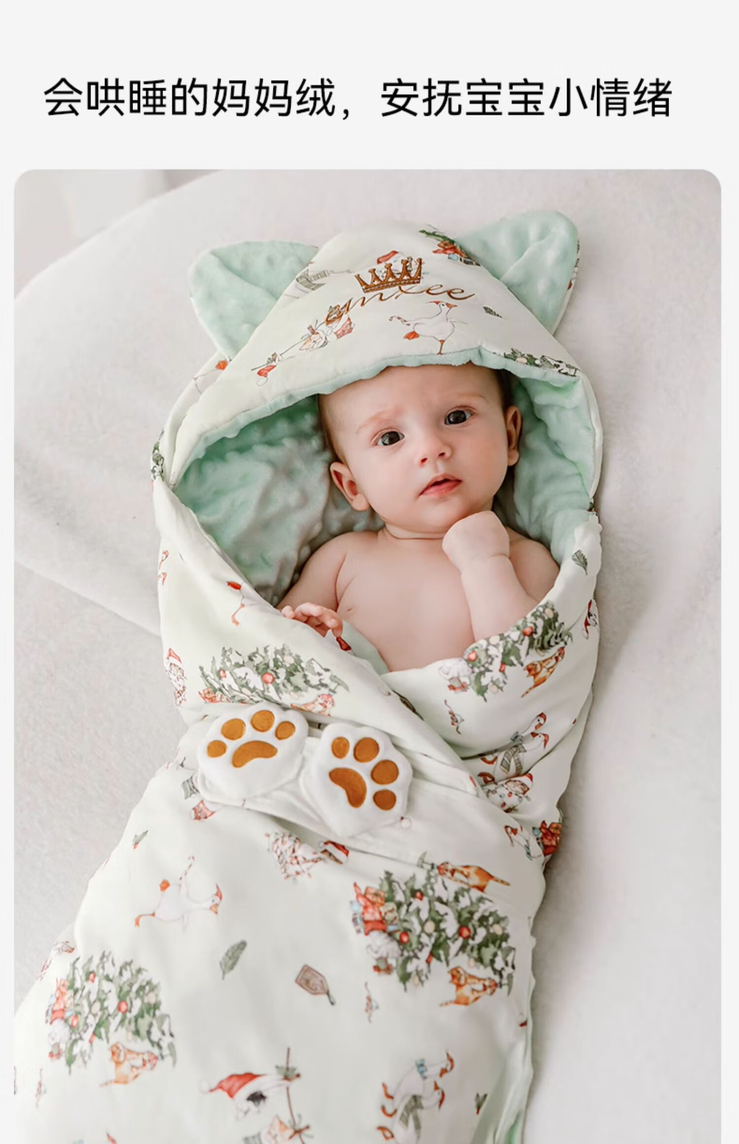 嫚熙(EMXEE)婴儿包被新生儿豆豆绒抱被宝宝秋冬季通用包单防惊跳 纳维亚森林(内芯可拆 10-28℃) 90*90cm