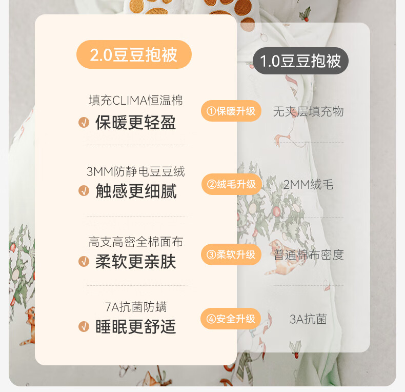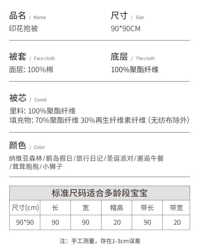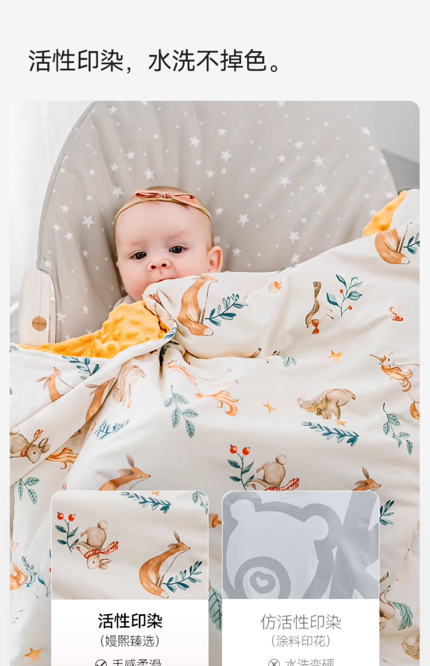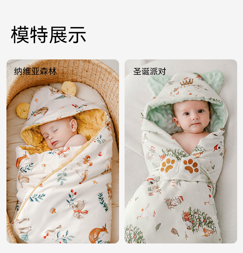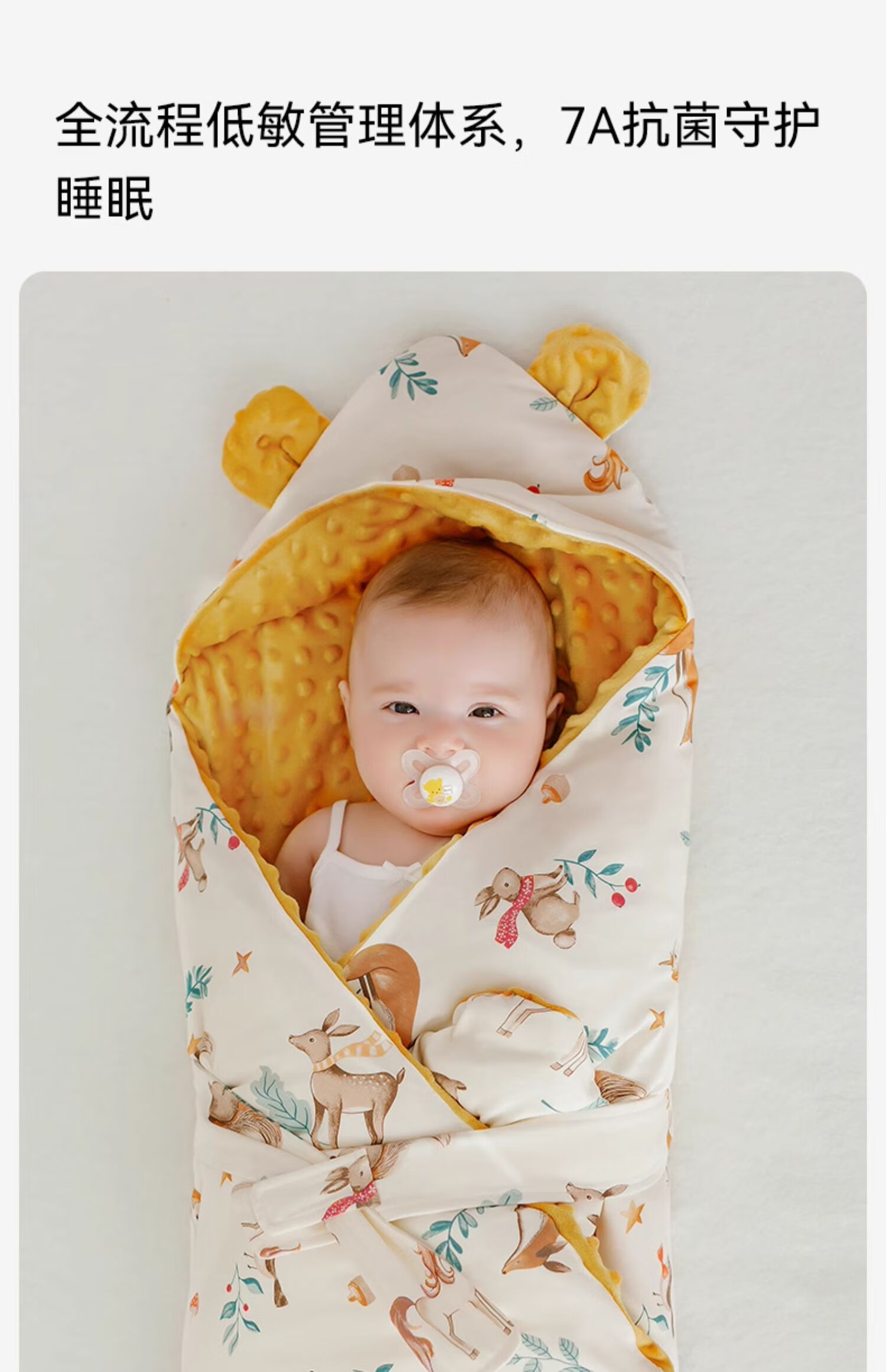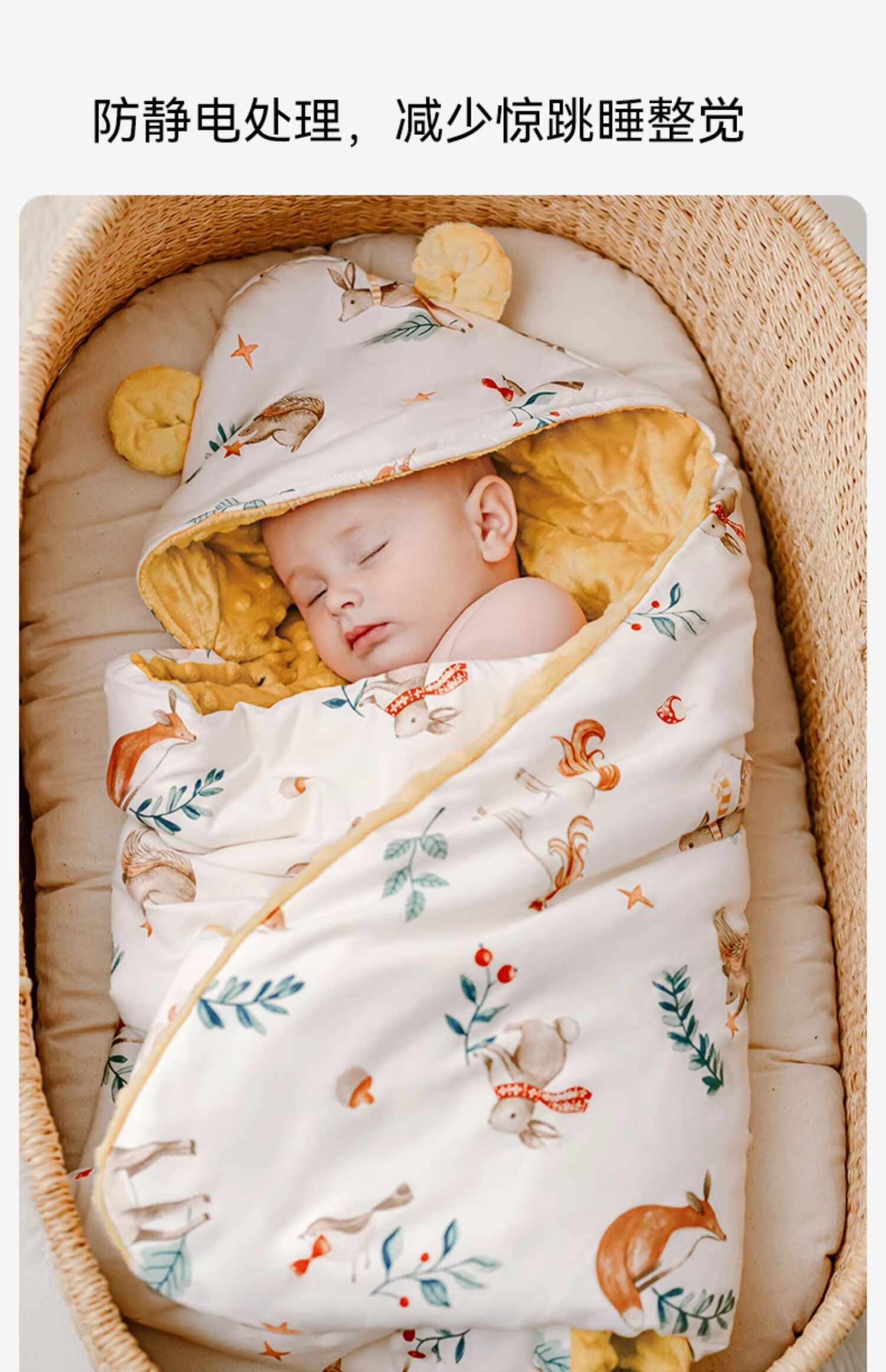 嫚熙(EMXEE)婴儿包被新生儿豆豆绒抱被宝宝秋冬季通用包单防惊跳 纳维亚森林(内芯可拆 10-28℃) 90*90cm