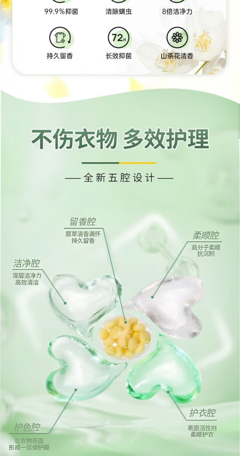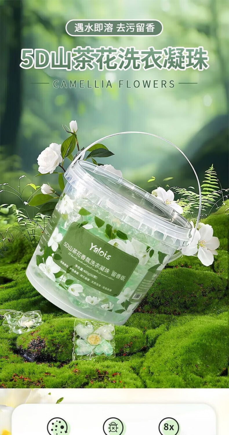 ZYUO【日本】洗衣凝珠持久留香山茶花香氛桶装护色洁衣家用大容量囤货 体验装 480克 60颗*1盒 洗衣凝珠五合一持久留香除菌除螨