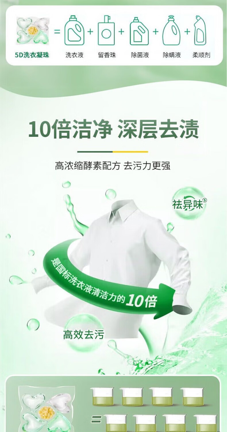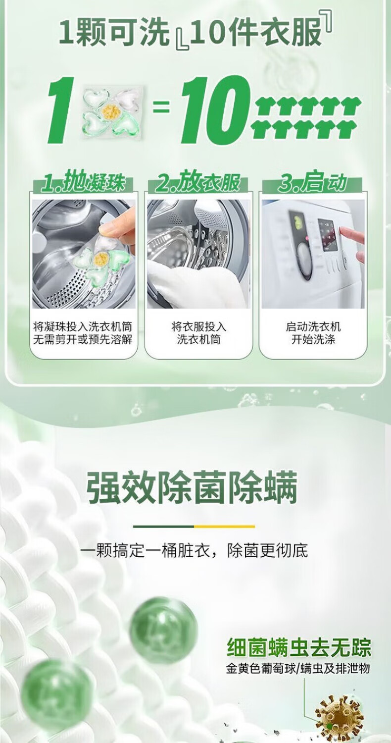 【威露士平替】可丽洁洗衣凝珠除菌除螨抑菌洁净浓缩洗衣液快洗 单腔凝珠30颗*1袋