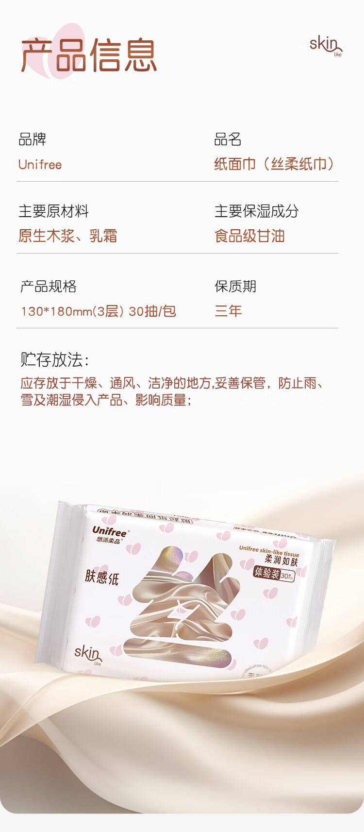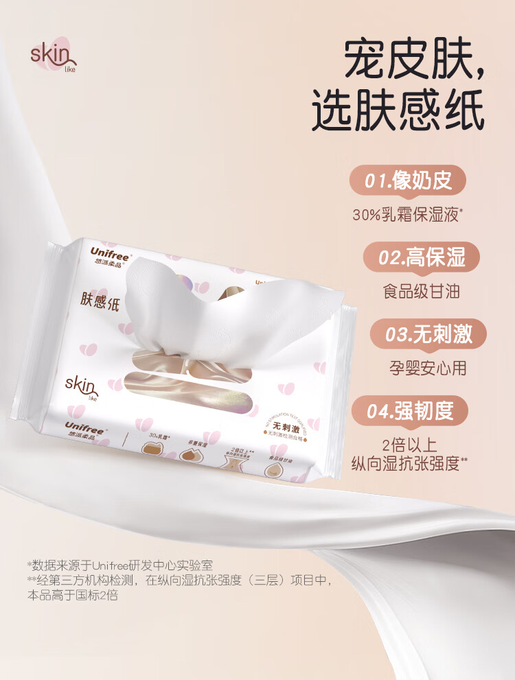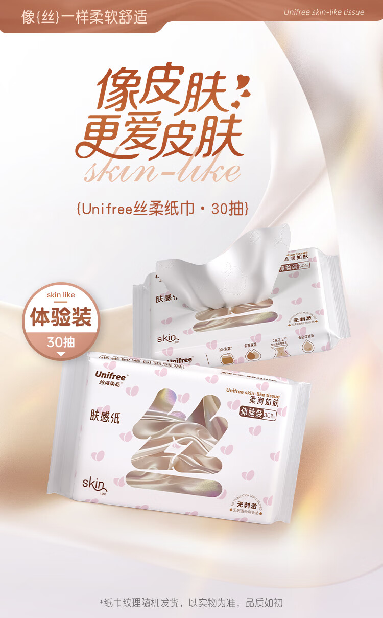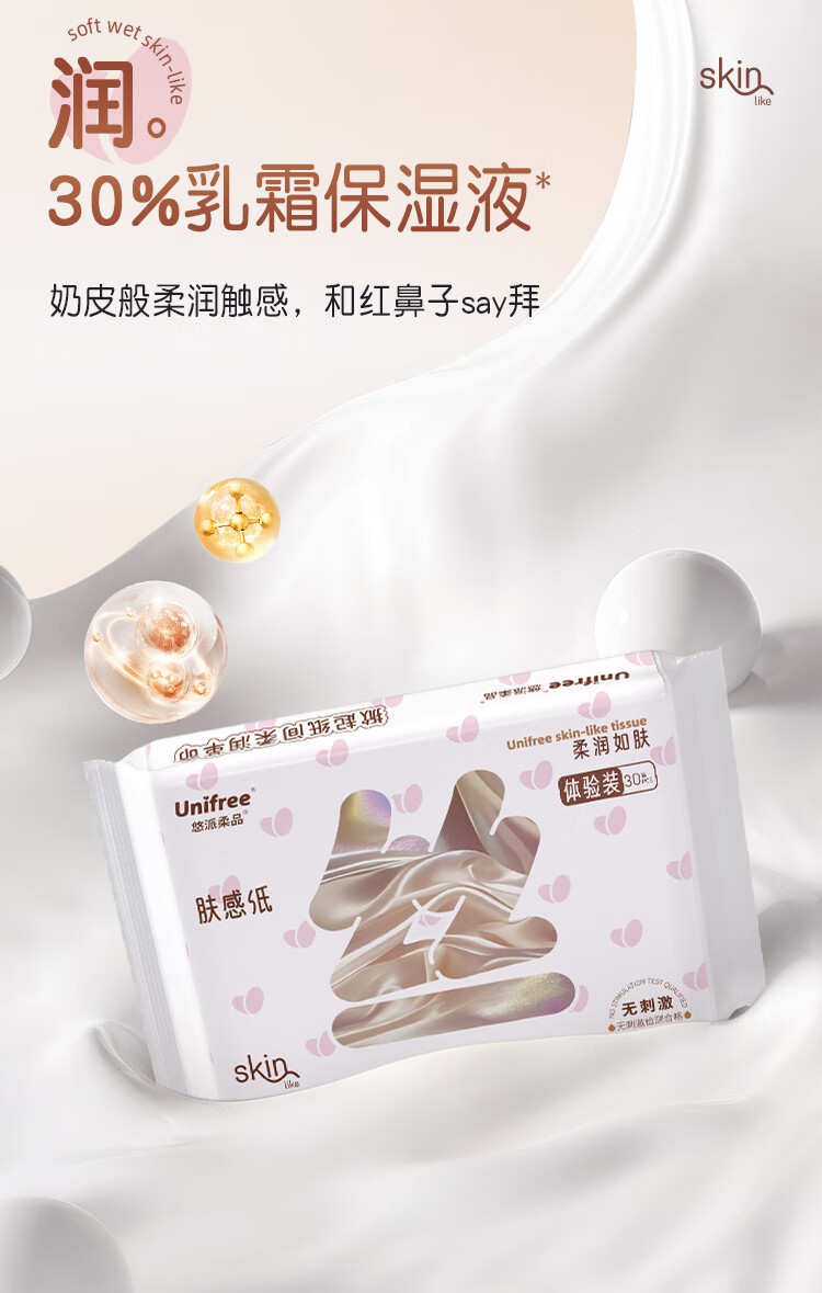 unifree柔纸巾云柔巾加厚婴儿保湿纸抽纸擦鼻子宝宝乳霜纸 3层 30抽*10包
