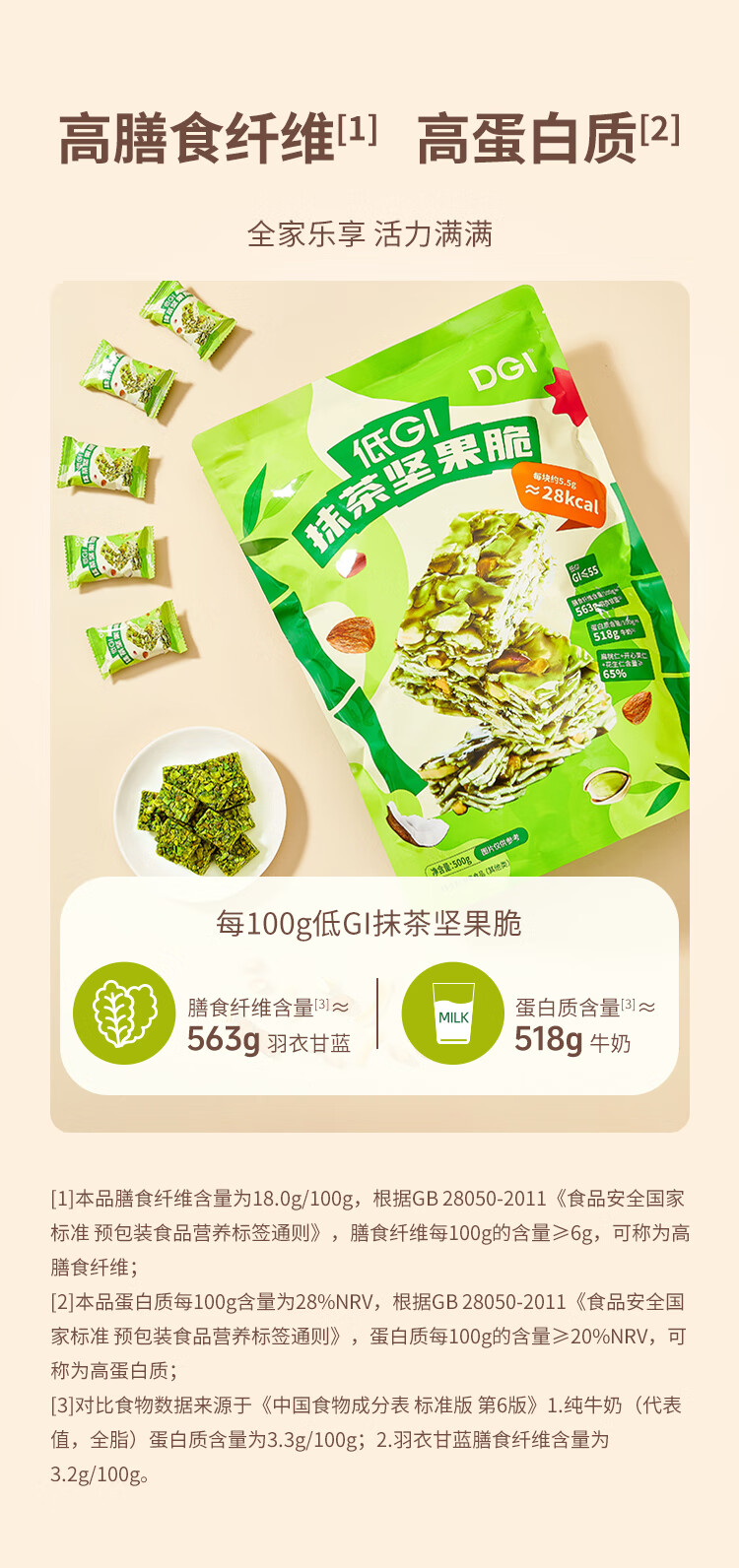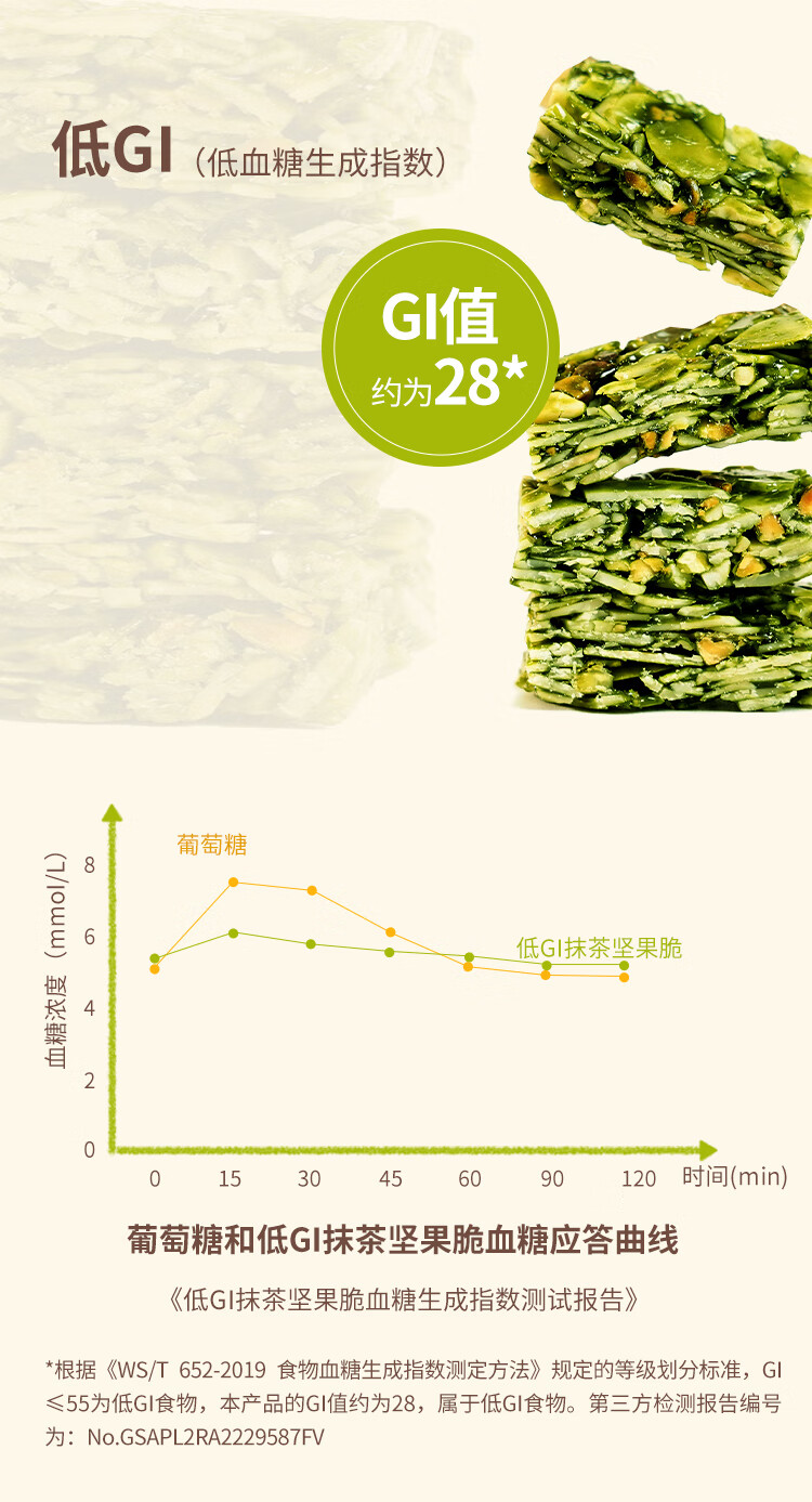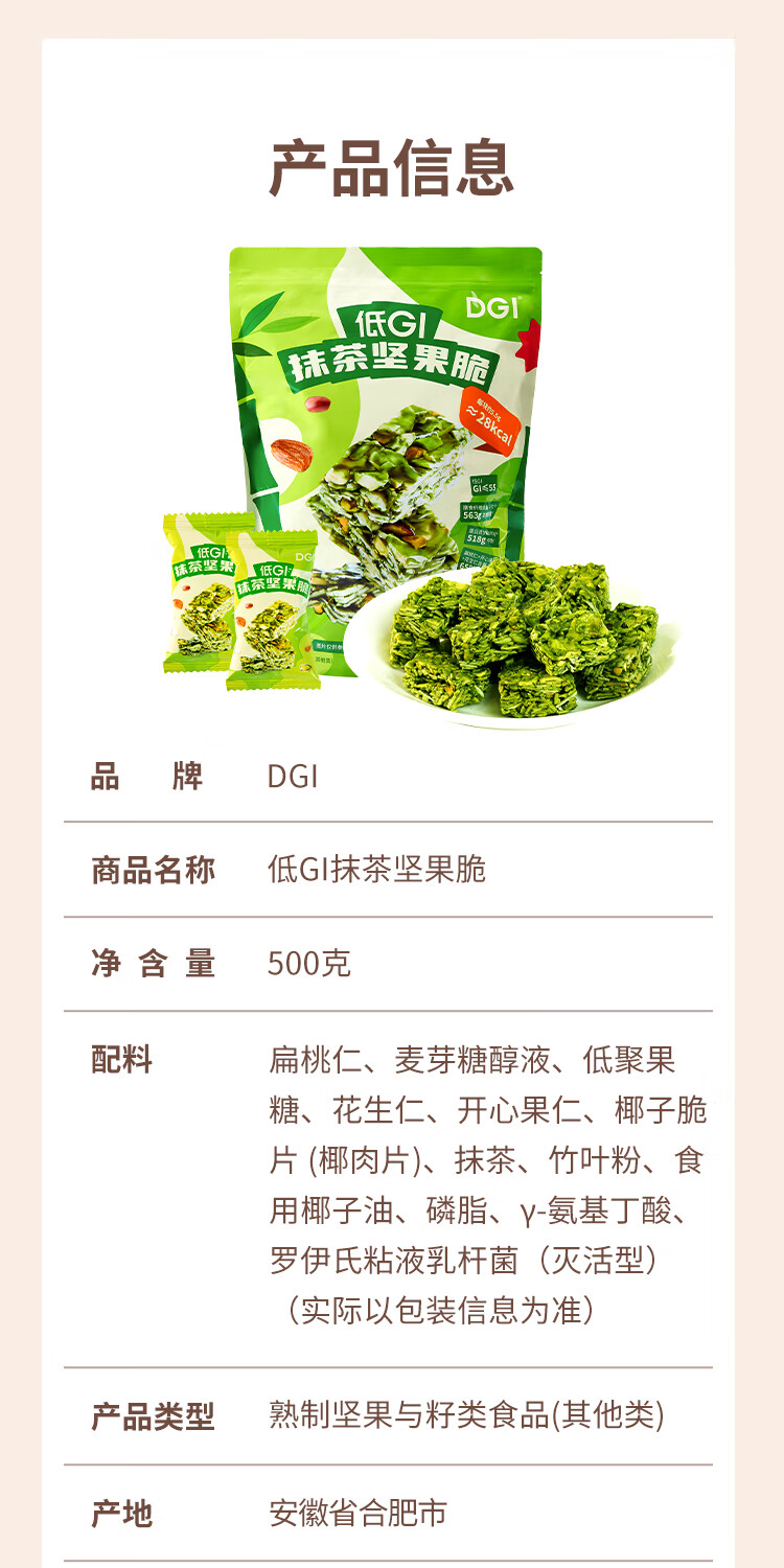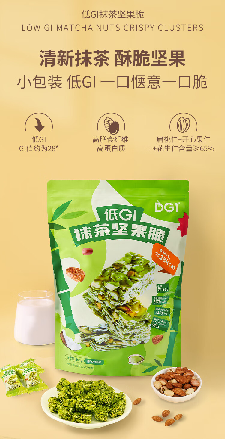 DGI低GI抹茶坚果脆无糖精山高蛋白代餐姆营养早餐脂卡糖友饱腹零食品 抹茶坚果脆500g