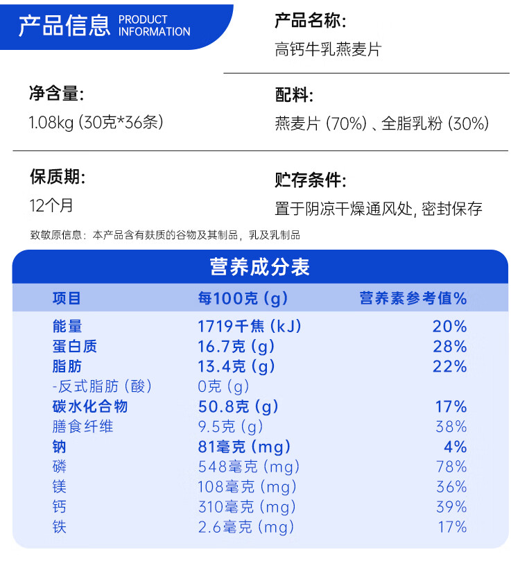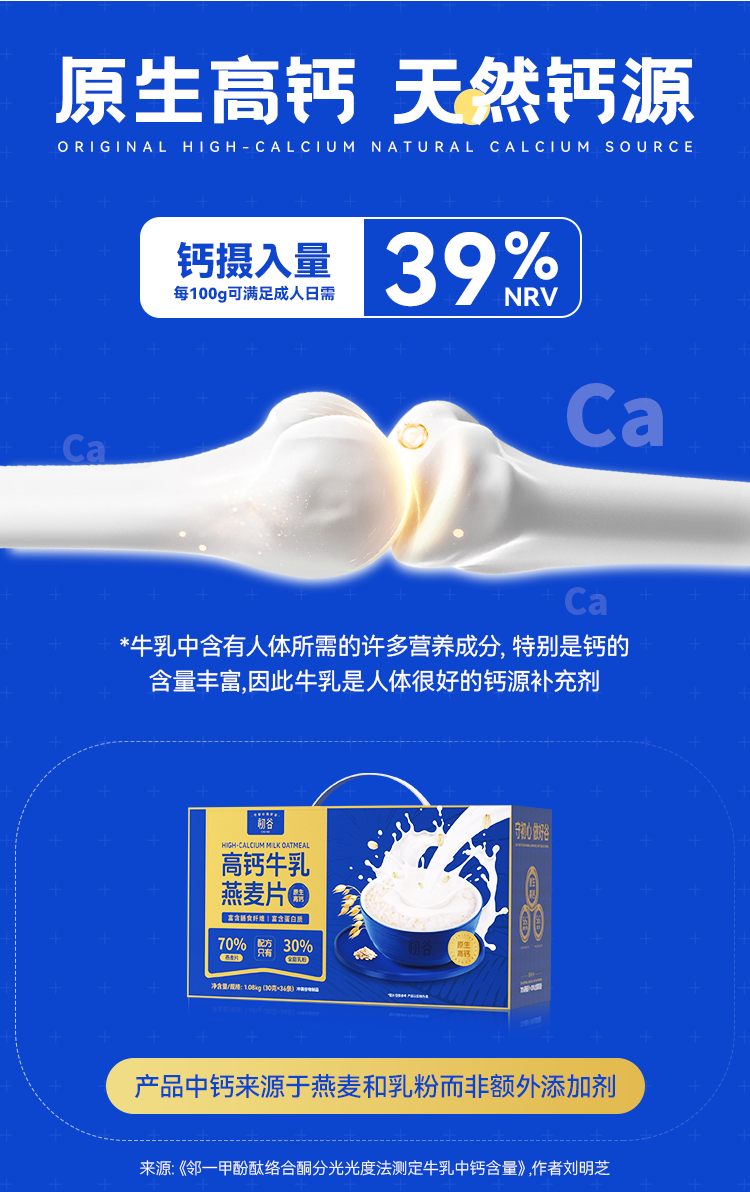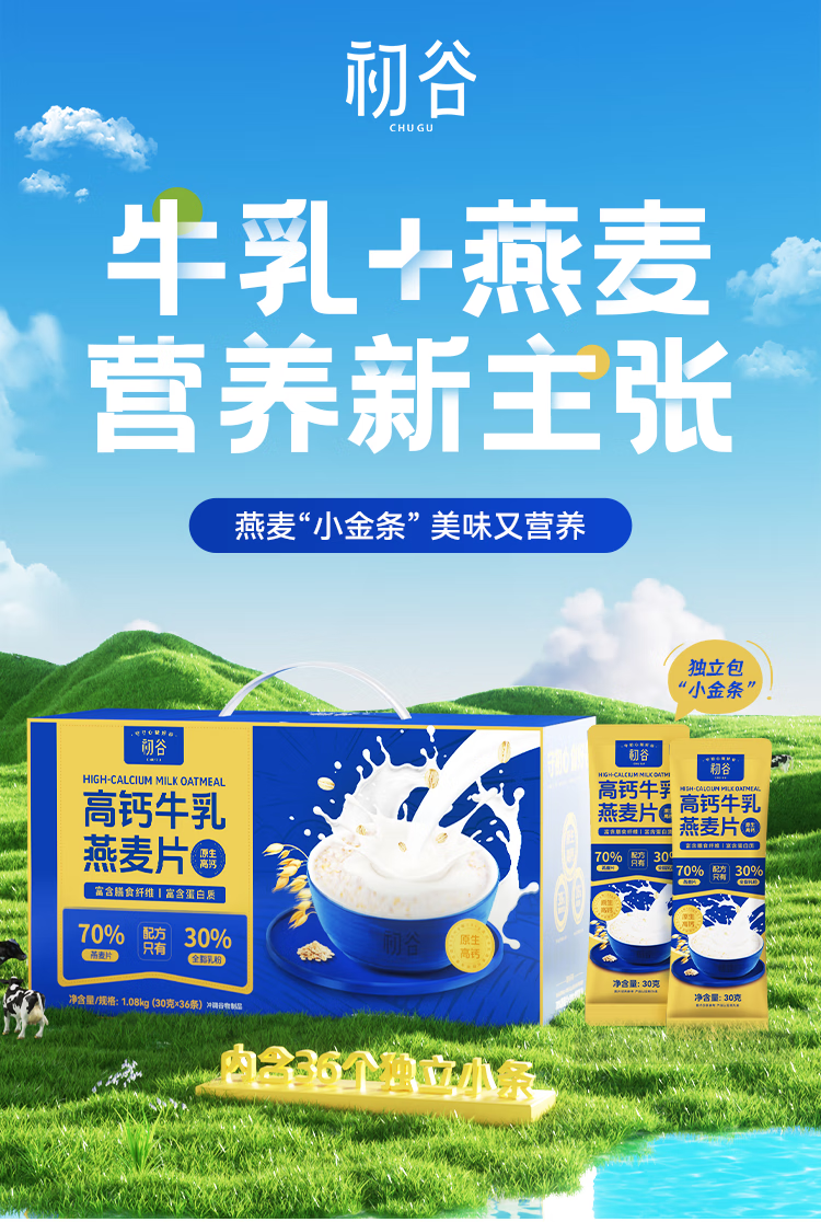 初谷高钙牛乳燕麦片1080g即食高蛋白营养早餐麦片独立包中秋礼品盒装