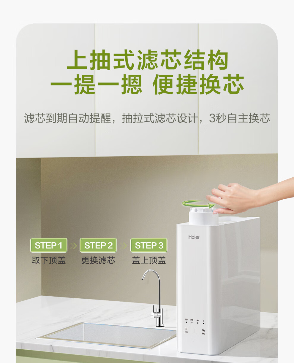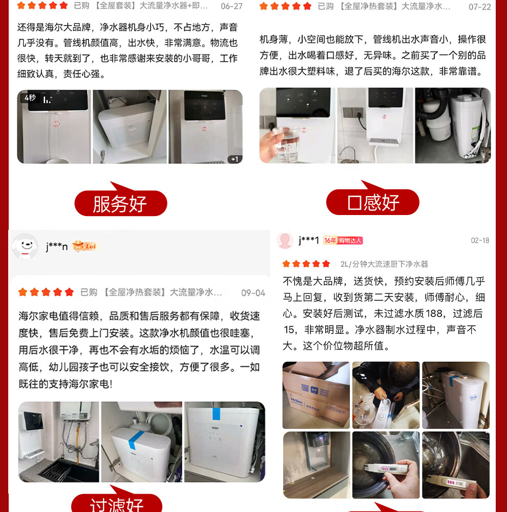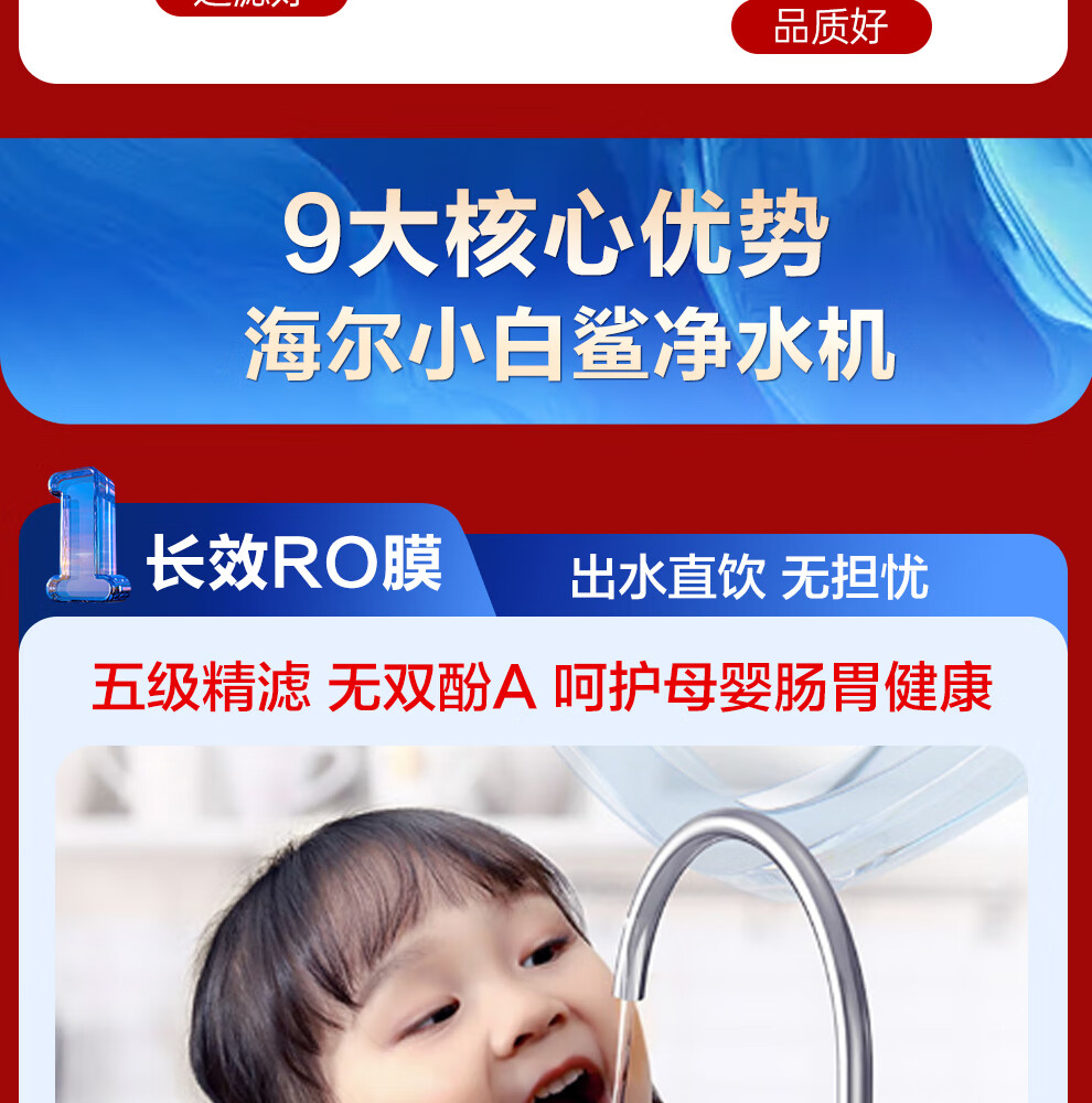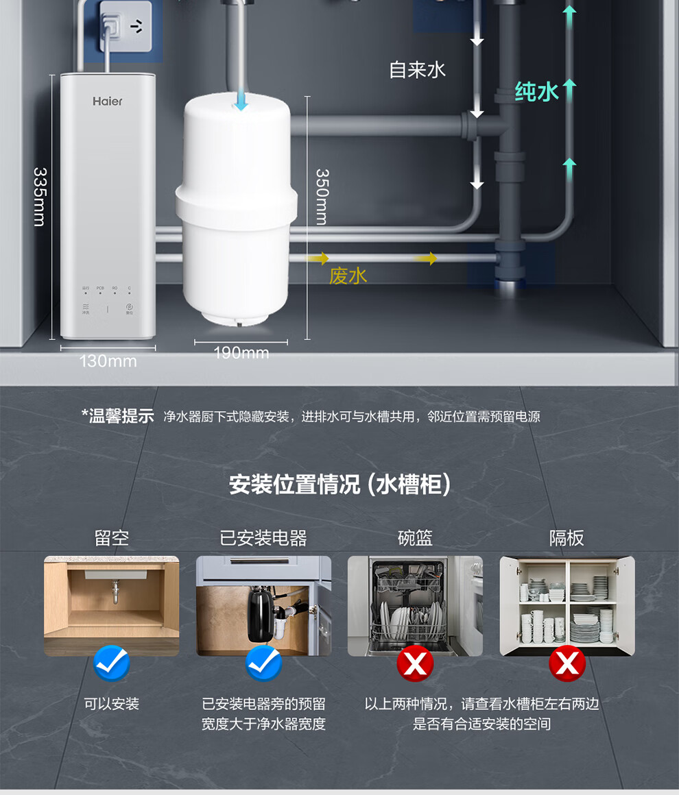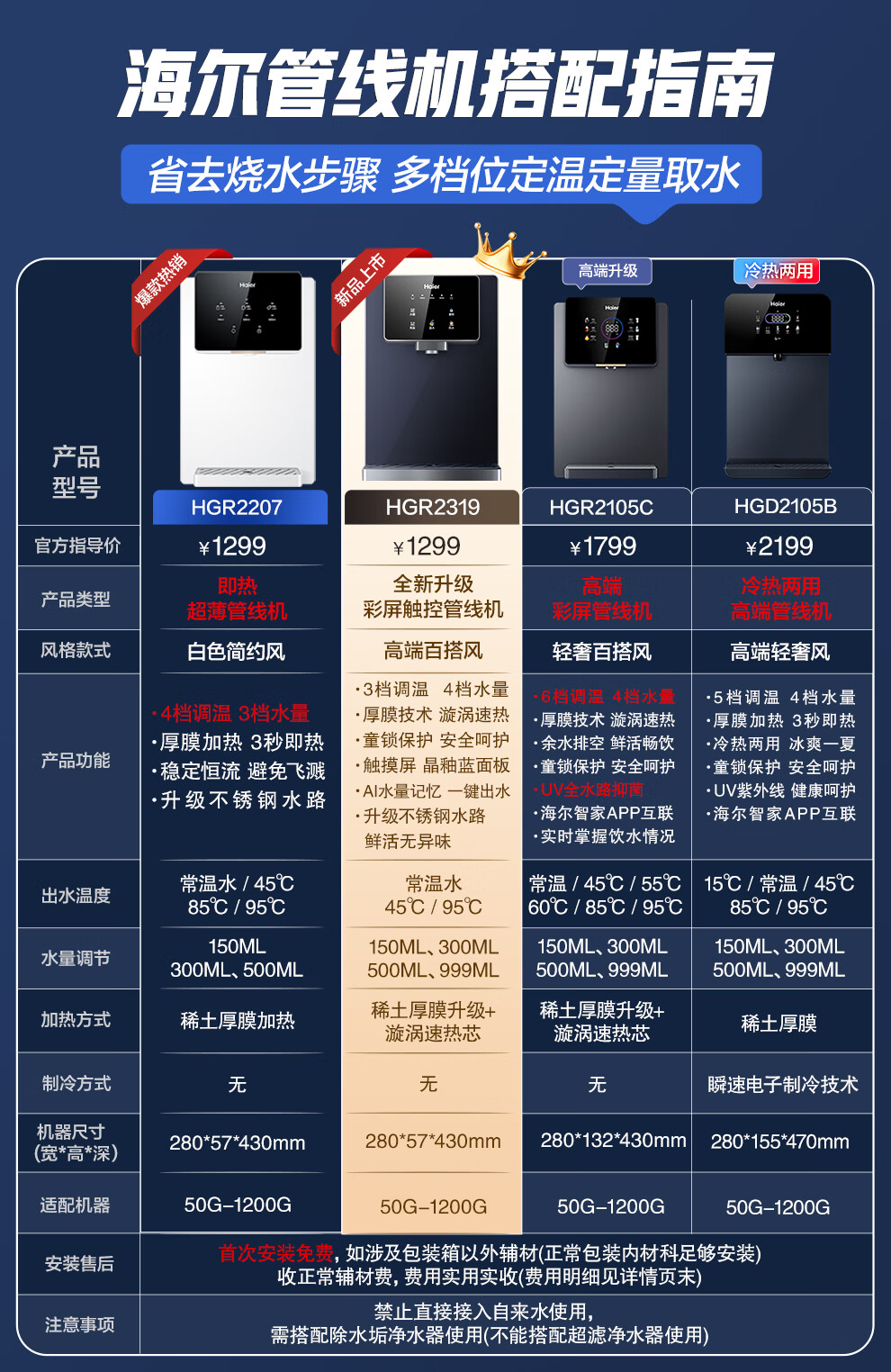 海尔(Haier)净水器家用厨下母婴RO反渗透直饮净水机加热一体机餐边柜壁挂式管线机接自来水全屋前置过滤器套装 【性能套装】即热管线机+净水器