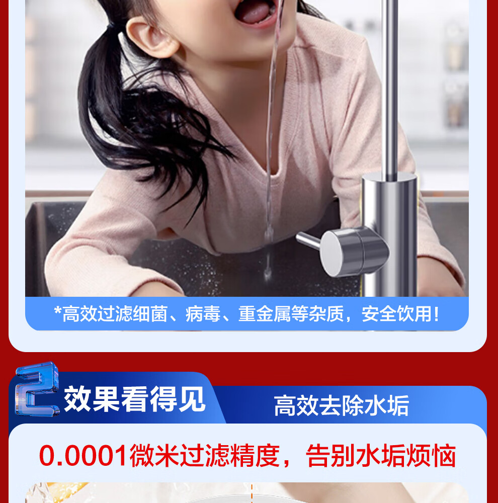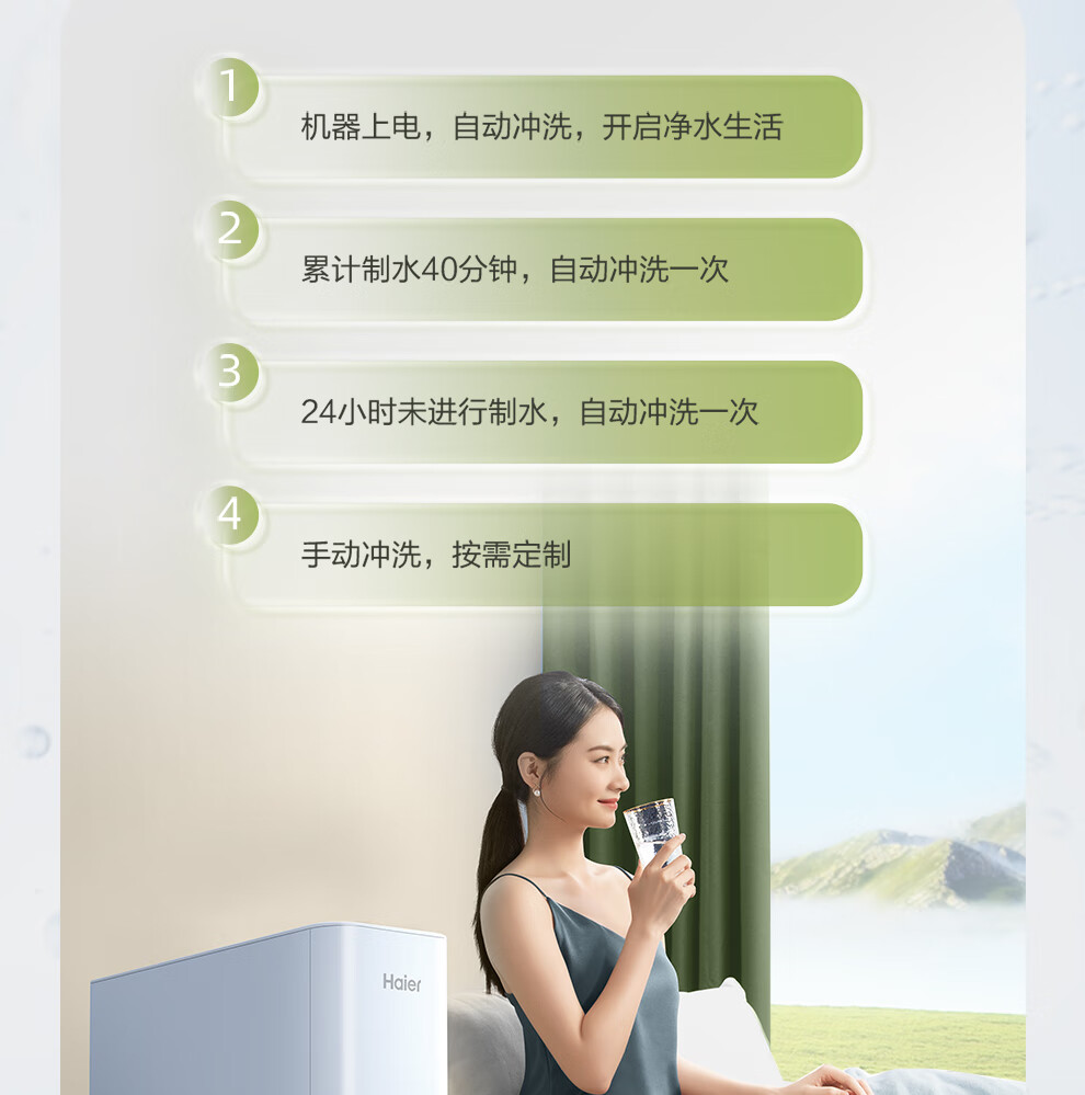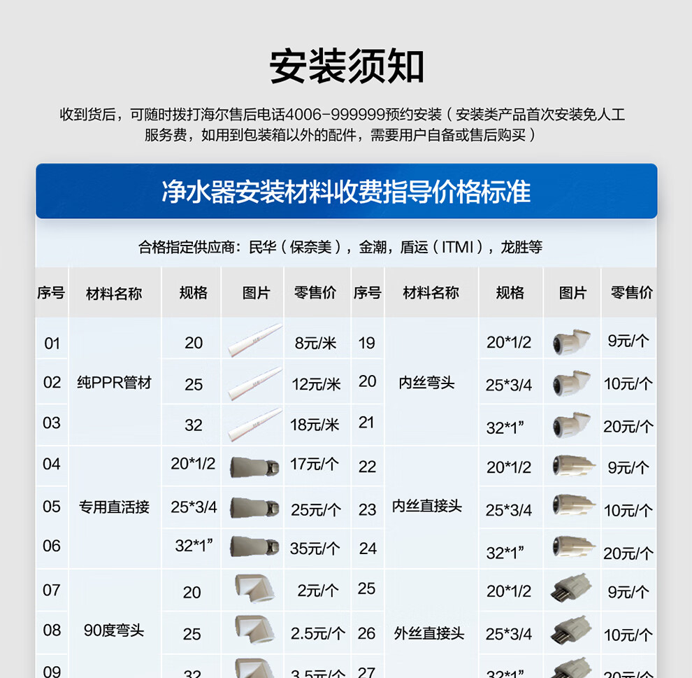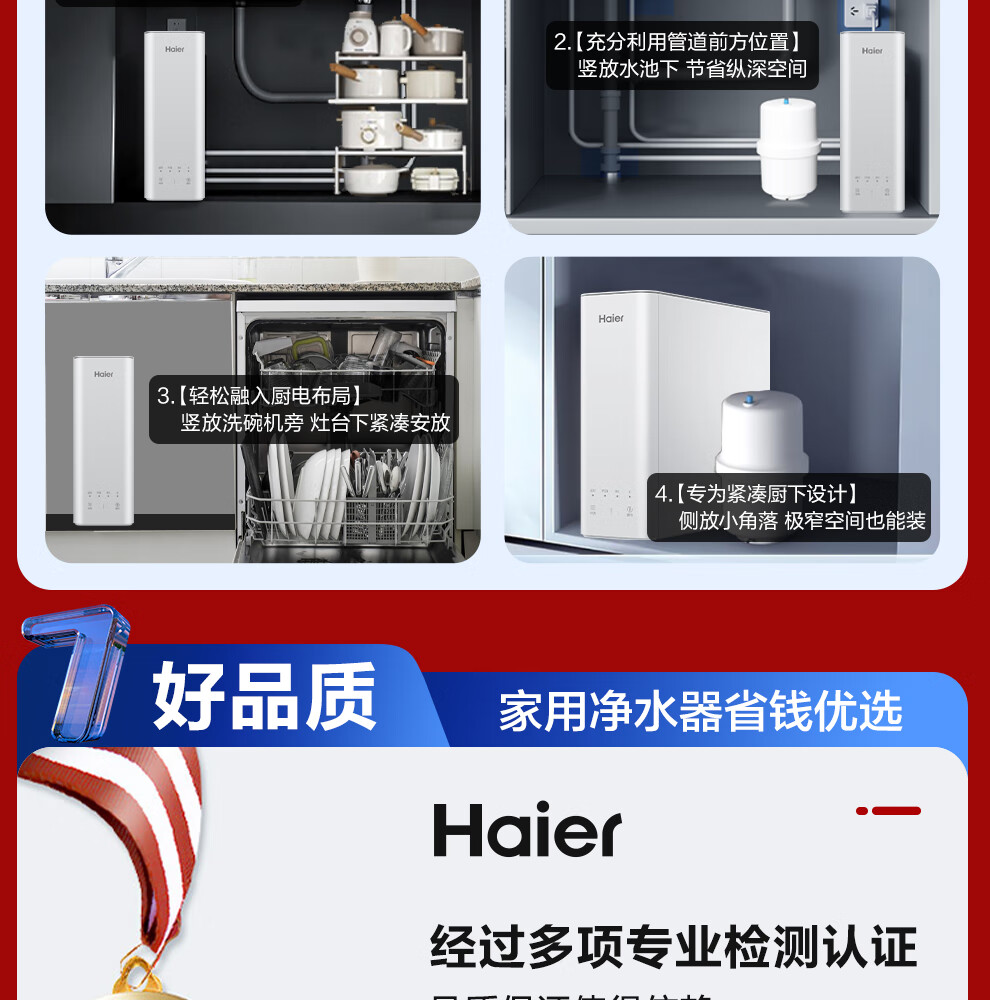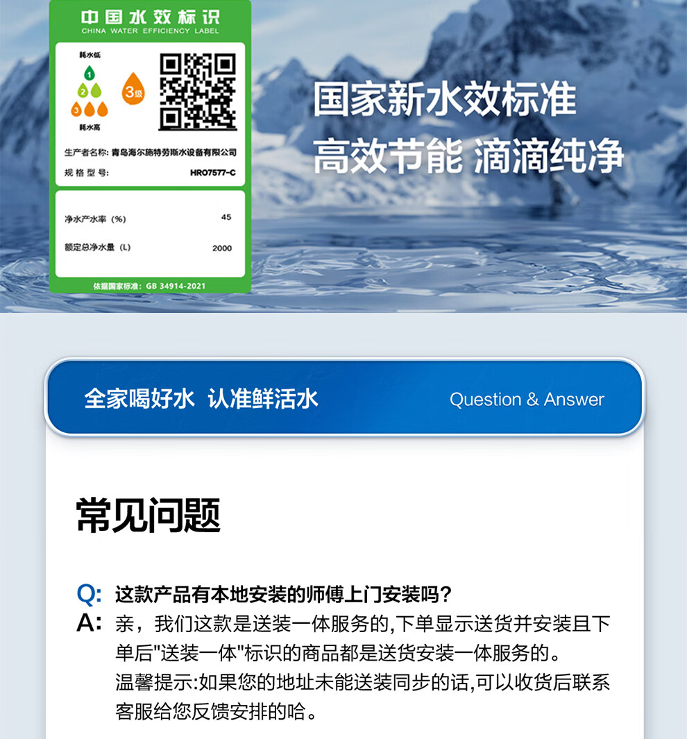 海尔(Haier)净水器家用厨下母婴RO反渗透直饮净水机加热一体机餐边柜壁挂式管线机接自来水全屋前置过滤器套装 【性能套装】即热管线机+净水器