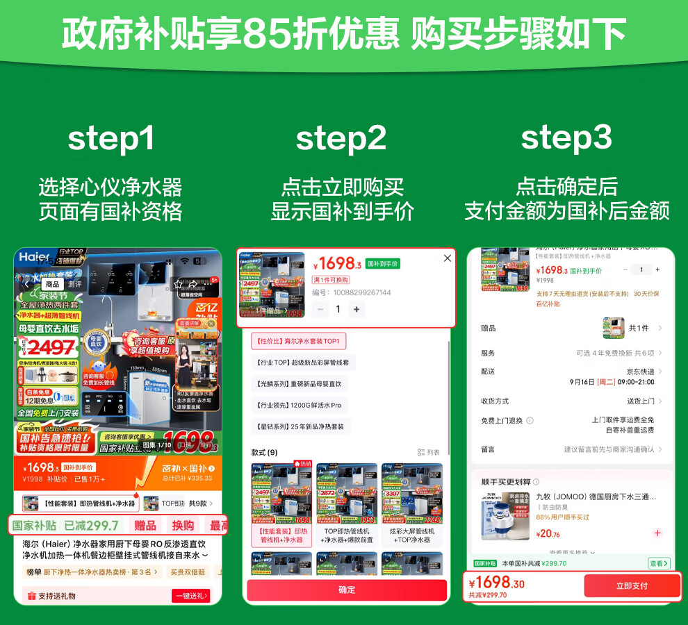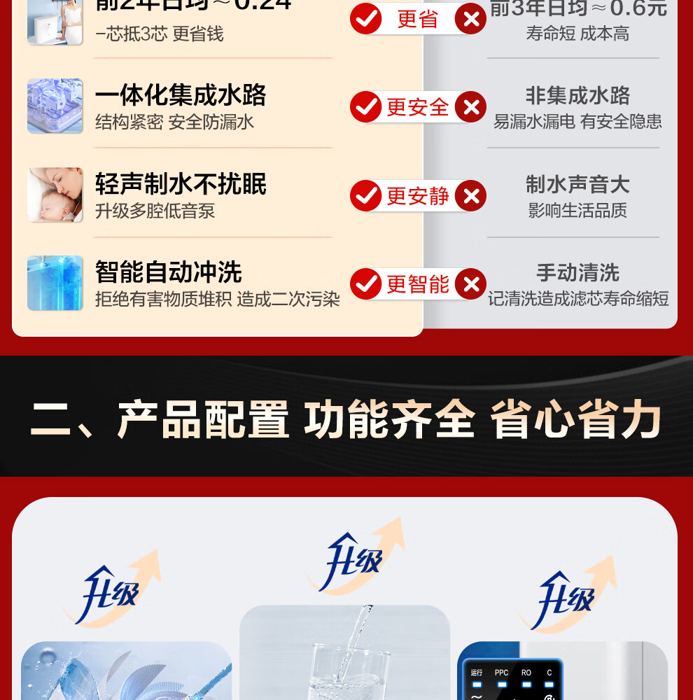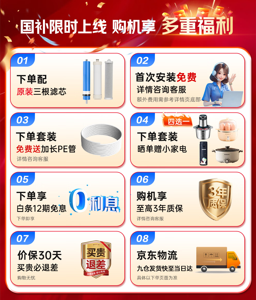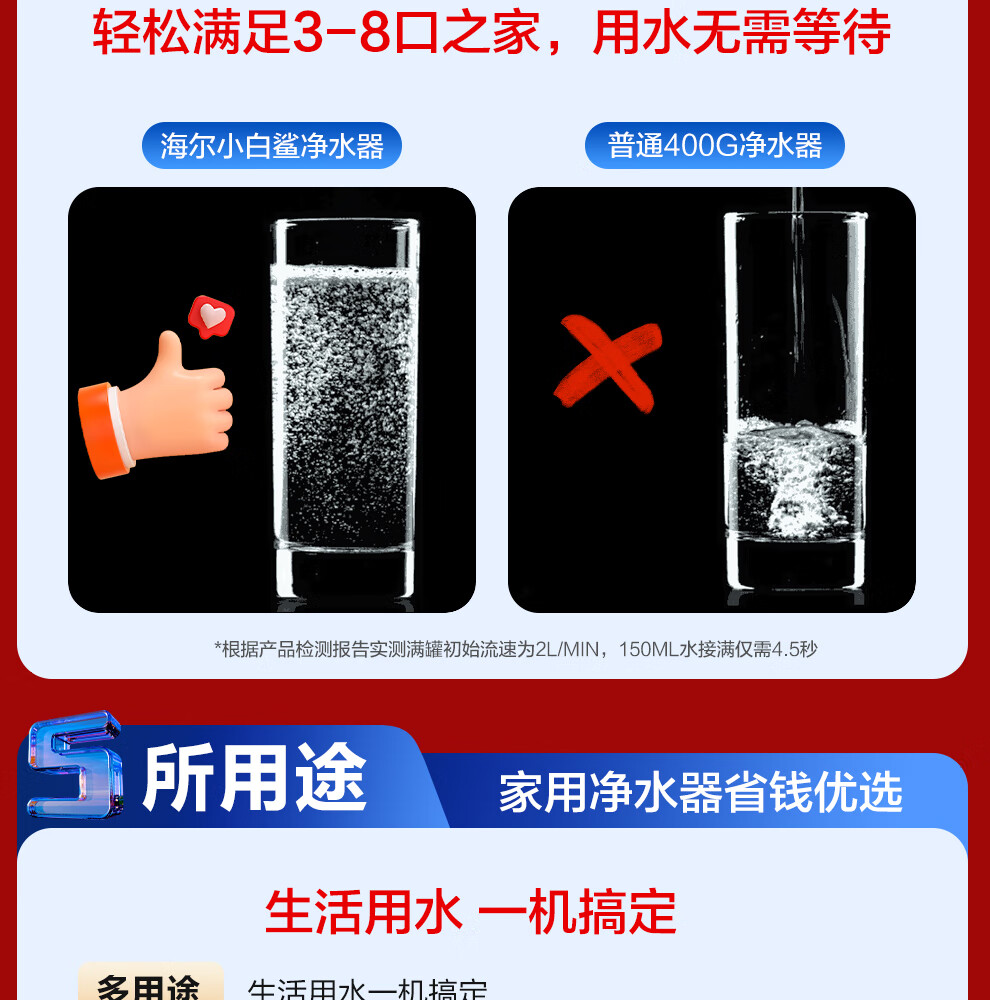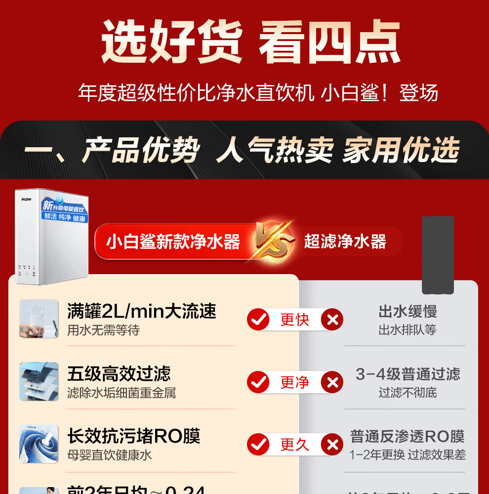 海尔(Haier)净水器家用厨下母婴RO反渗透直饮净水机加热一体机餐边柜壁挂式管线机接自来水全屋前置过滤器套装 【性能套装】即热管线机+净水器
