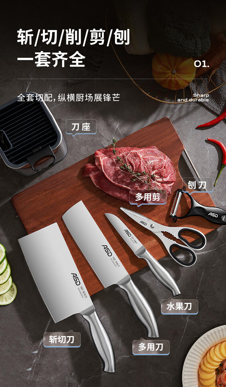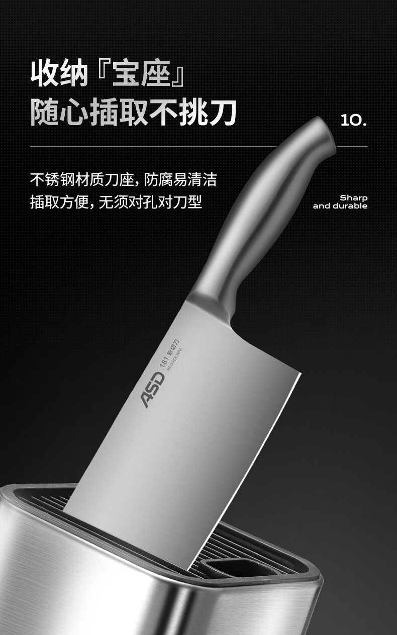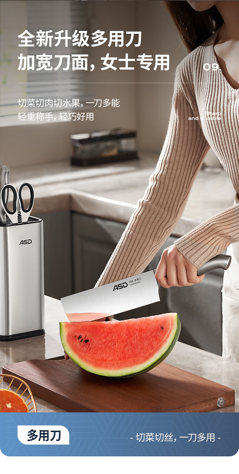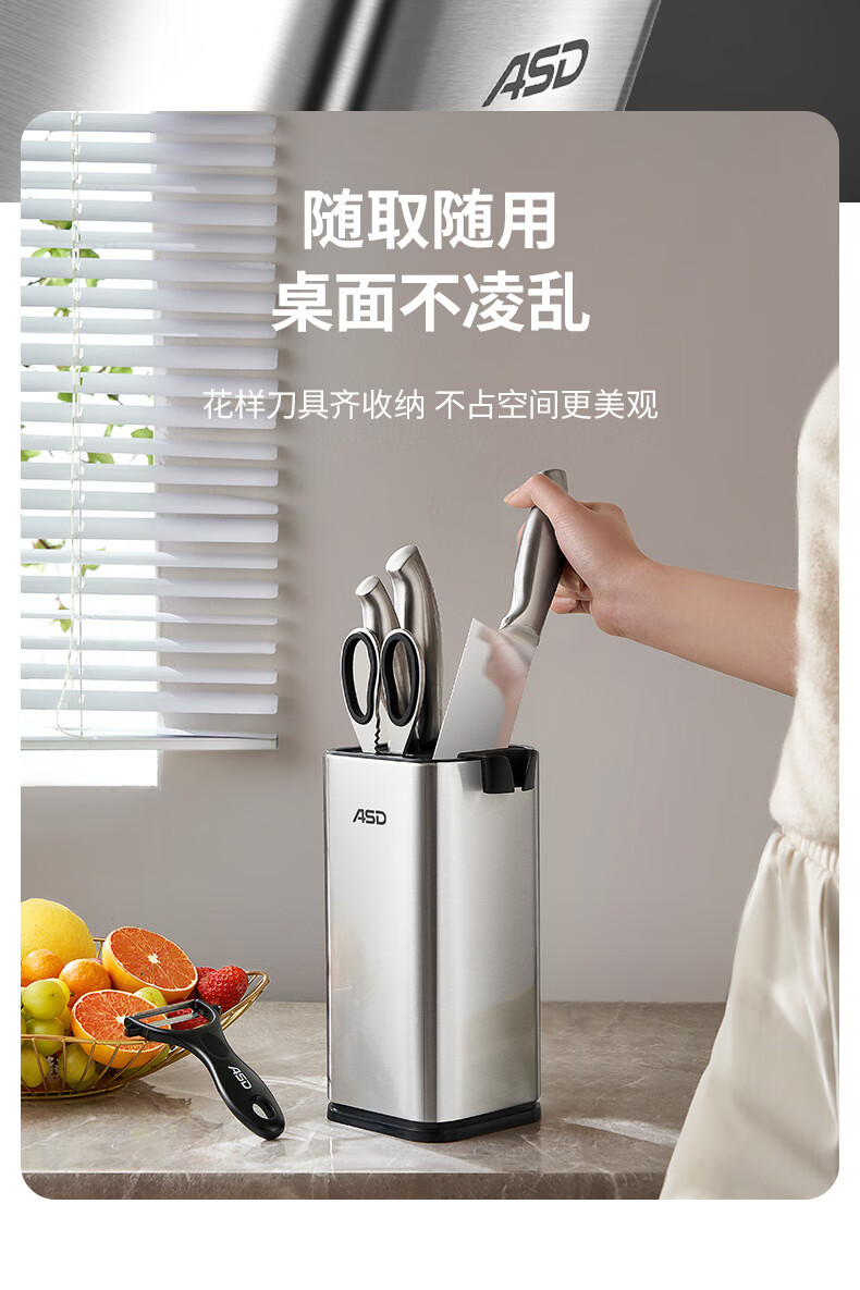 爱仕达(ASD)刀具不锈钢便插系列菜刀套装多用刀水果刀厨房剪刀RDG06K3WG