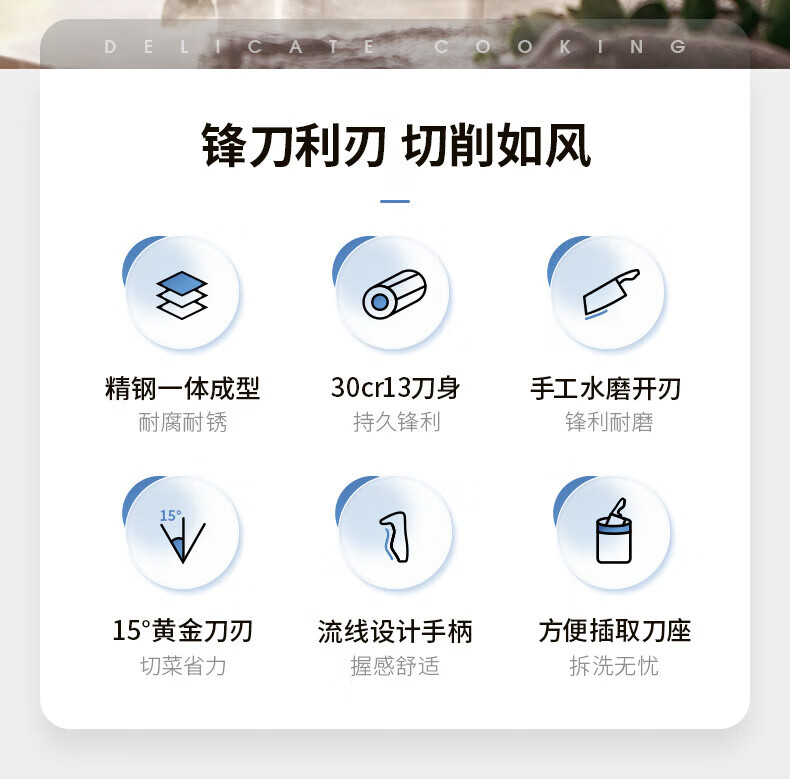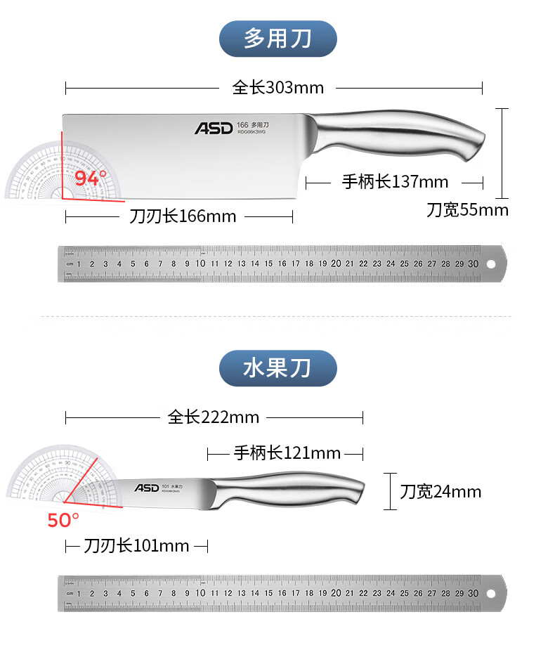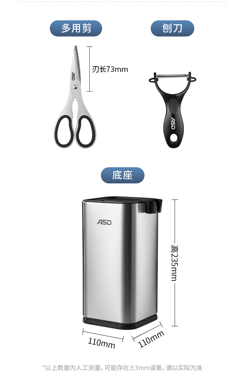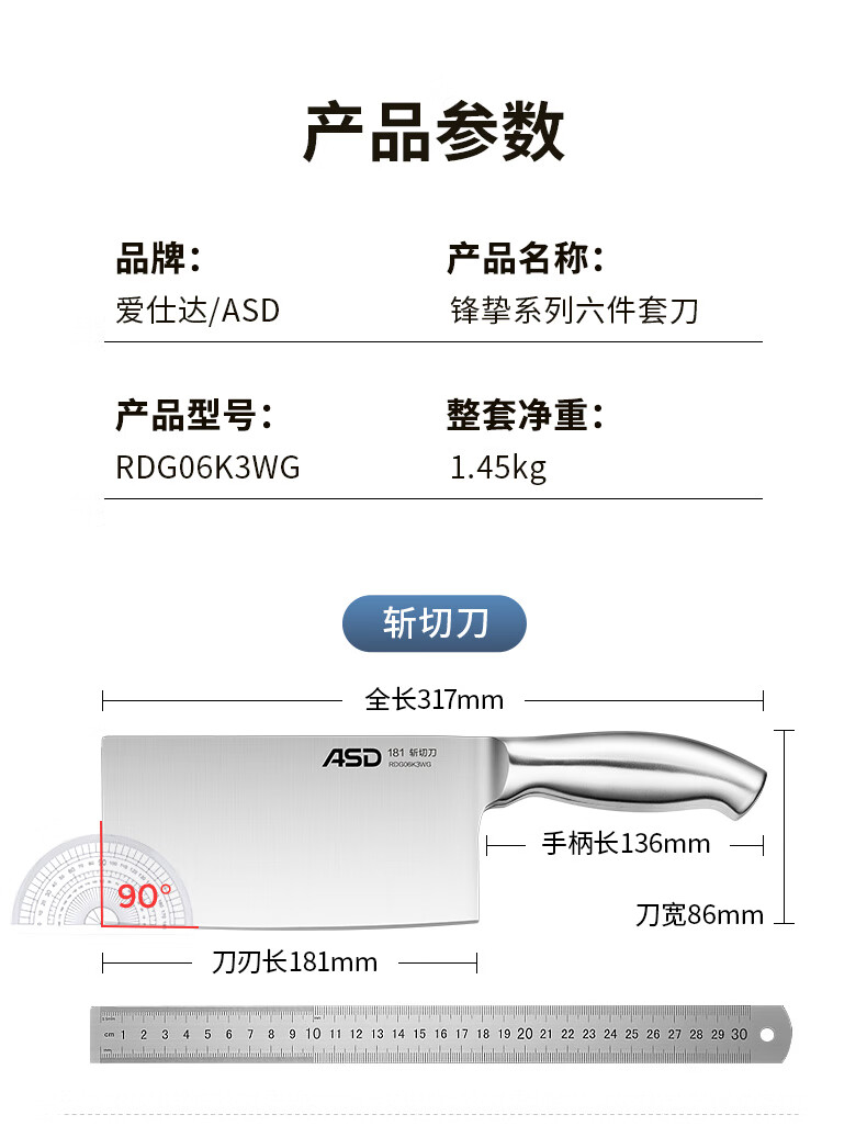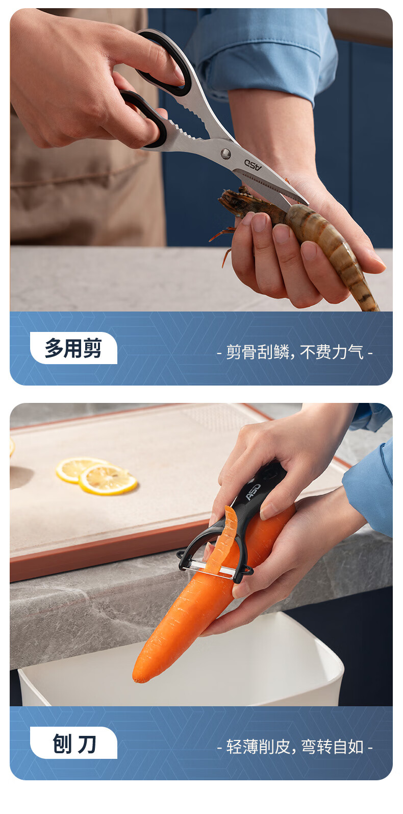 爱仕达(ASD)刀具不锈钢便插系列菜刀套装多用刀水果刀厨房剪刀RDG06K3WG