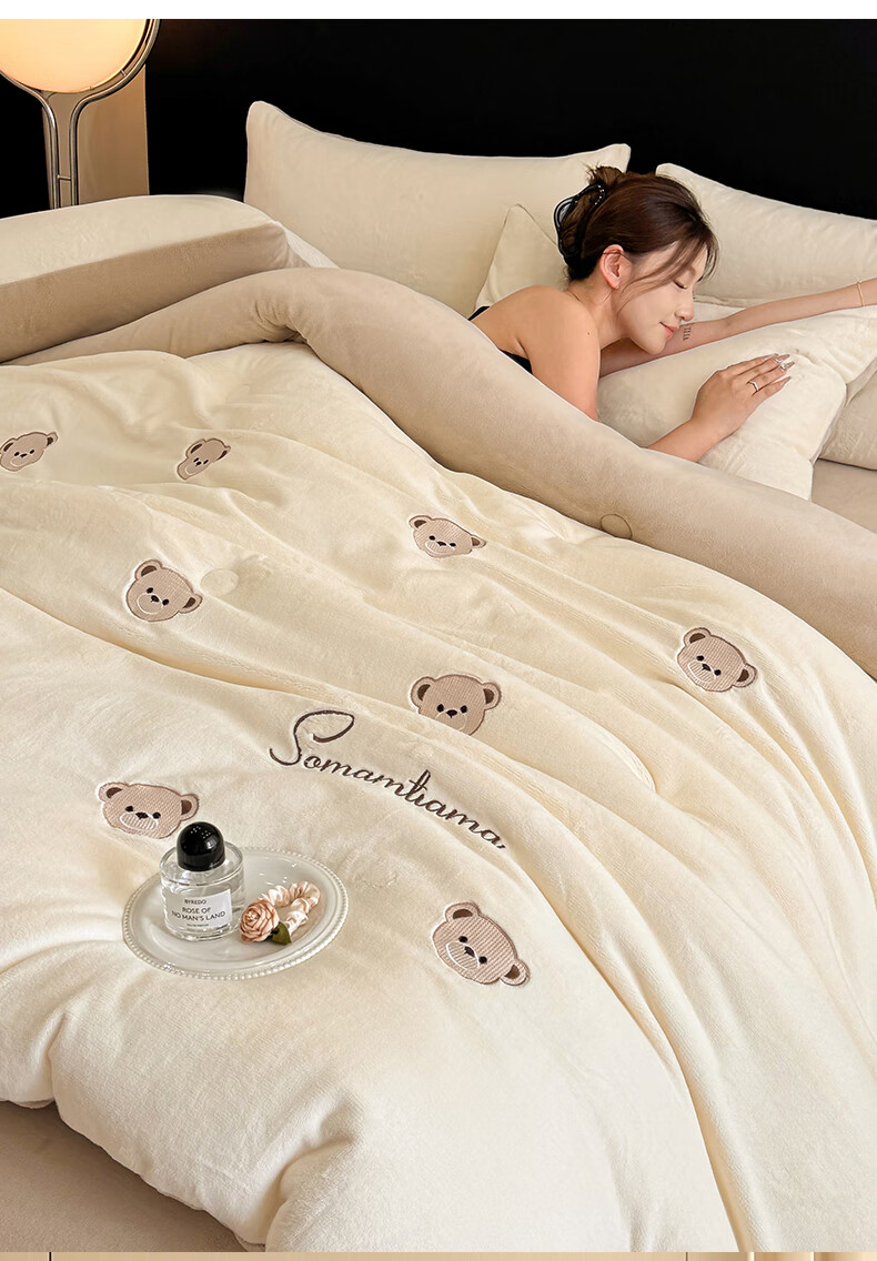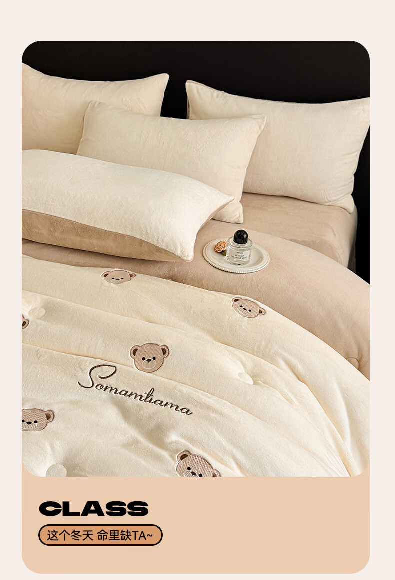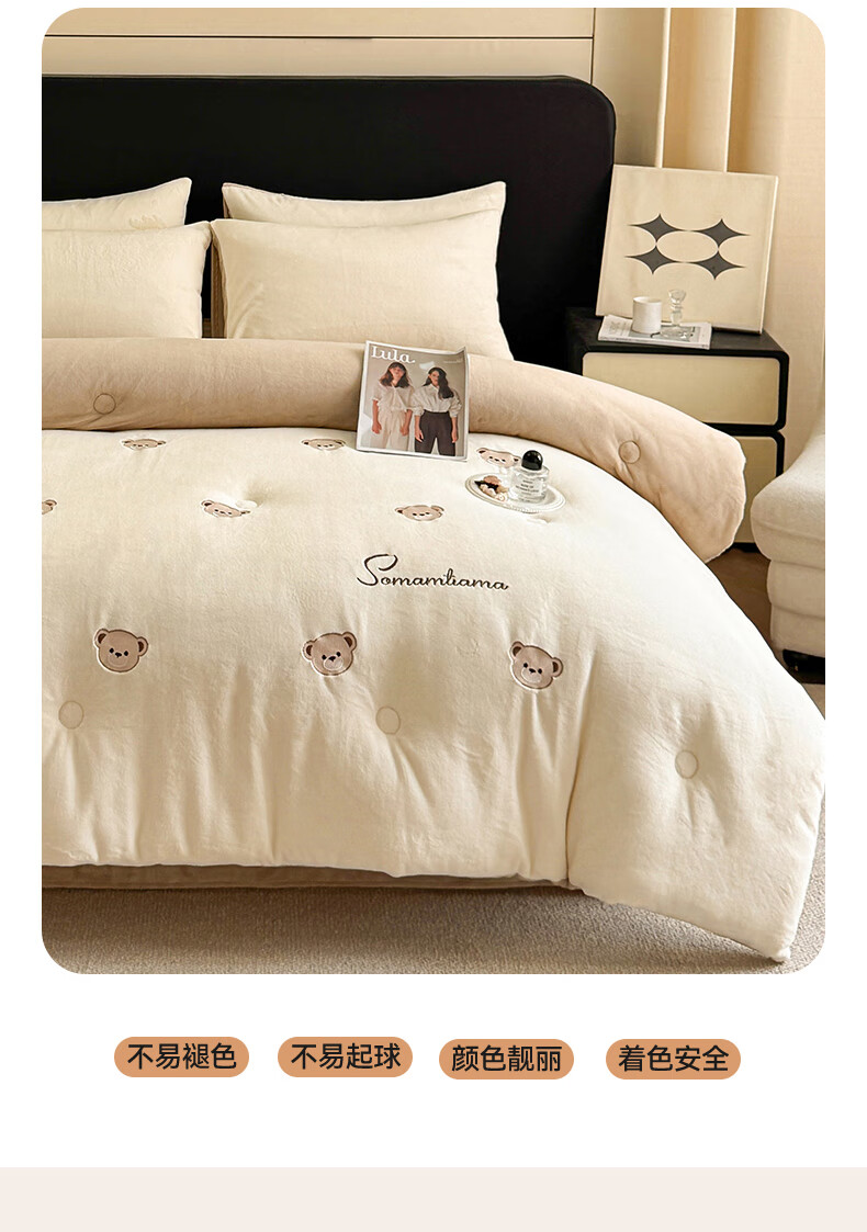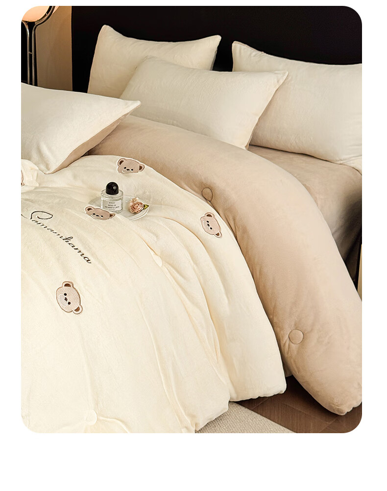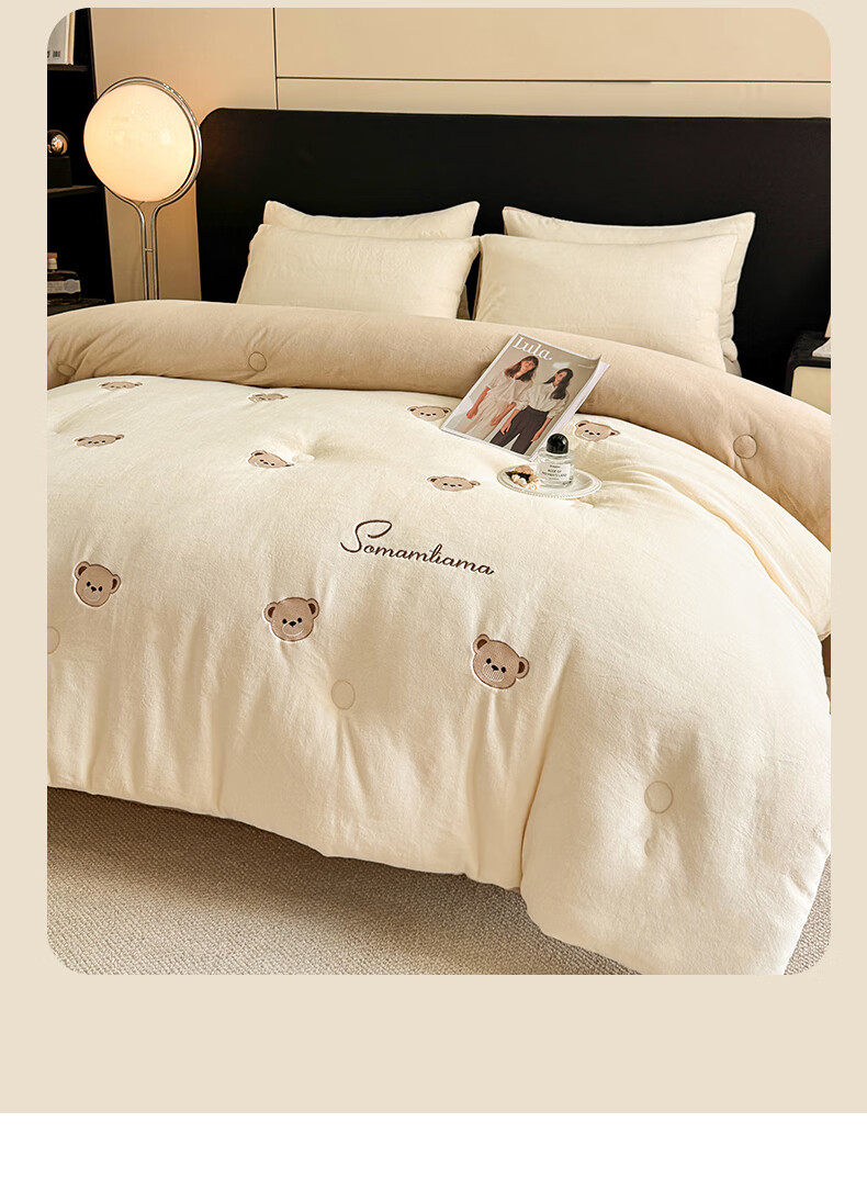 猫人(MiiOW)冬季加厚牛奶绒被子秋冬被 冬天毛绒被芯单双人宿舍被褥 小熊-奶白+暖沙 150*200cm冬被重约5斤