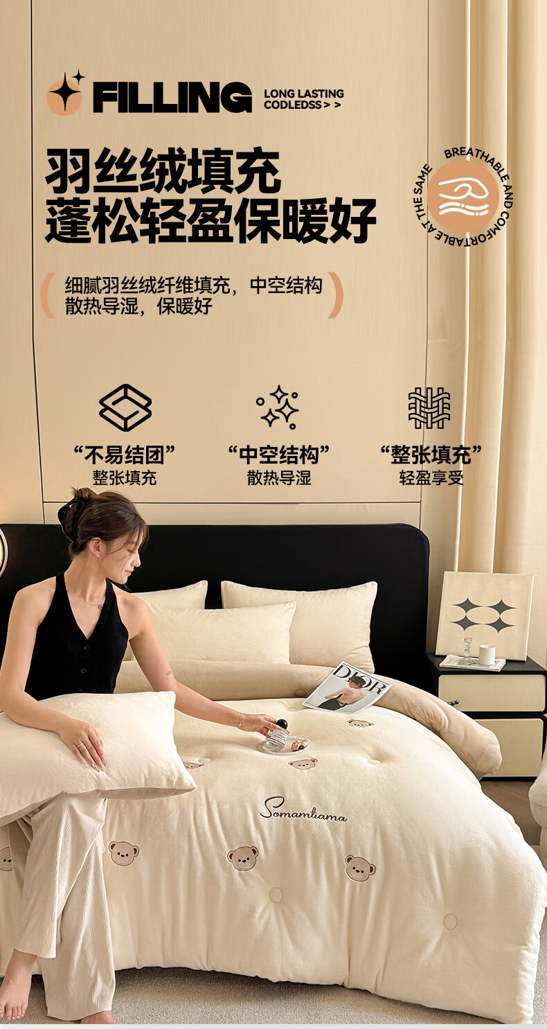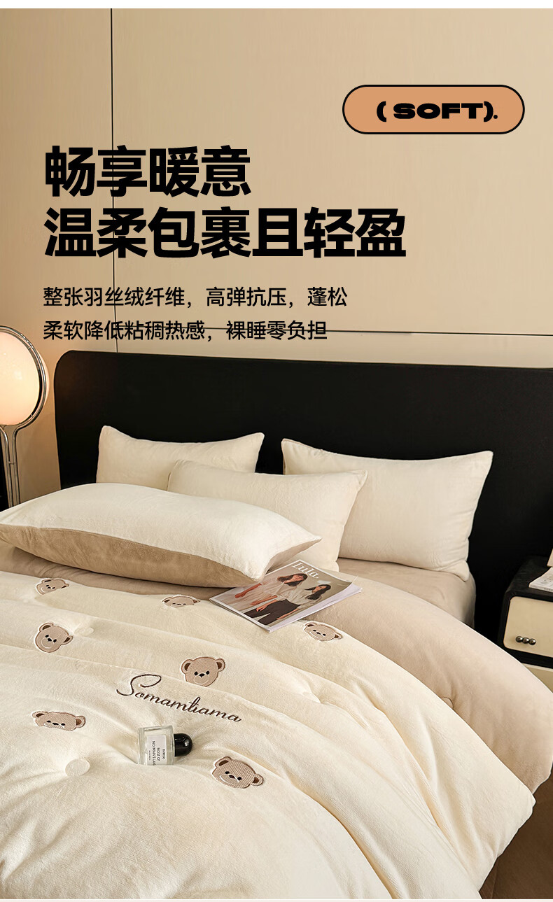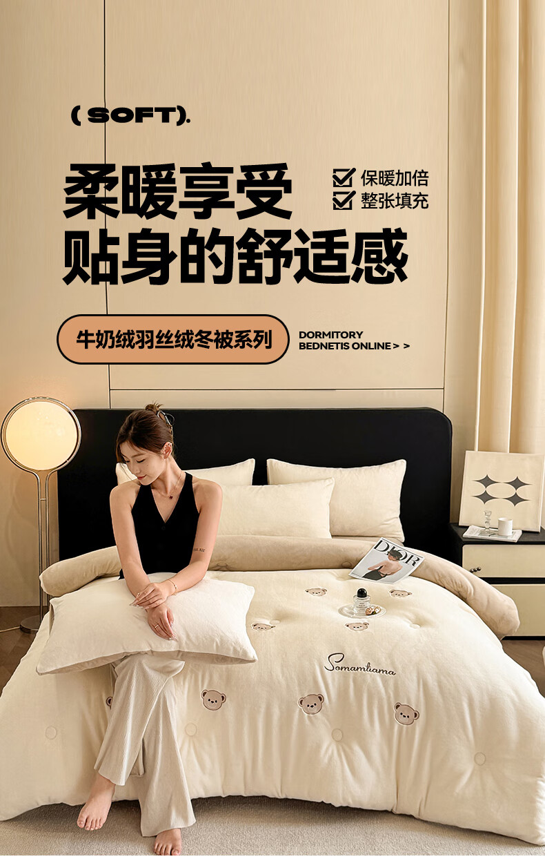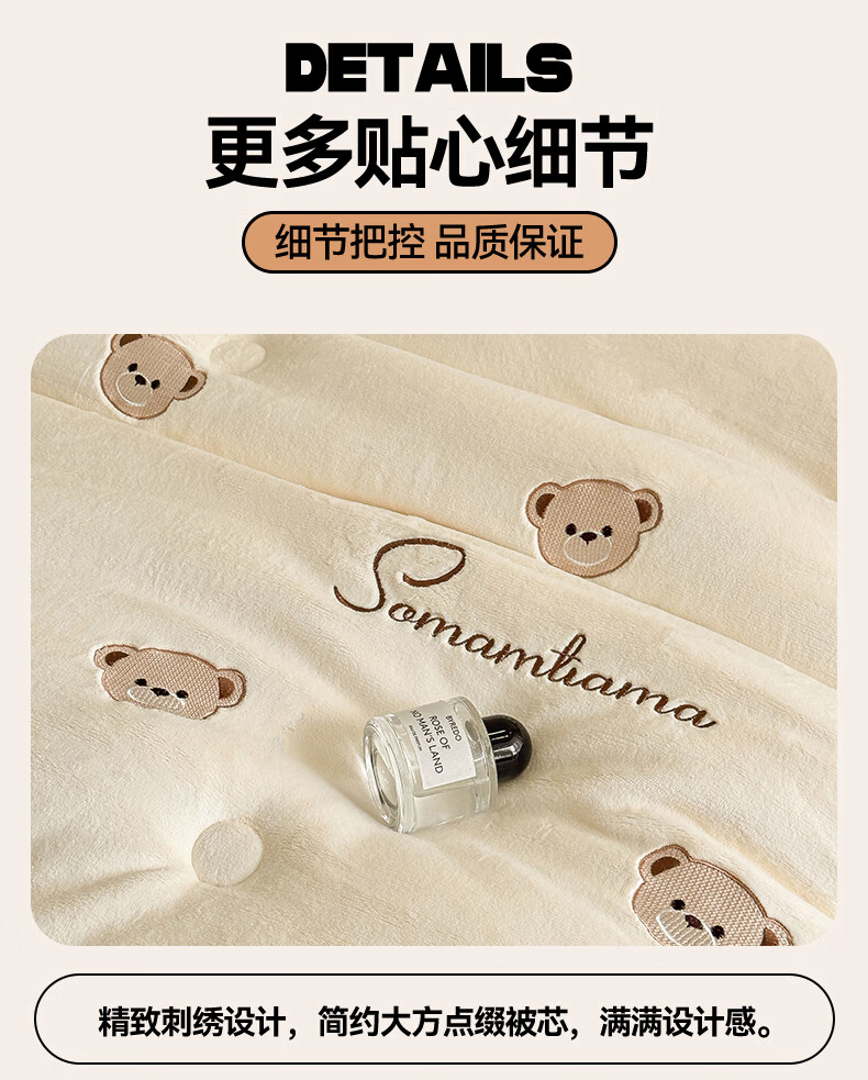 猫人(MiiOW)冬季加厚牛奶绒被子秋冬被 冬天毛绒被芯单双人宿舍被褥 小熊-奶白+暖沙 150*200cm冬被重约5斤
