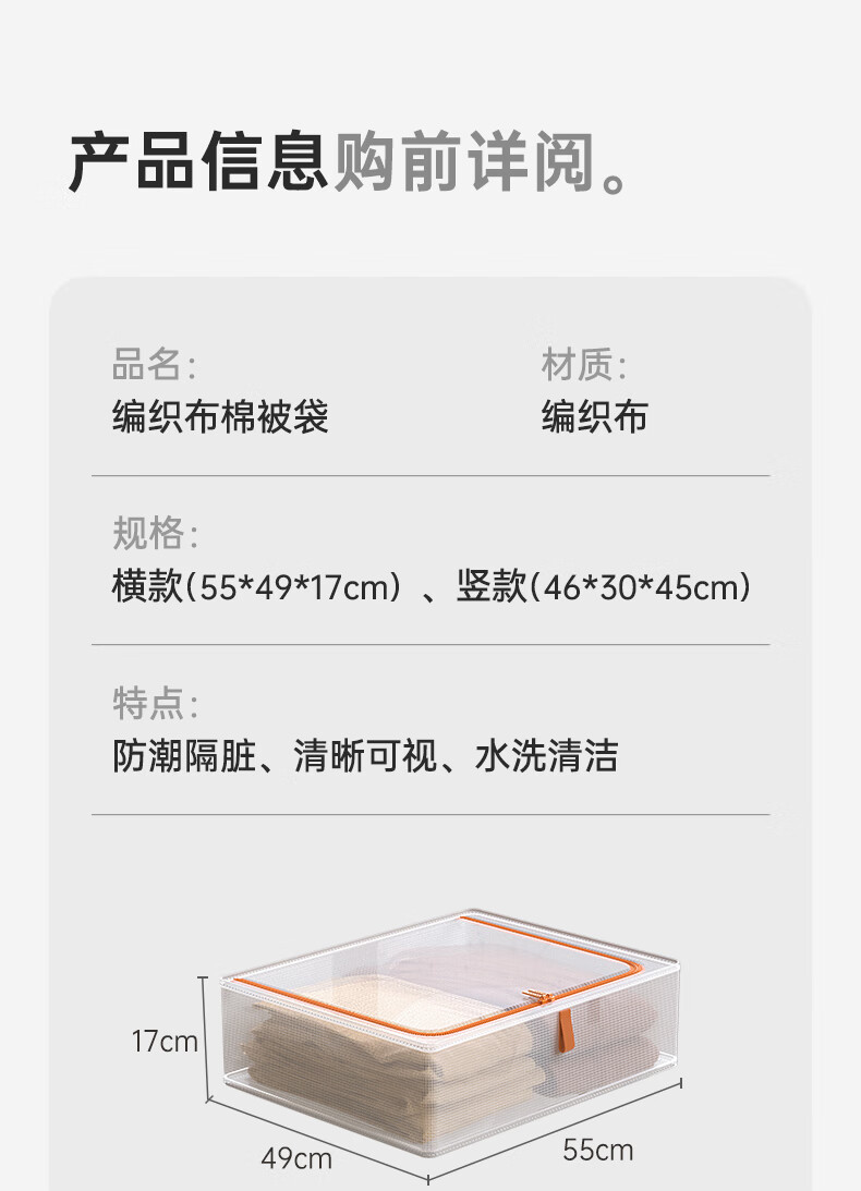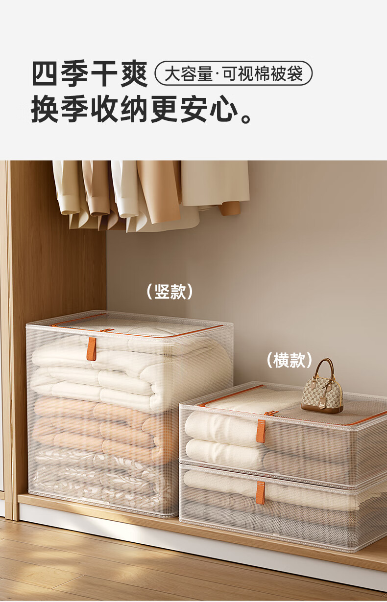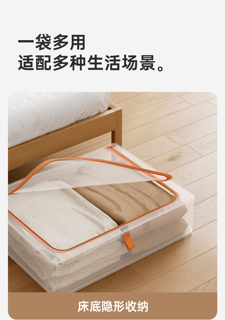邦尼美家被子收纳袋家用衣柜衣服棉被整理密封袋搬家衣物手提便携打包袋子 【1个装】横款-防潮防尘/透明可视 放心购(环保材质 无异味)