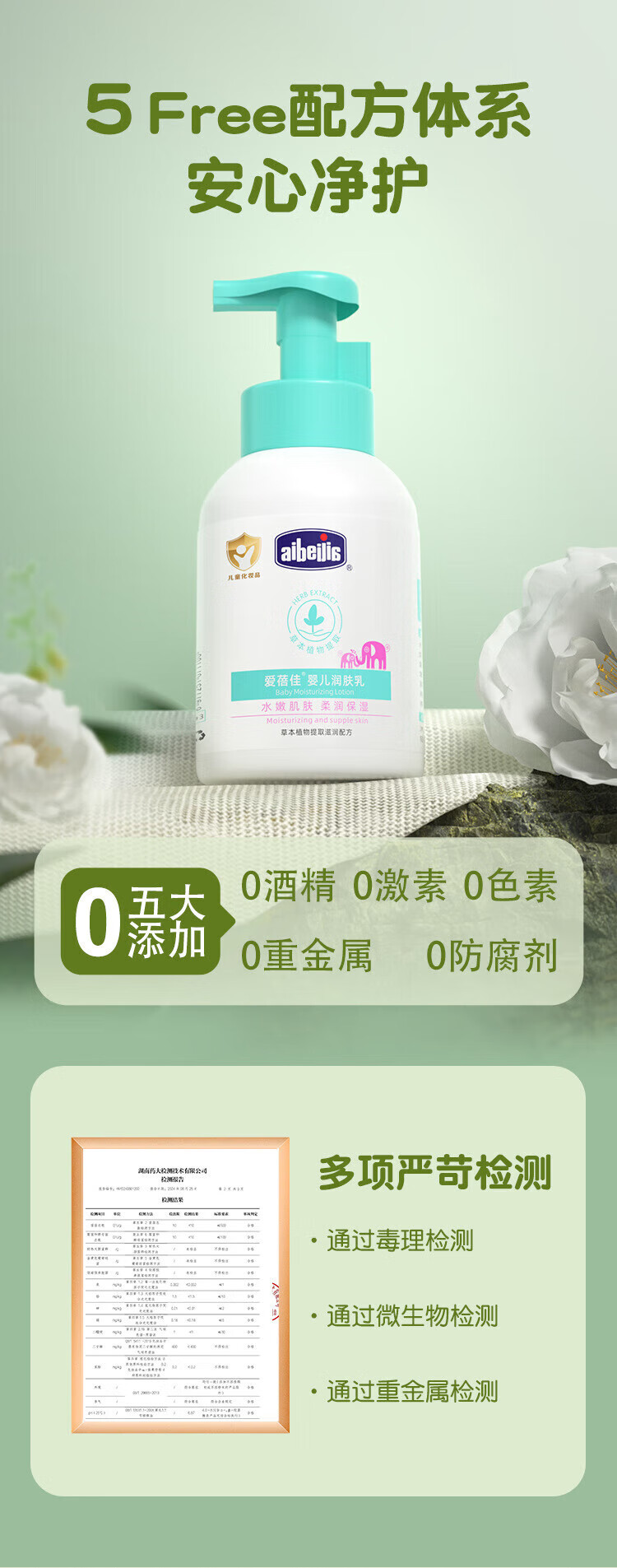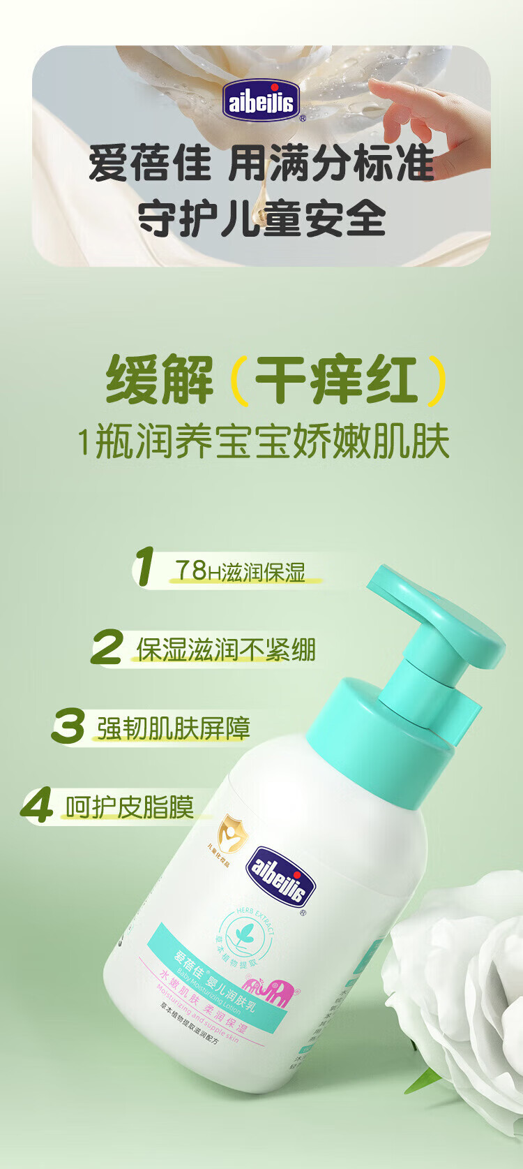 爱蓓佳(aibeijia)大容量婴儿保湿乳温和滋润全身 儿润肤乳300g儿润肤乳300g(柔润保湿全身