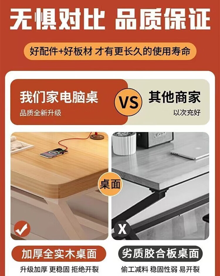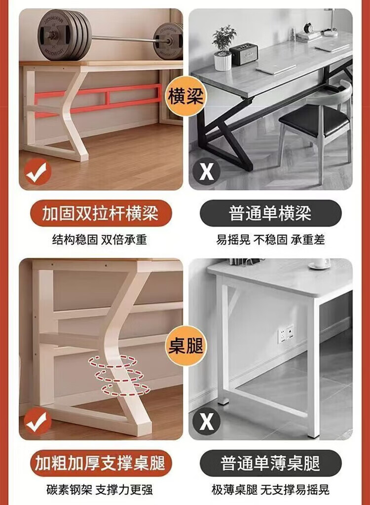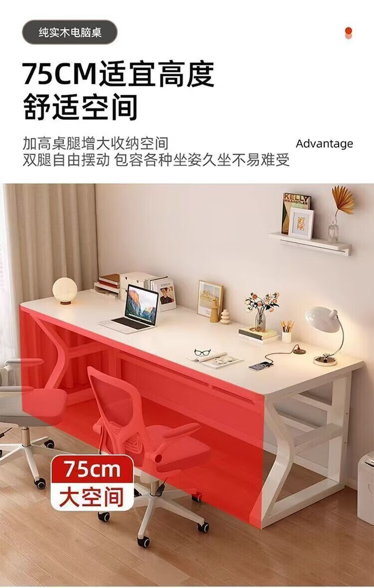 倘然之家电脑桌台式书桌学生家用双人学习桌写字台小户型简约现代办公桌子 黑架+ 白色桌面【加厚实木25mm桌面】 80*60*75【厂家直销+加固支撑】
