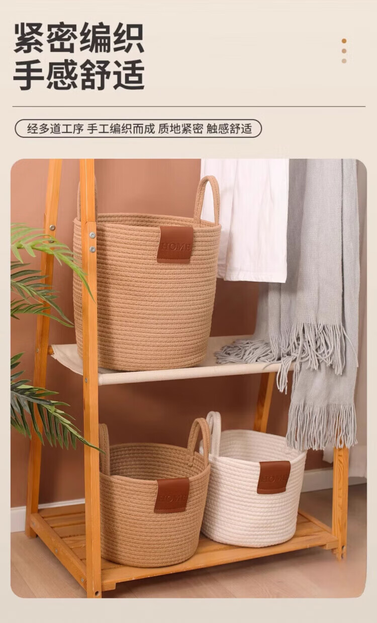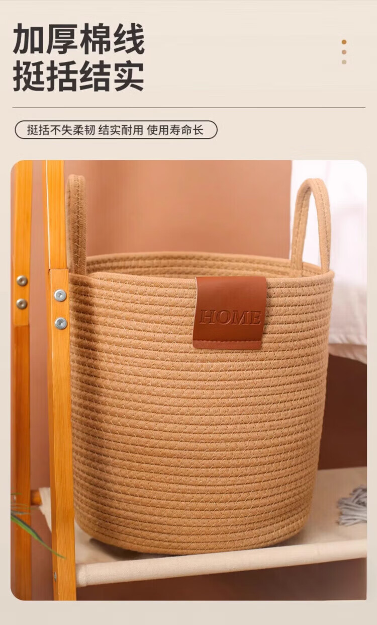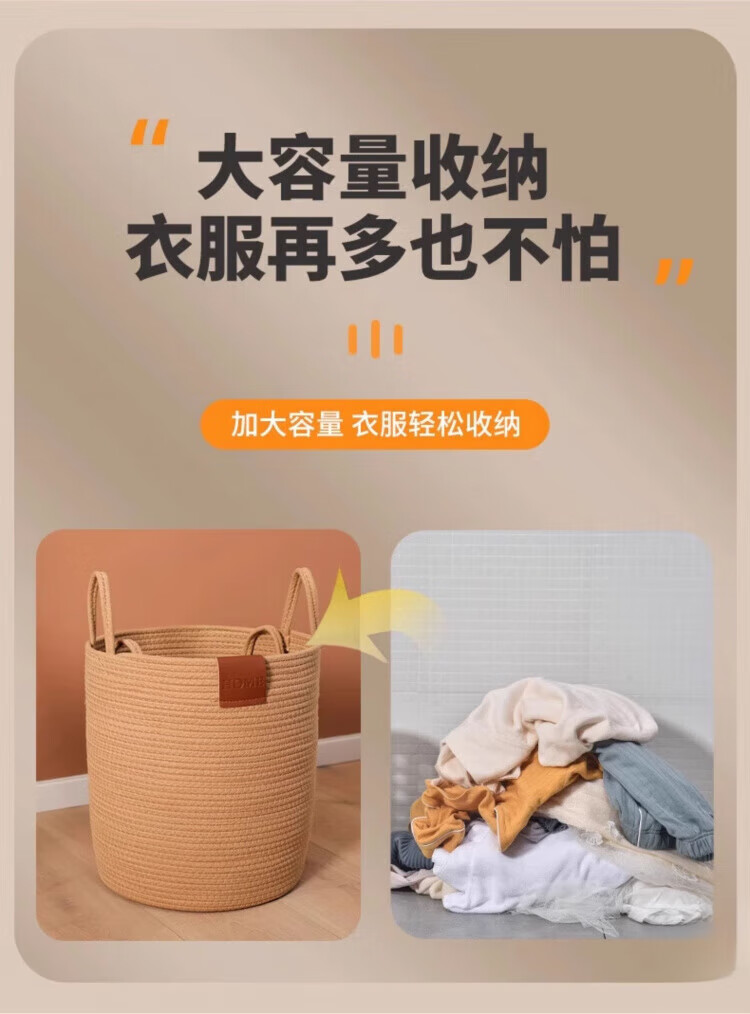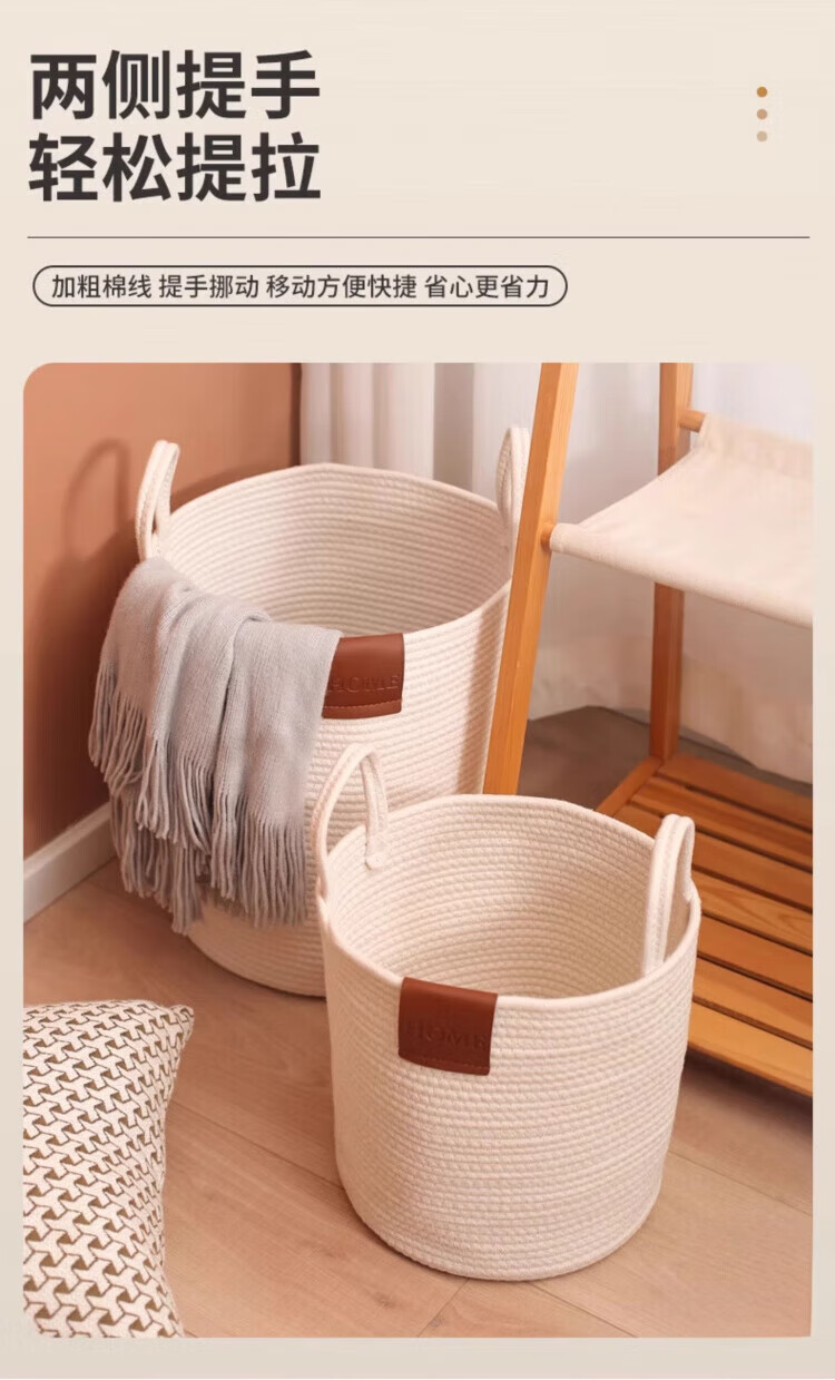 WCZ德国ins民宿棉绳脏衣篮编织脏衣篓高颜值衣服收纳筐子家用玩具收 可可咖特大号大容量3-4人使用,更多人的选择