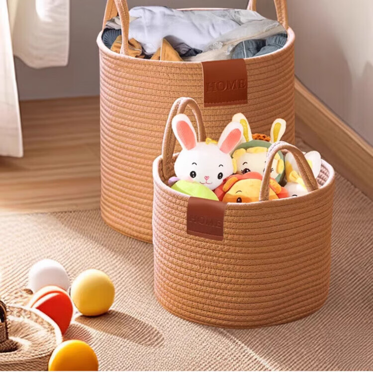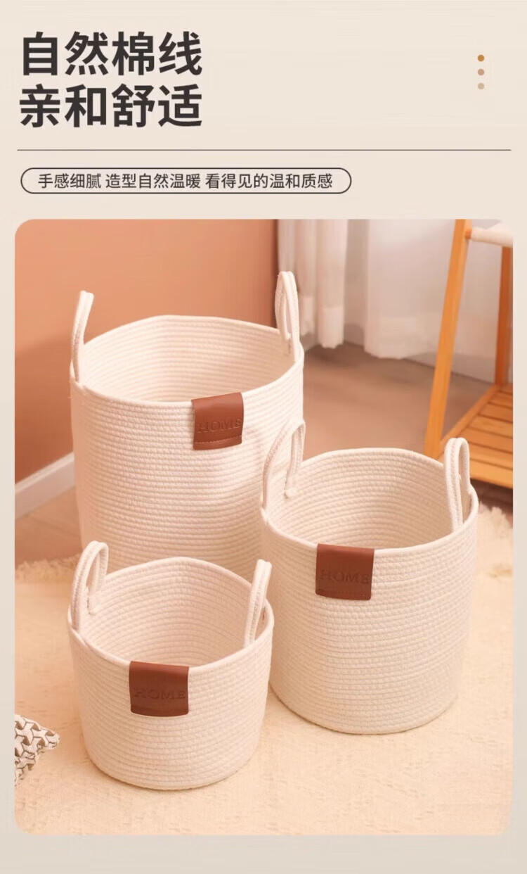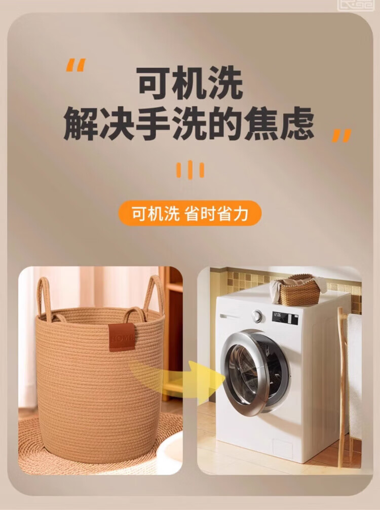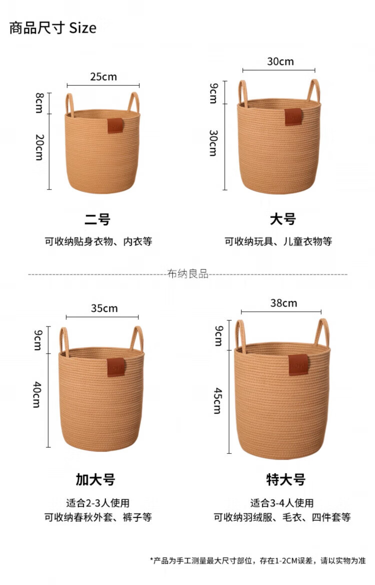 WCZ德国ins民宿棉绳脏衣篮编织脏衣篓高颜值衣服收纳筐子家用玩具收 可可咖特大号大容量3-4人使用,更多人的选择