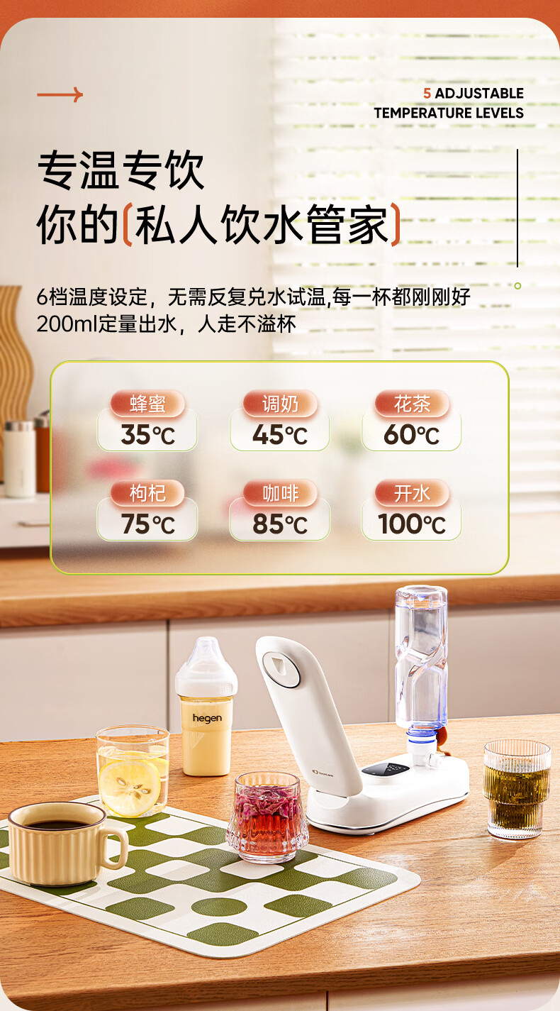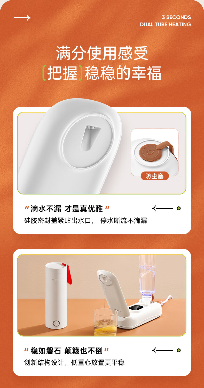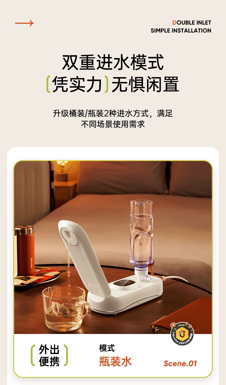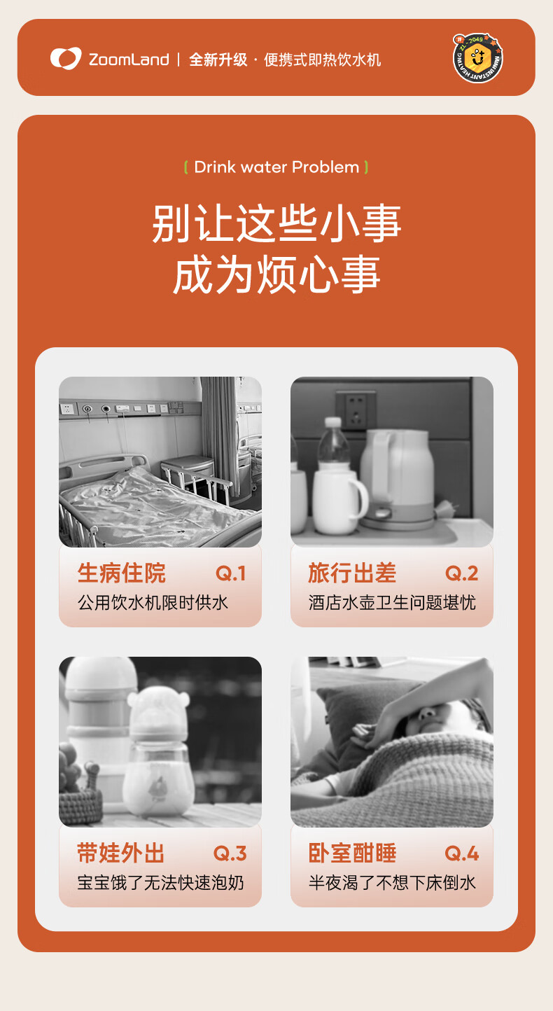 卓朗便携式即热饮水机便携式热水壶 家用泡奶饮水机小型米白色旅行便携烧水壶ZL-2049DW