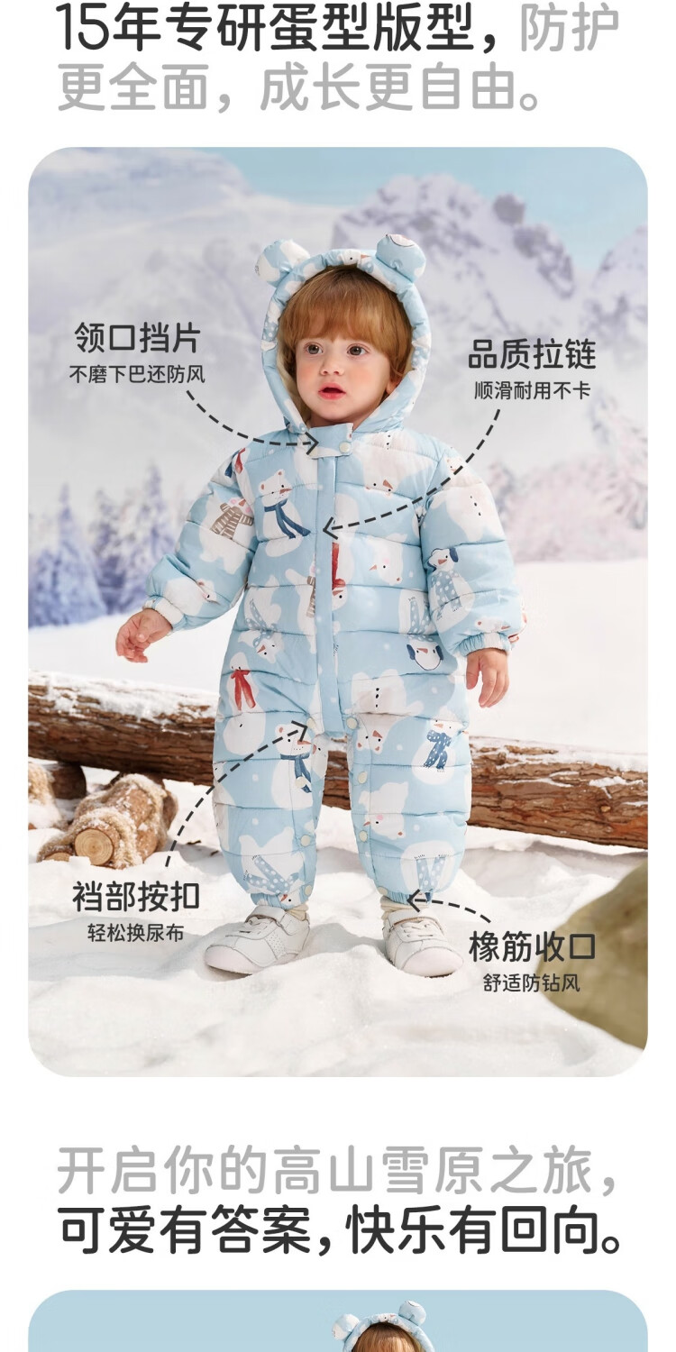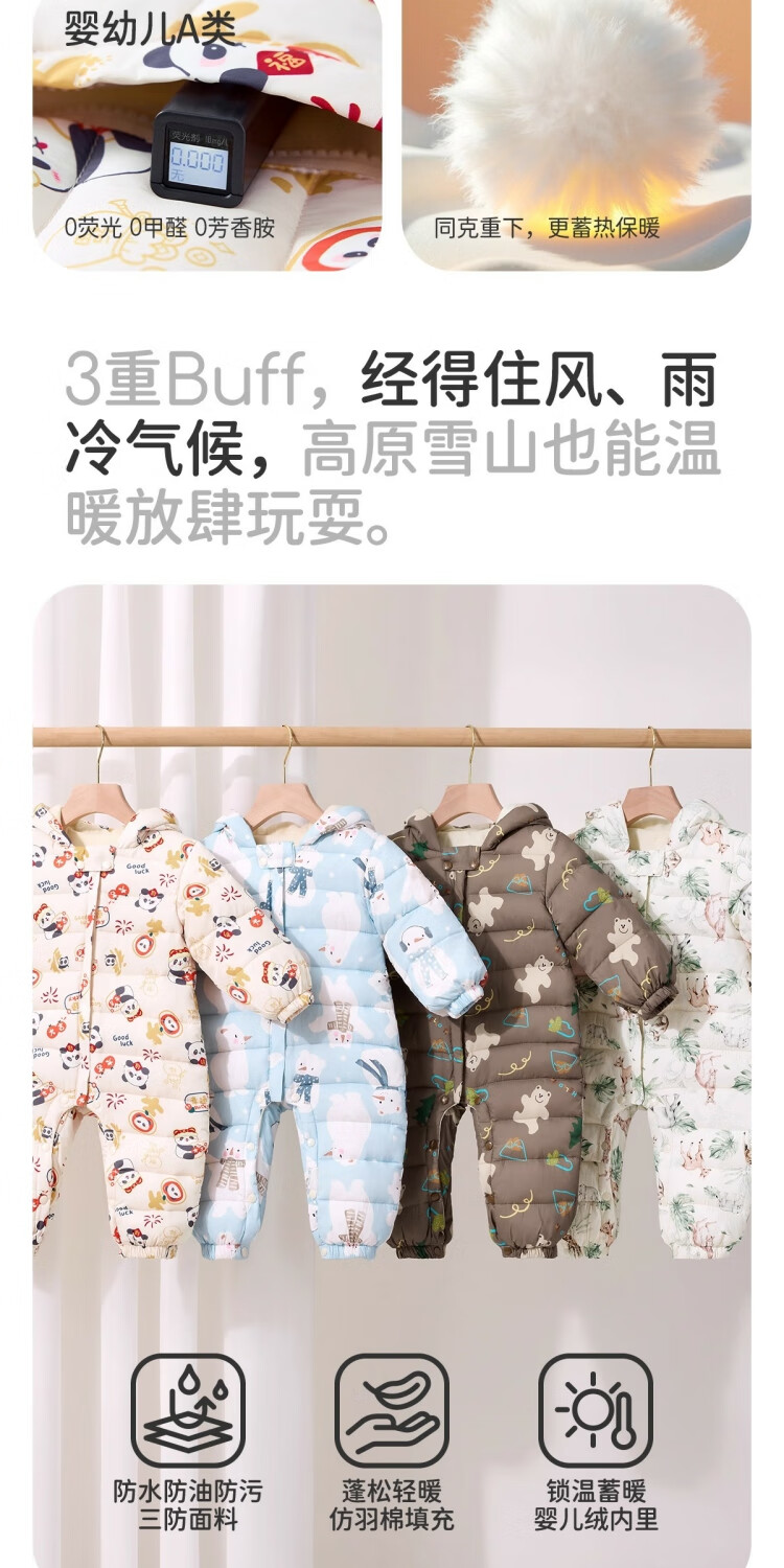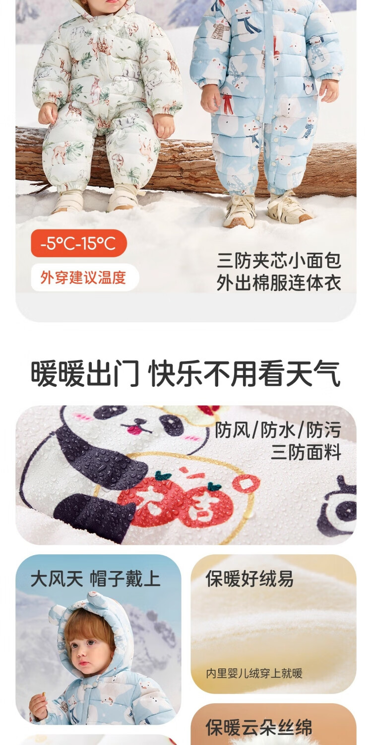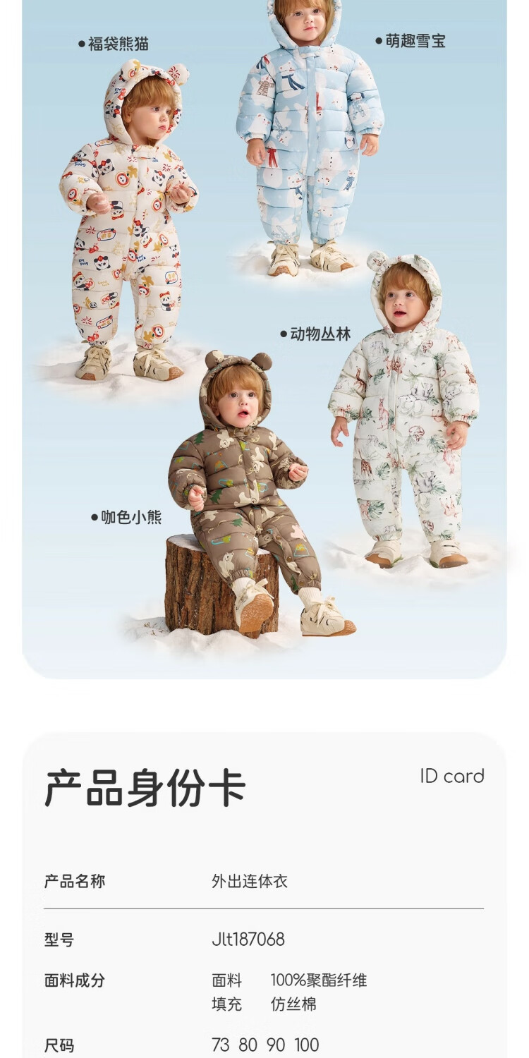婧麒(JOYNCLEON)婴儿衣服宝宝连体衣冬季加绒加厚夹棉款连帽哈衣保暖外出棉服 动物丛林 73cm 【6-9个月建议体重7.2-9kg】