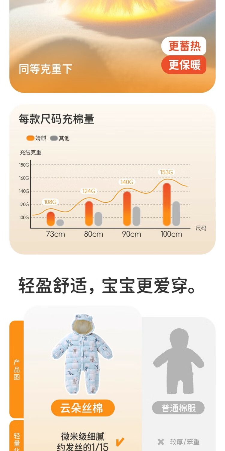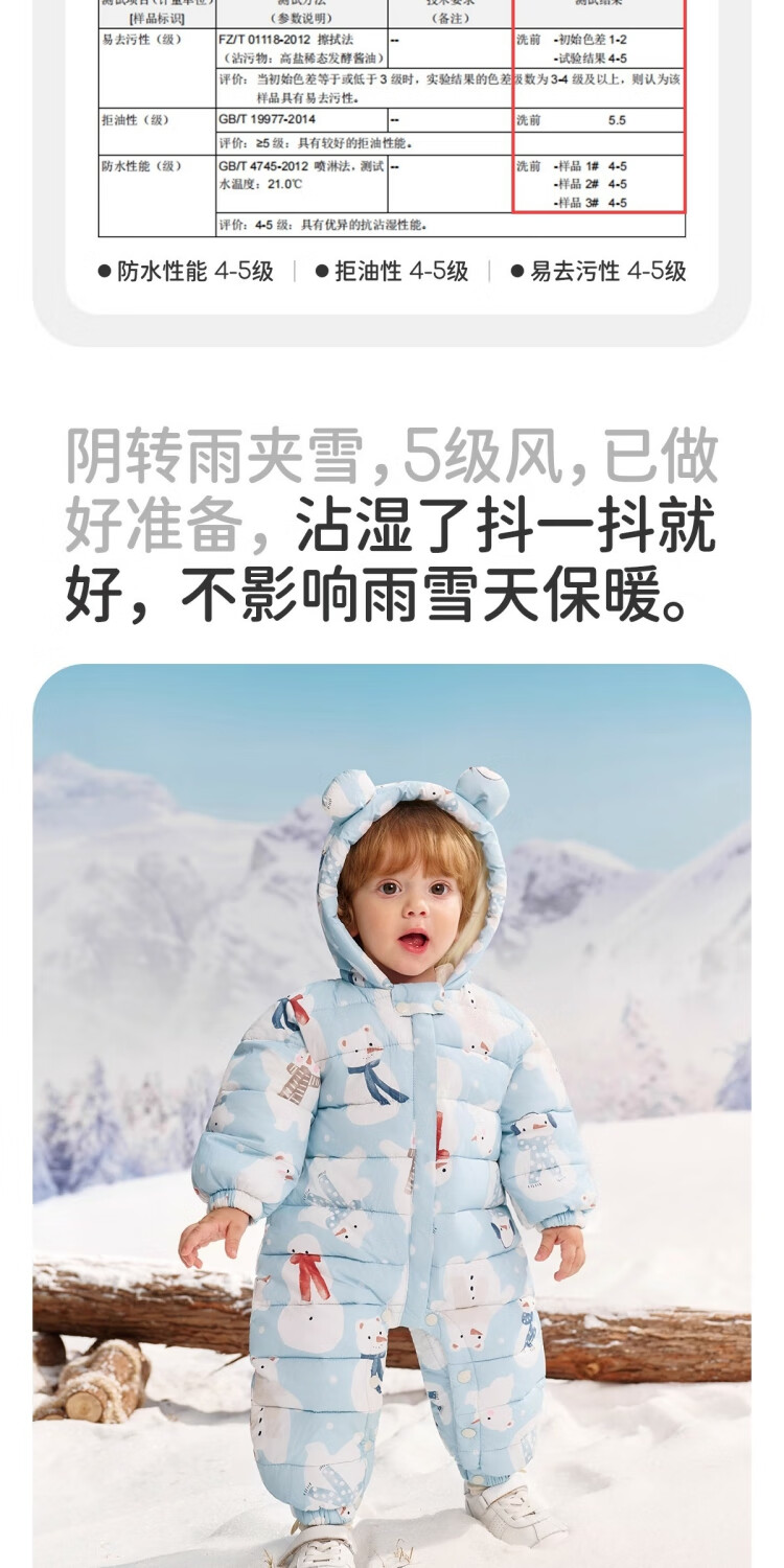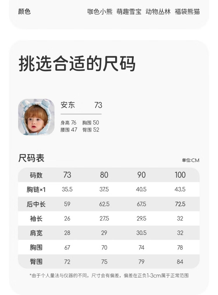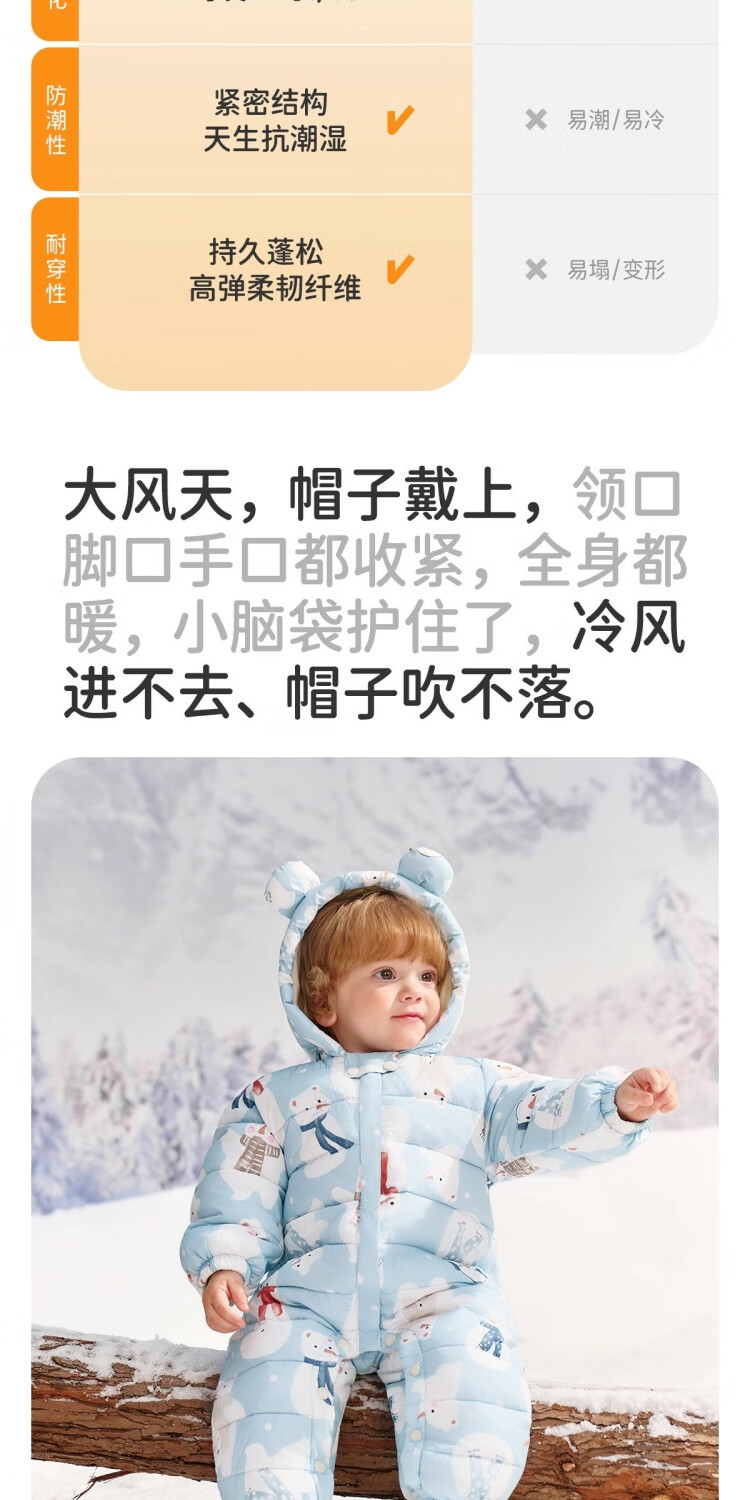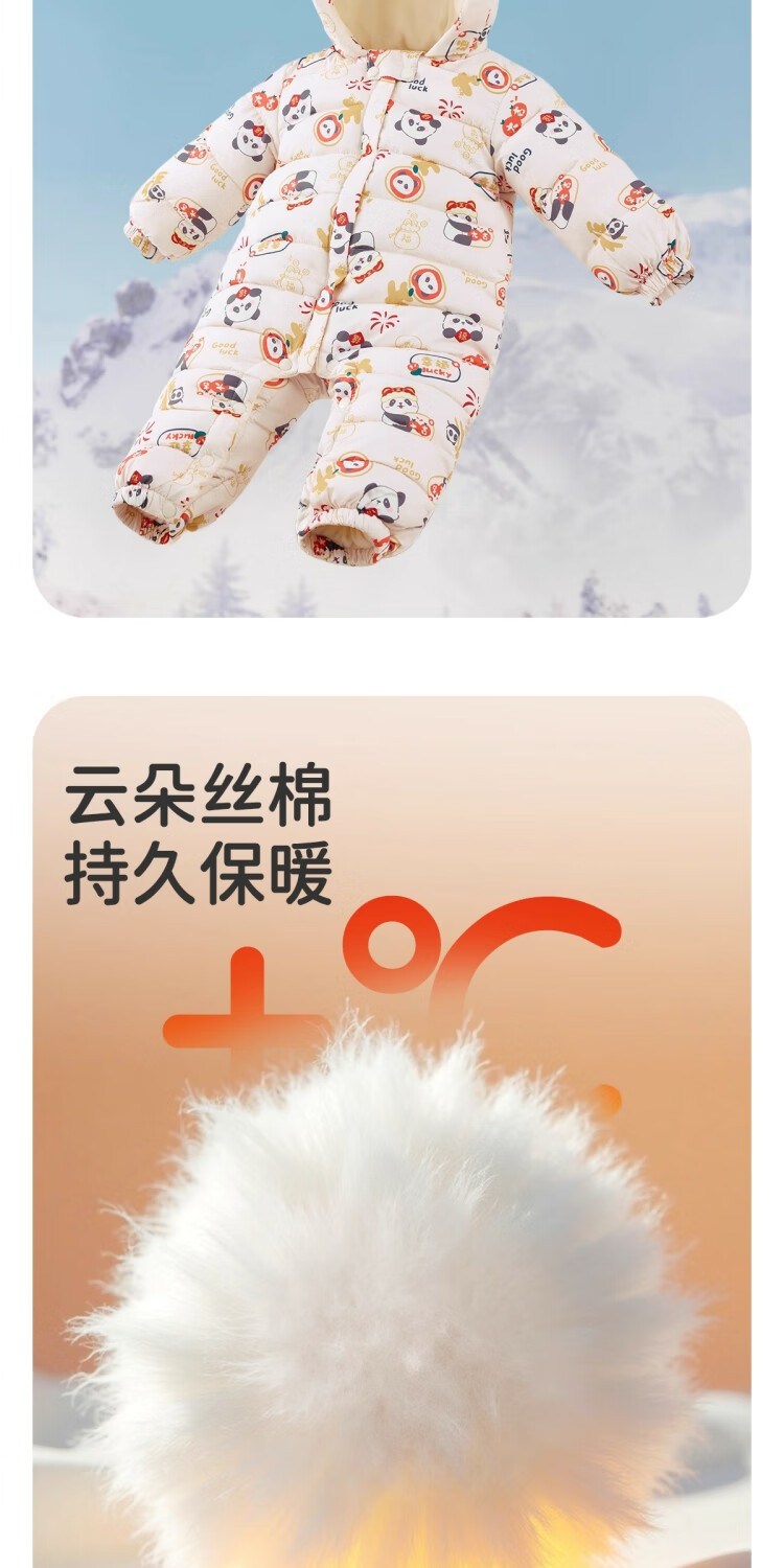 婧麒(JOYNCLEON)婴儿衣服宝宝连体衣冬季加绒加厚夹棉款连帽哈衣保暖外出棉服 动物丛林 73cm 【6-9个月建议体重7.2-9kg】