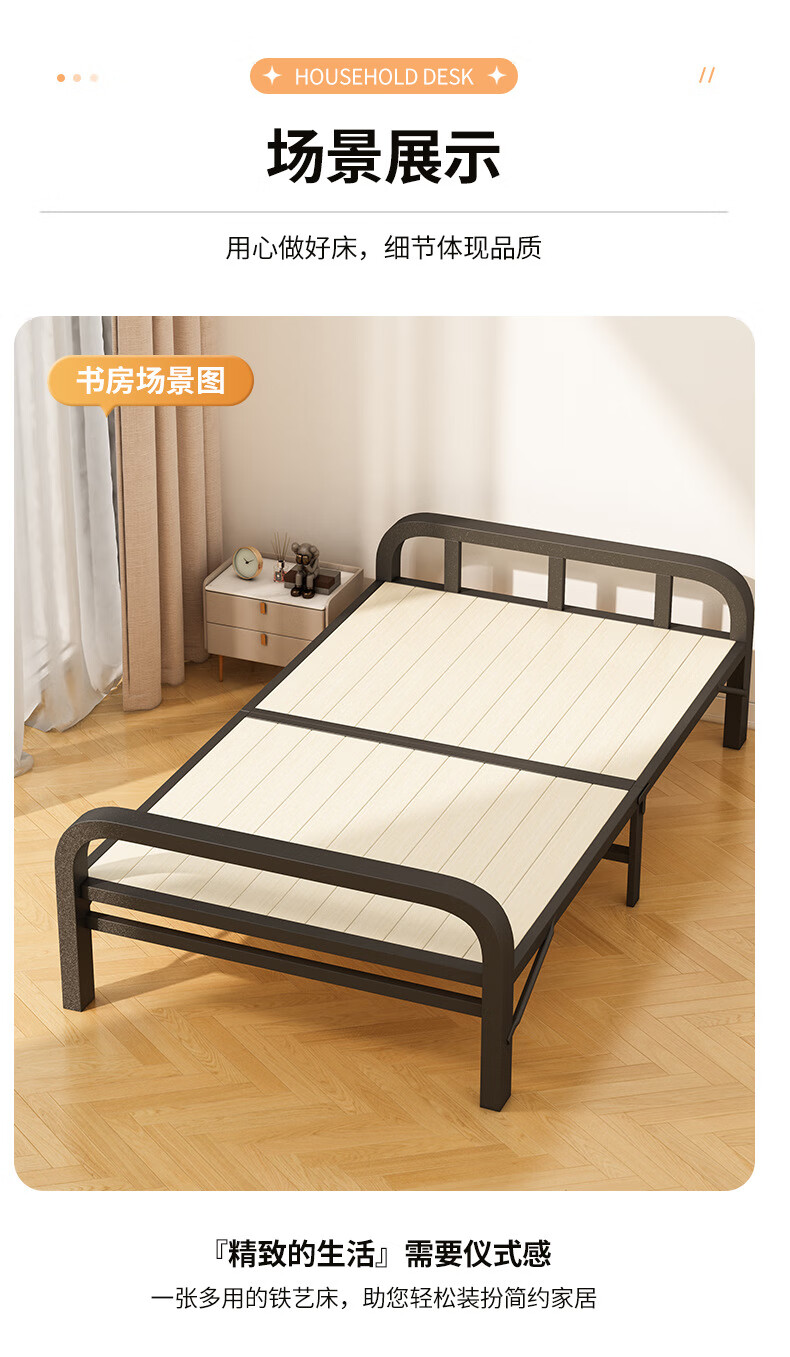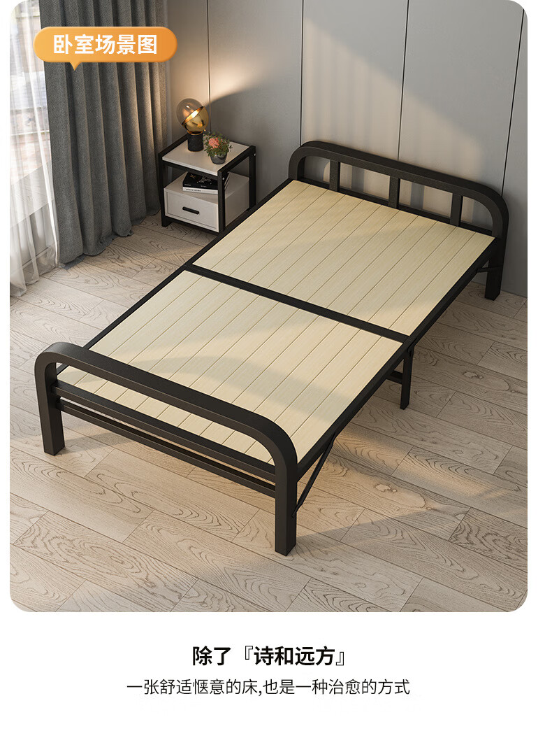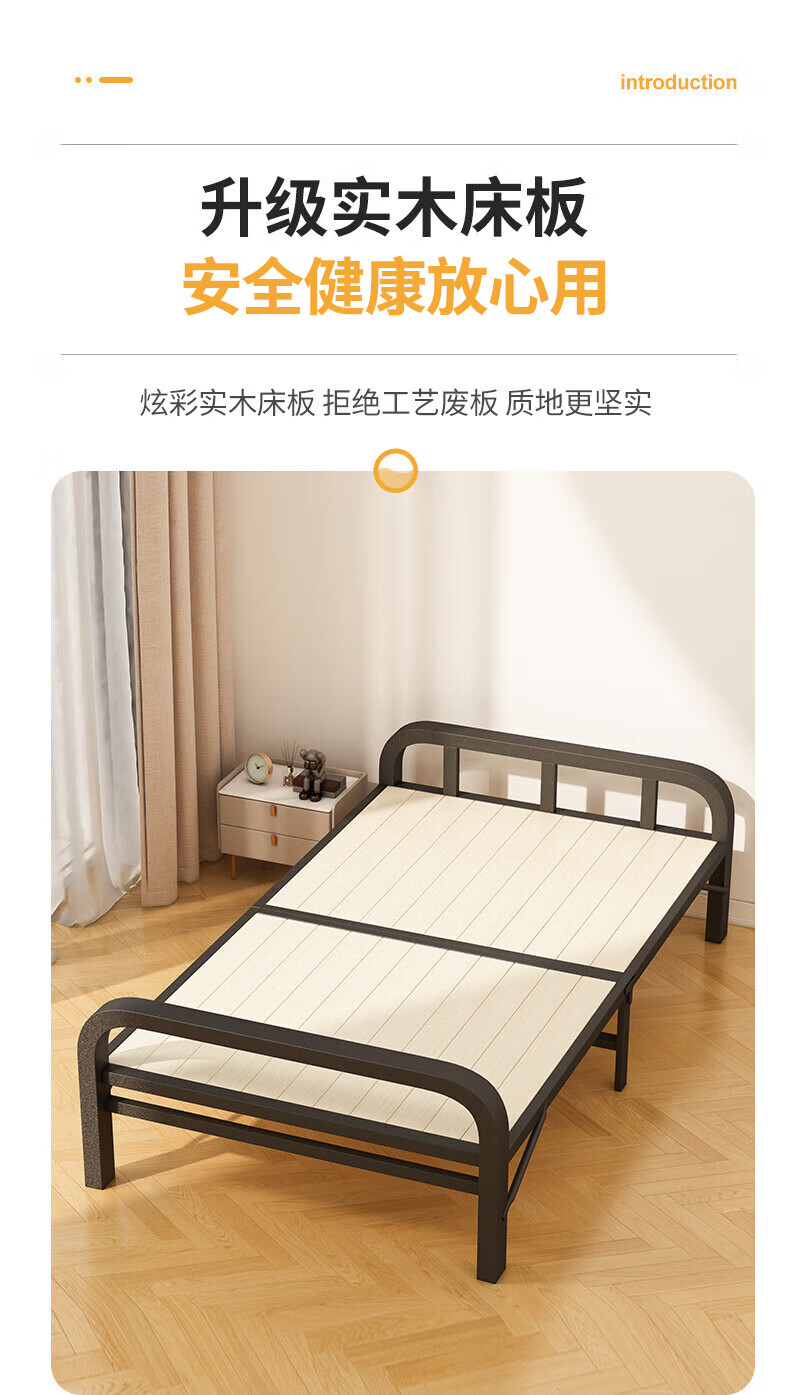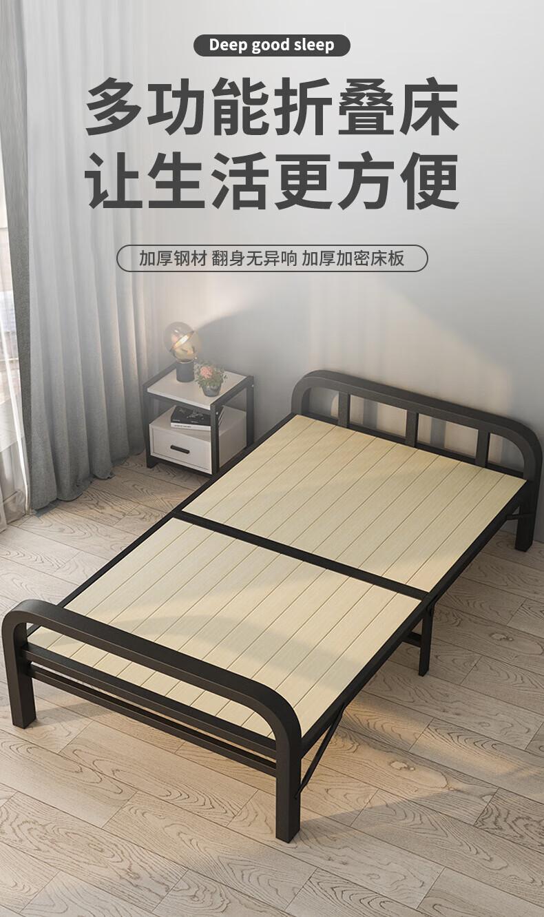 全品屋折叠床单人床办公室午休床午睡床行军床医院家用陪护硬板床铁床 升级实木板-1米宽