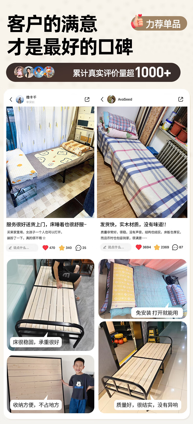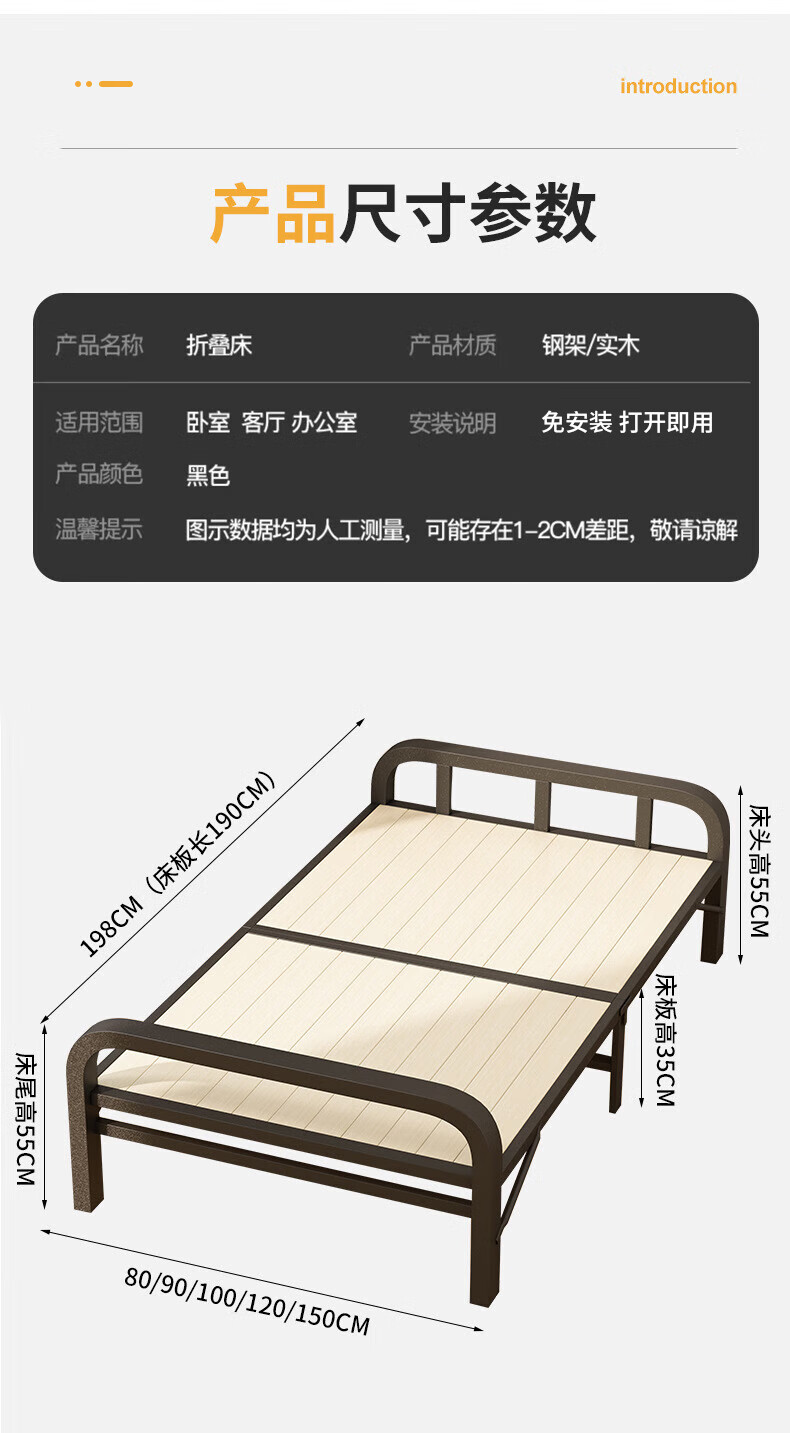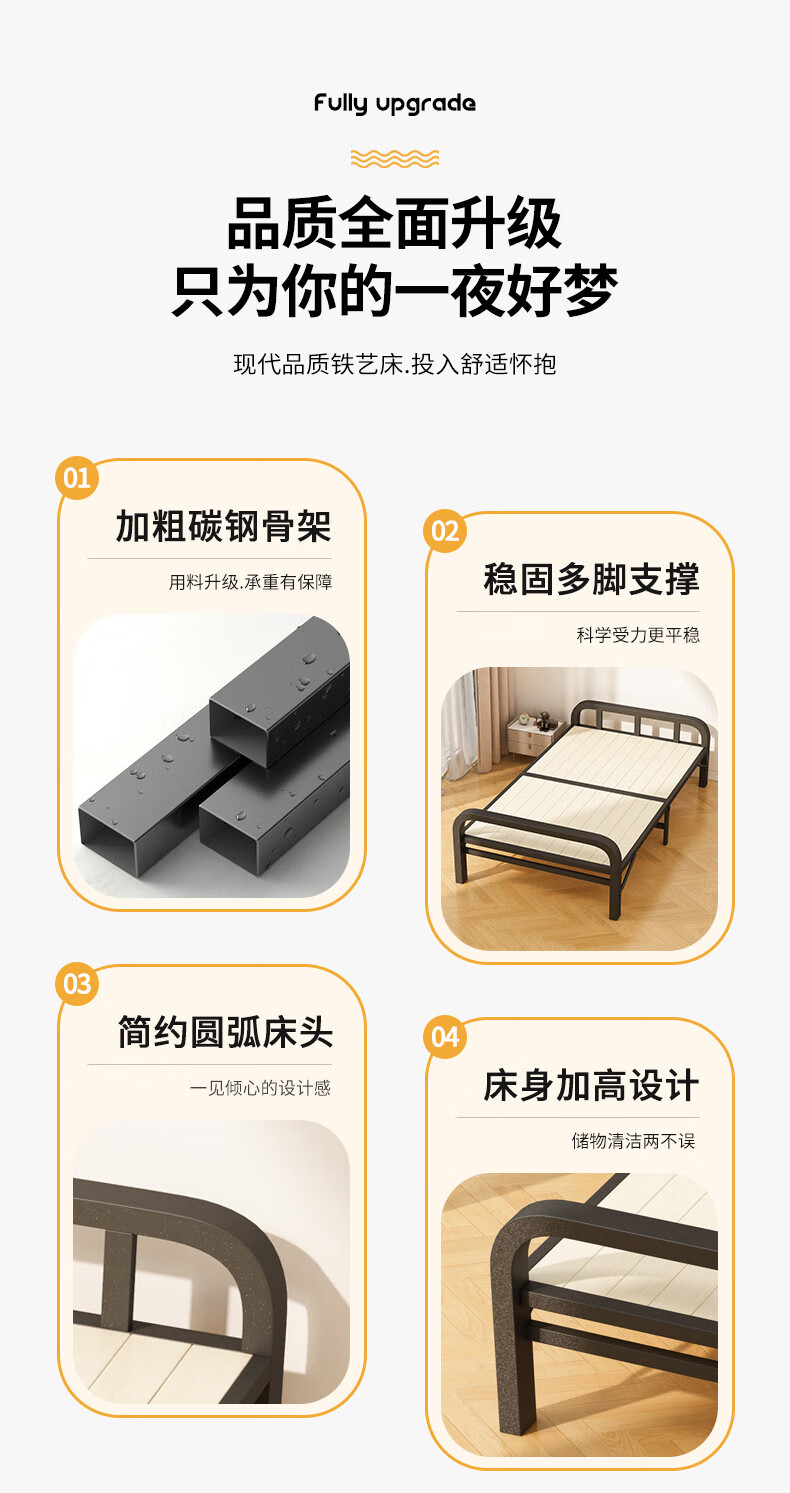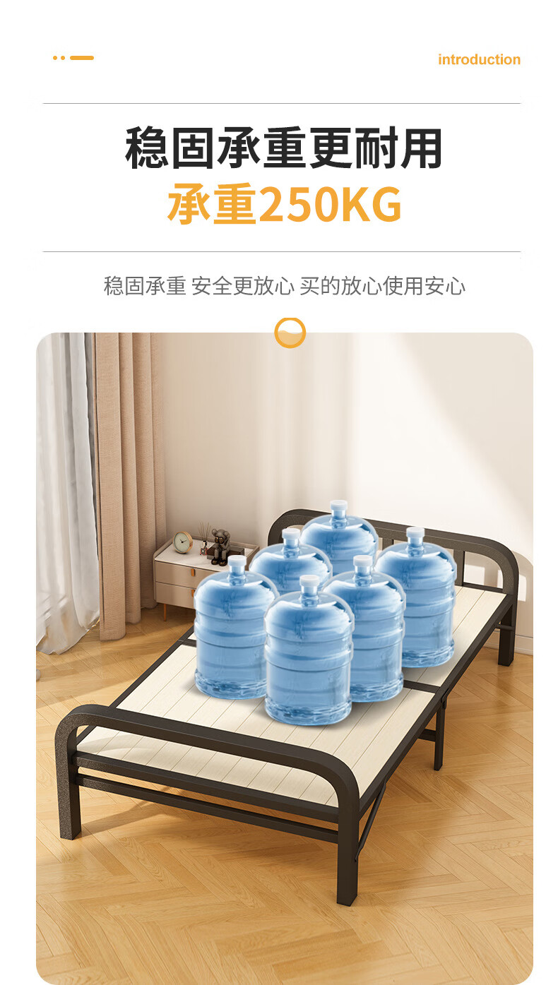 全品屋折叠床单人床办公室午休床午睡床行军床医院家用陪护硬板床铁床 升级实木板-1米宽