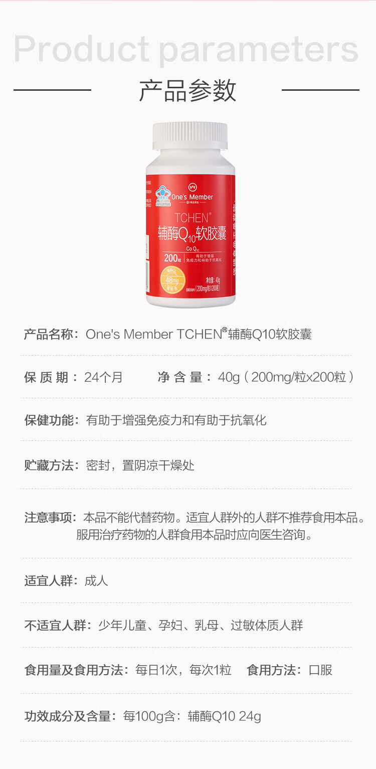 1号会员店(One's Member)辅酶Q10软胶囊 强健心肌护心动力心脑血管熬夜加班增强免疫 200粒