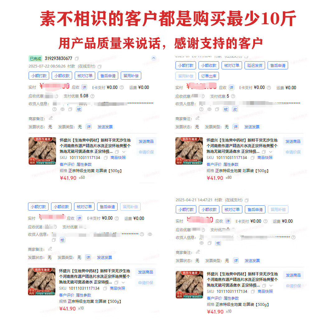 怀盛兴【生地黄中药材】新鲜干货无沙生地个河南焦作水洗正宗怀地黄整个 正宗特级生地黄 划算装【500g】