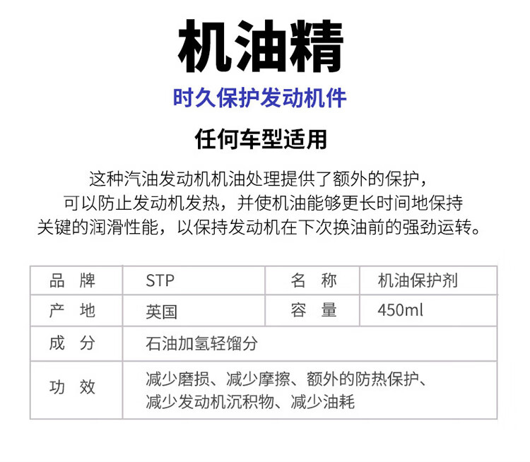 STP机油精 发动机抗磨保护剂/机油添加剂/降噪抖动修复剂防热保护 450ml*单瓶装