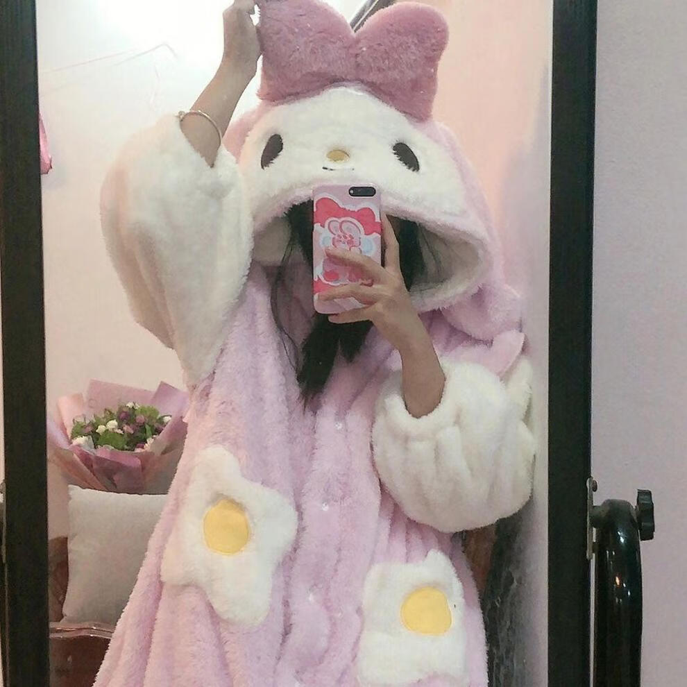 诗莉奥(SHILIAO)2025年新款可爱小猫咪加厚珊瑚绒睡衣女秋冬季法兰绒睡袍 猫咪睡袍 均码 【80-130斤】