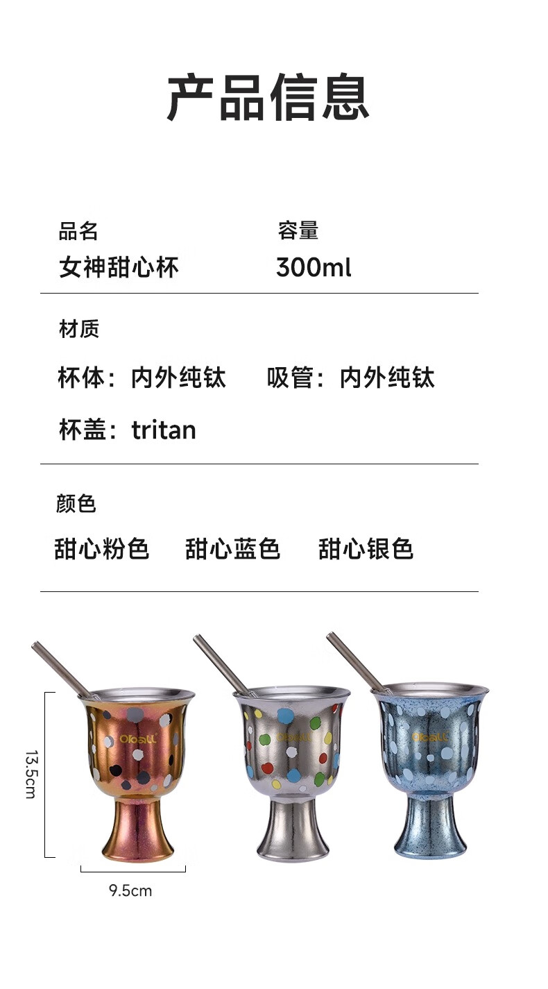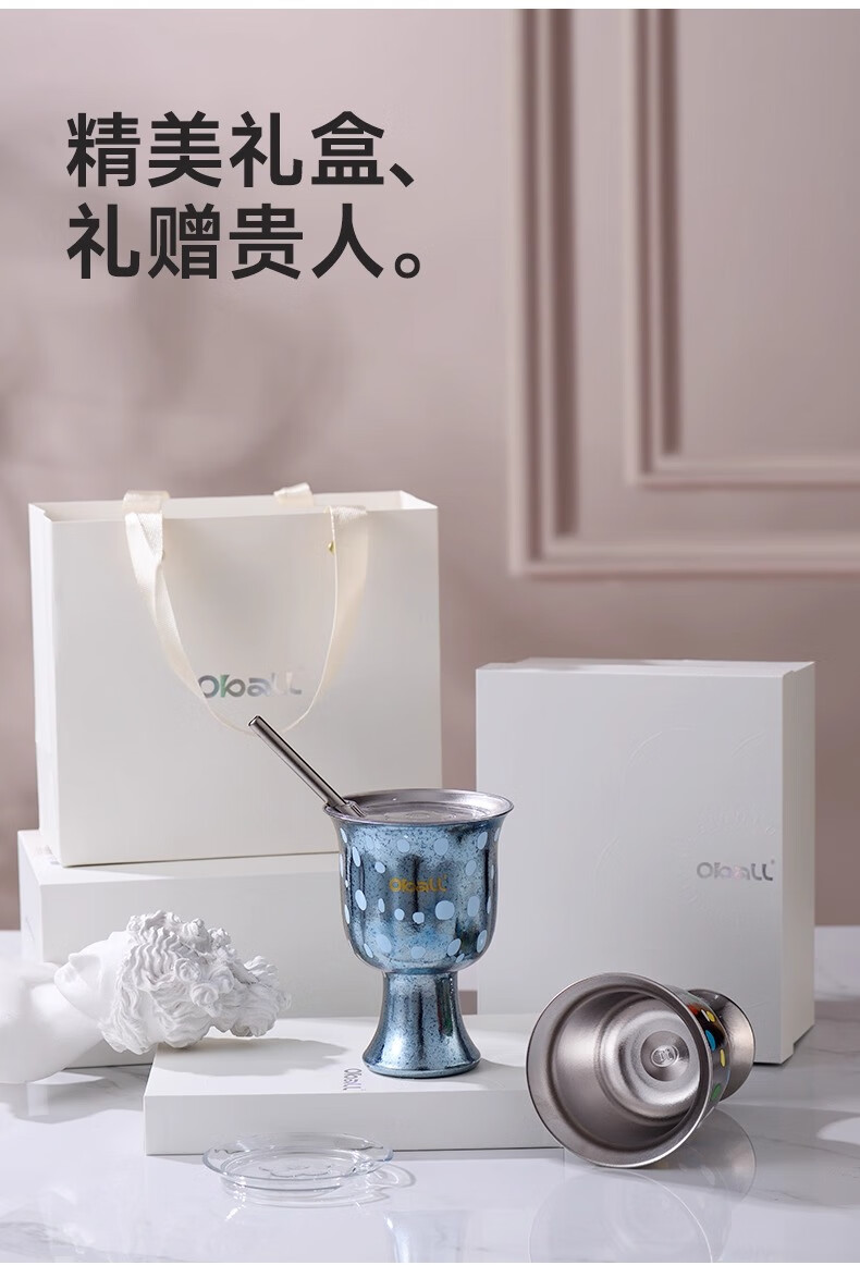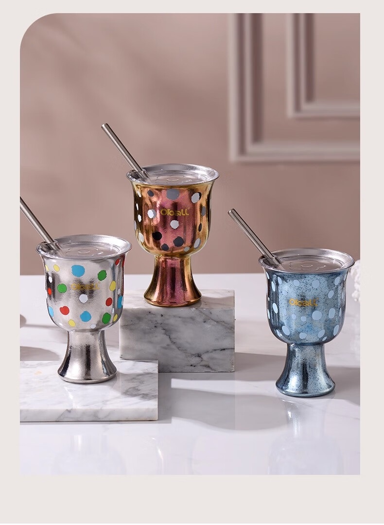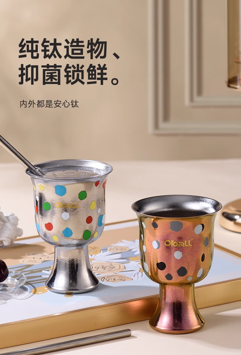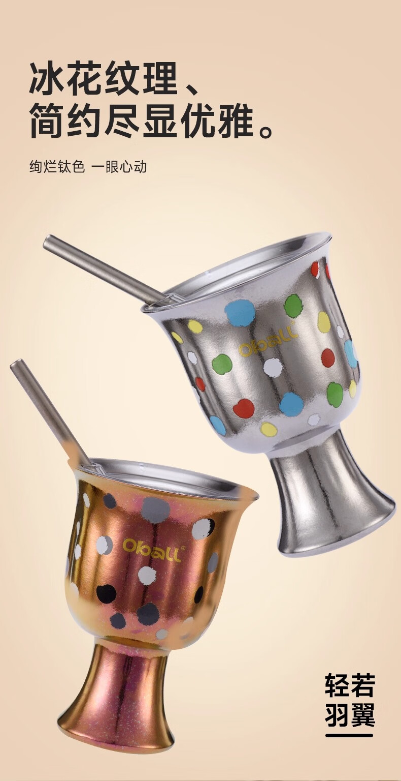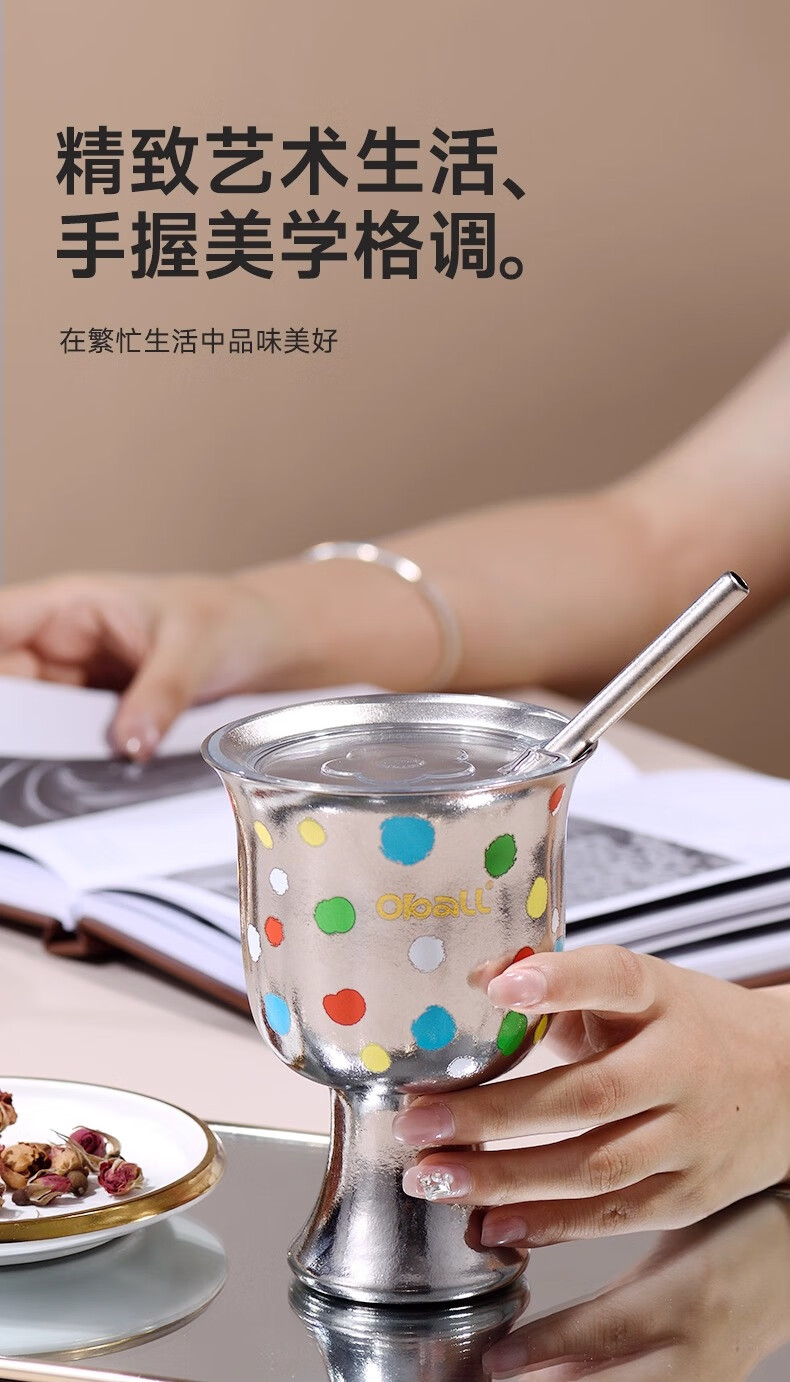 Oball女神波点甜心钛杯潮酷宝妈喝水杯子简约优雅甜点桌面杯子 波点甜心杯银色 300ml