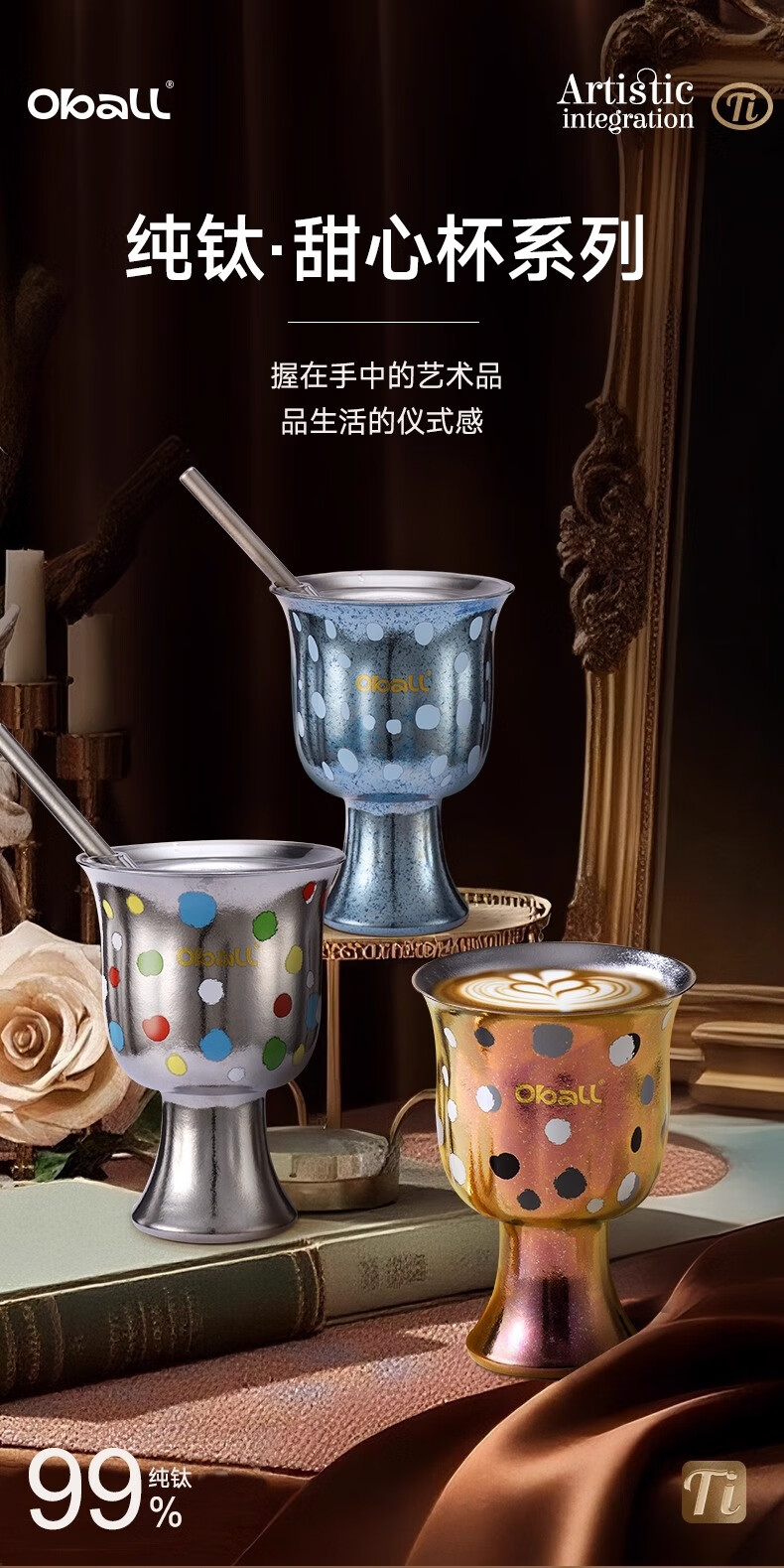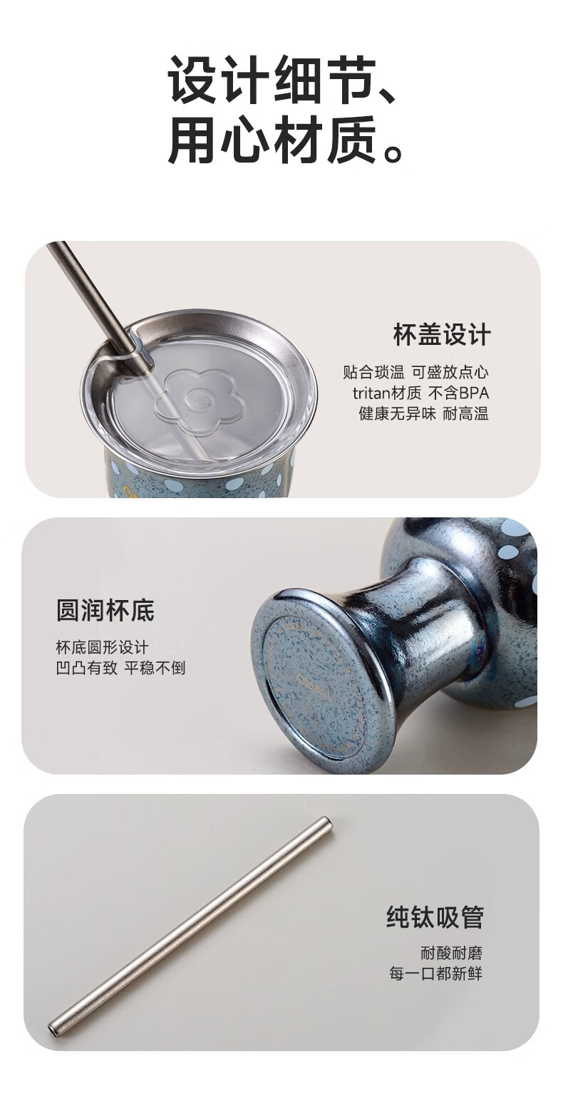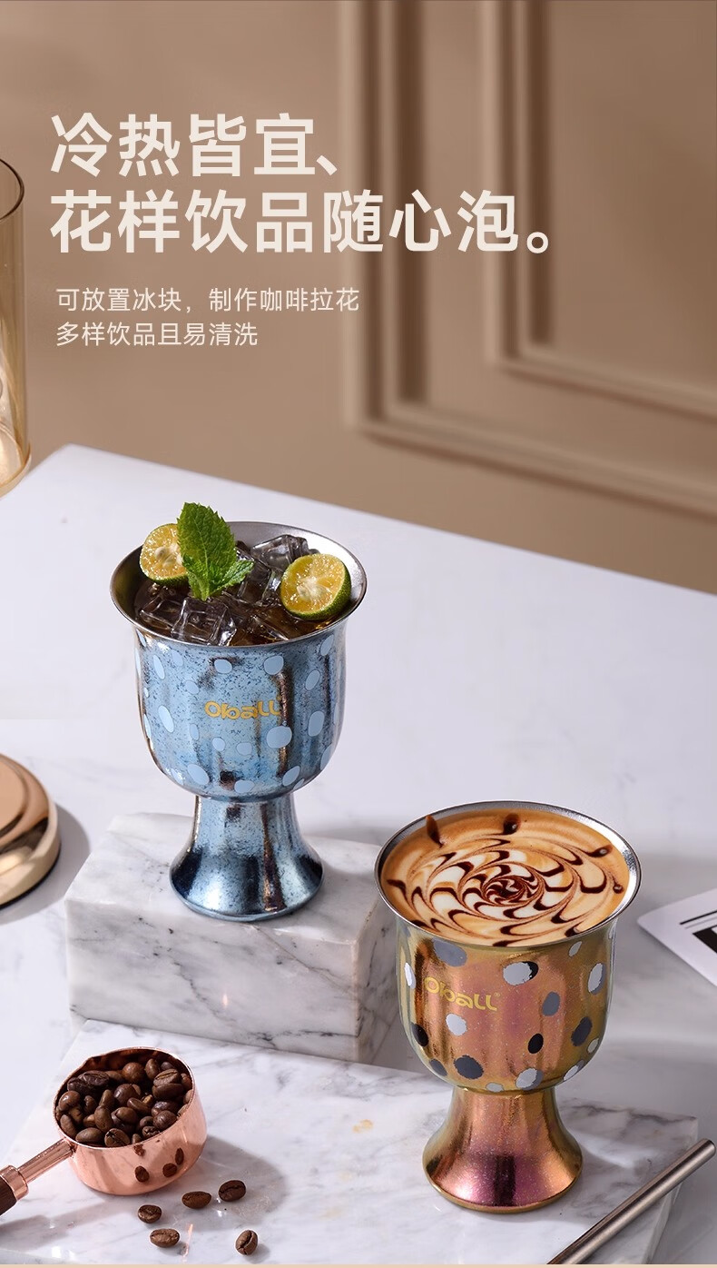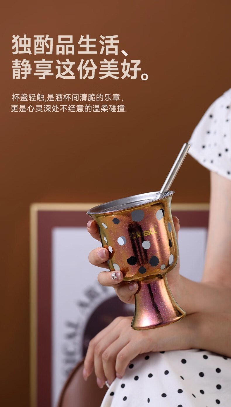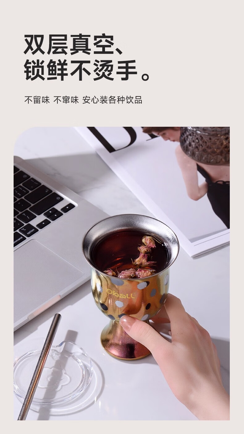 Oball女神波点甜心钛杯潮酷宝妈喝水杯子简约优雅甜点桌面杯子 波点甜心杯银色 300ml