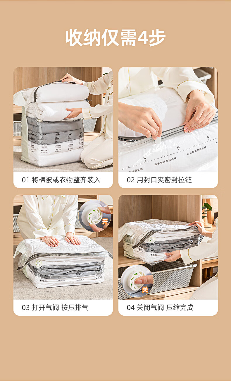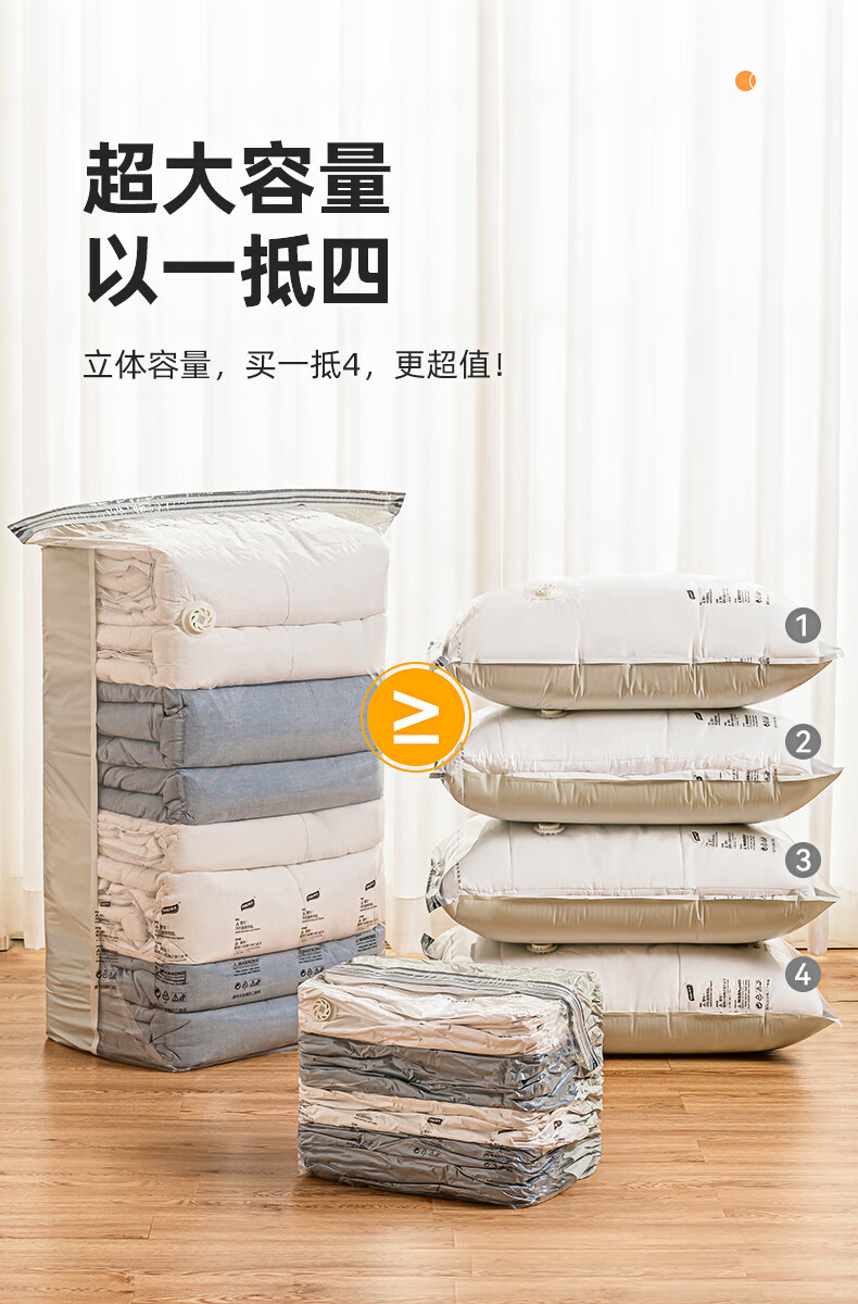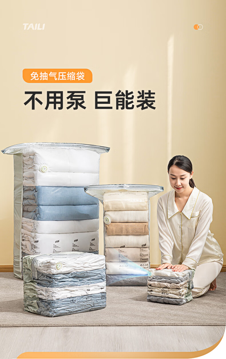 太力 真空压缩收纳袋免抽气真空衣服大号衣物棉被加厚立体整理袋 【8件套】2特大4中立体2大手卷