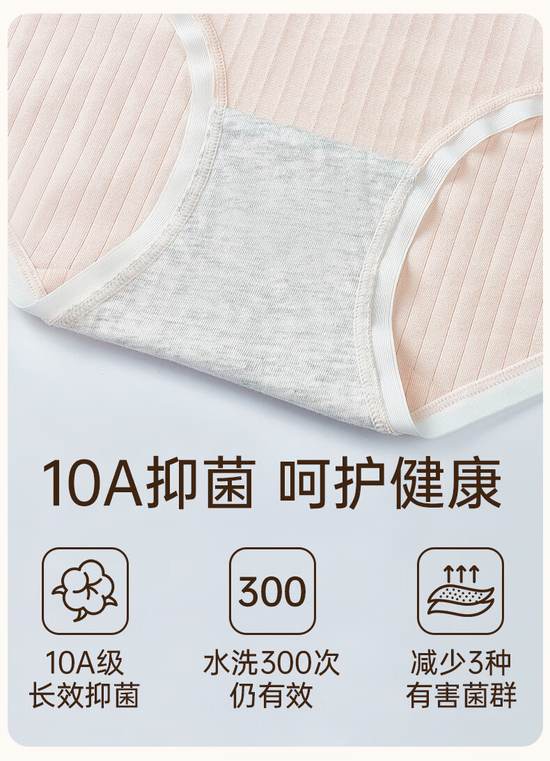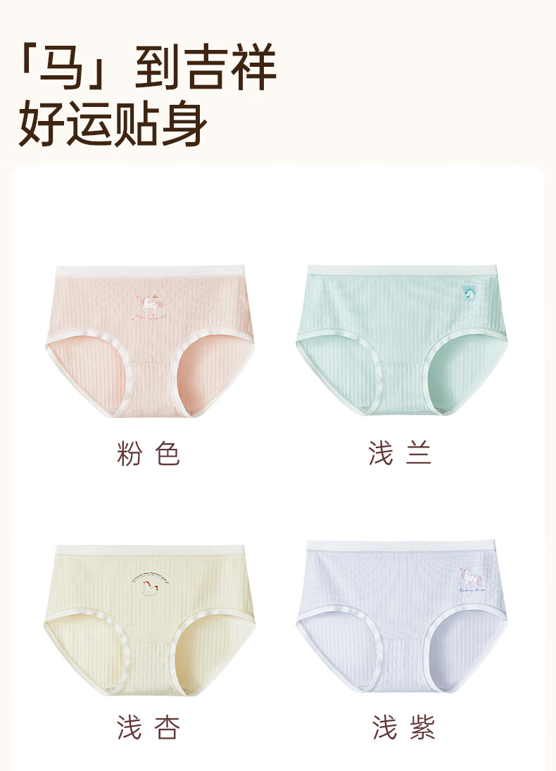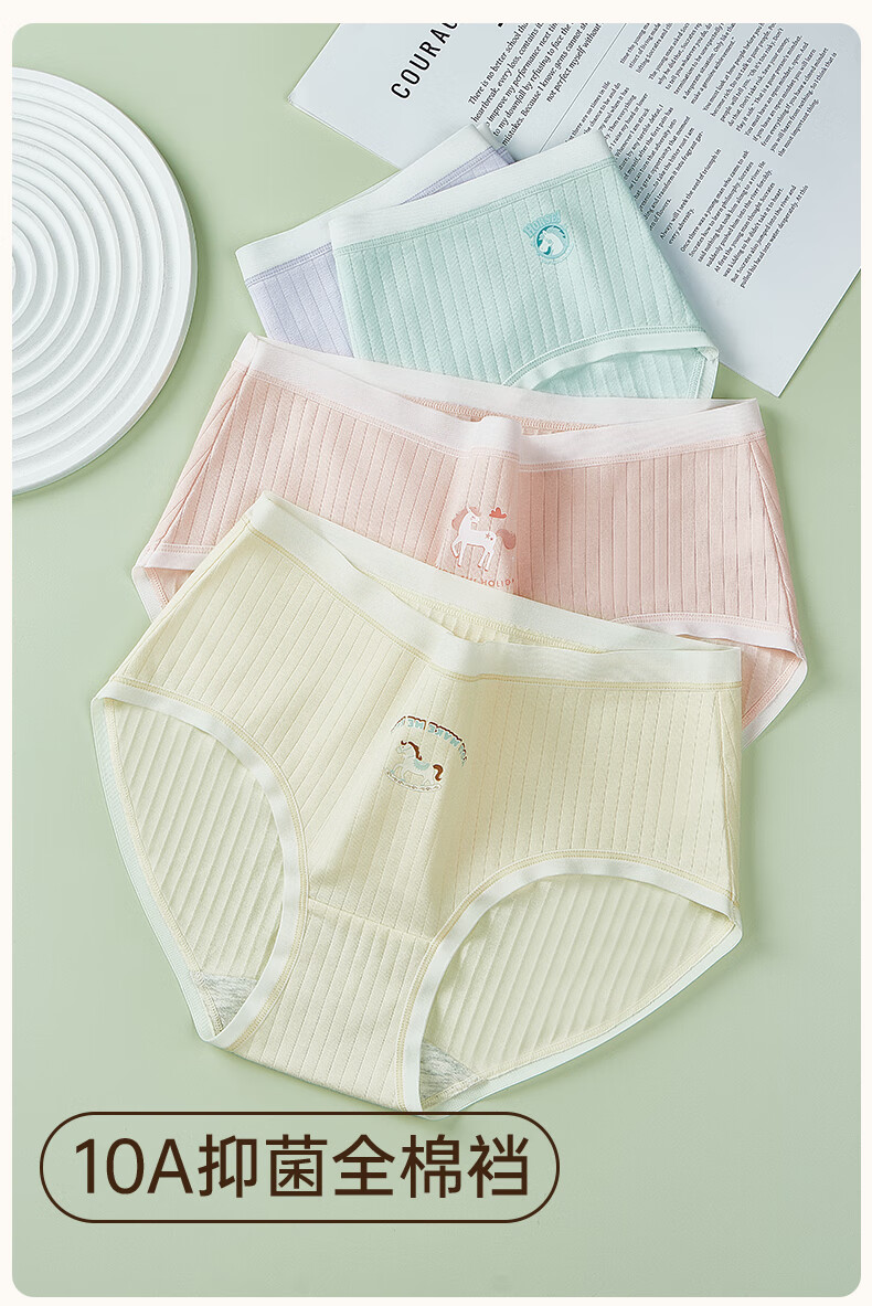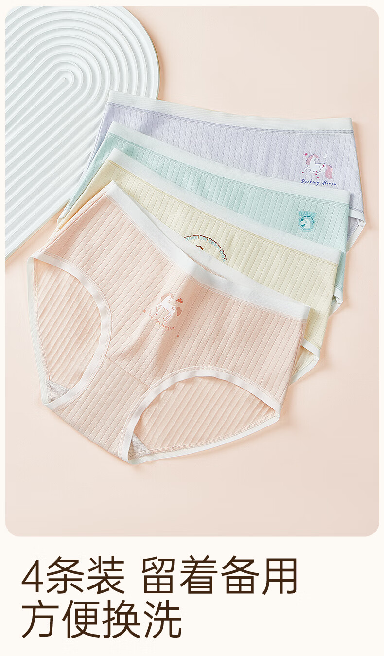 玛伦萨4条装10A抑菌内裤女100%棉裆三角裤头透气可爱少女内裤 浅紫+粉色+浅兰+浅杏 M