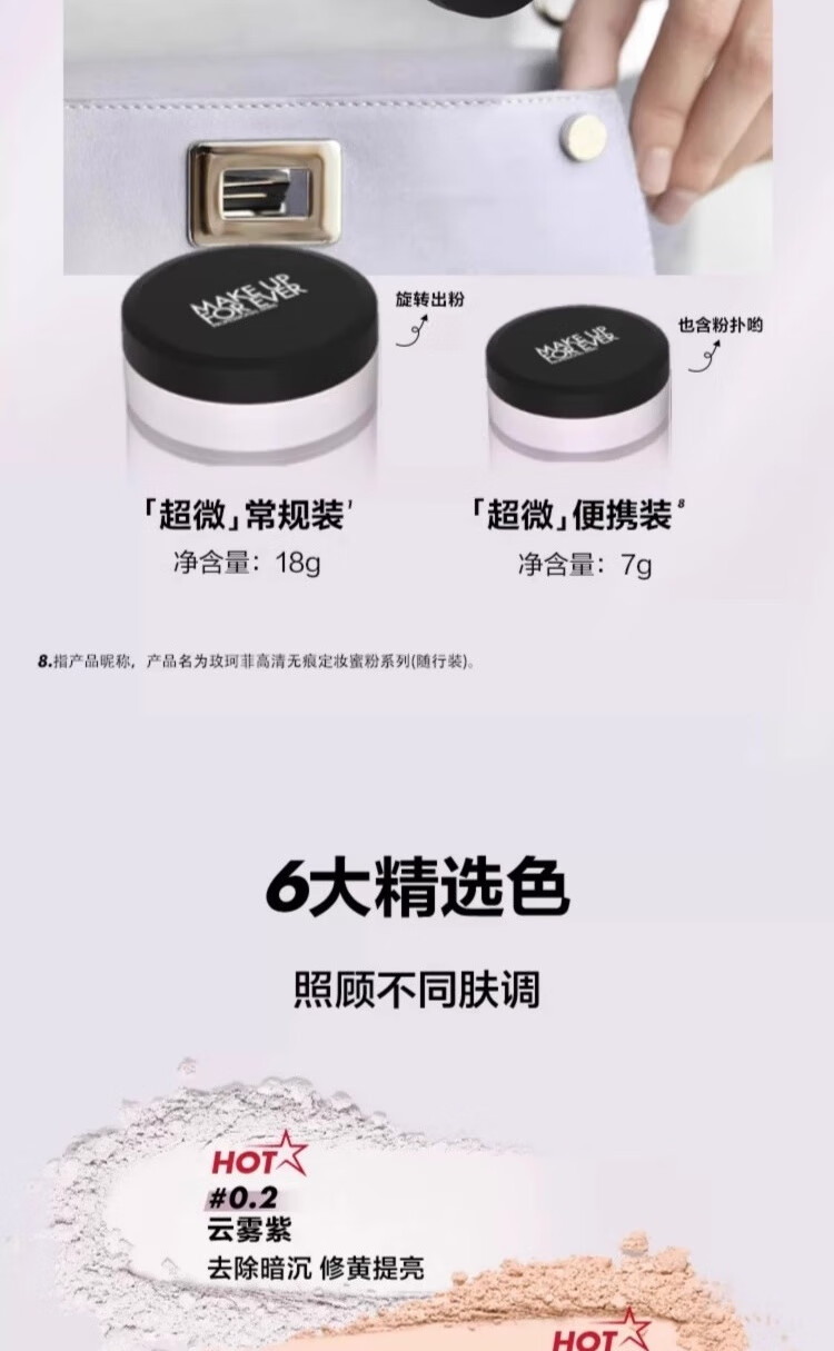 玫珂菲高清无痕定妆蜜粉 定妆粉饼不脱妆#0.2修色薰衣草 生日礼物送女友