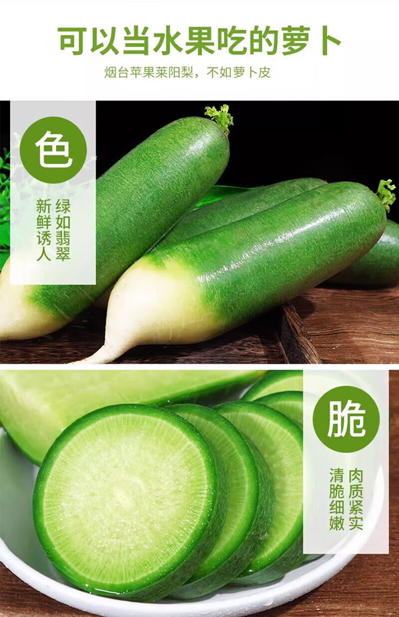 粤迎水果萝卜甜脆水果型正宗潍坊萝卜潍县青萝卜新鲜生吃蘸酱水果萝卜 5斤优选果【脆甜多汁】净4.5斤