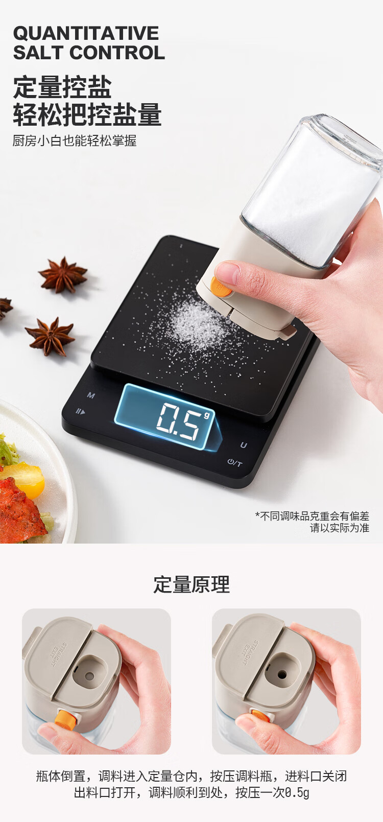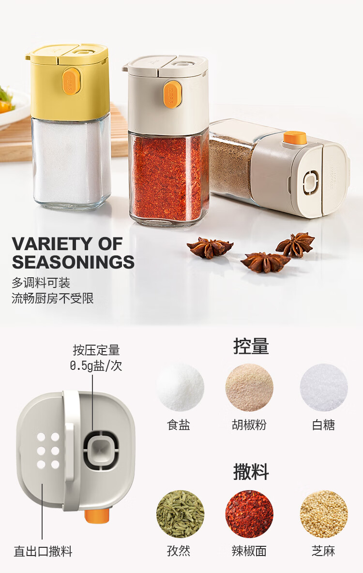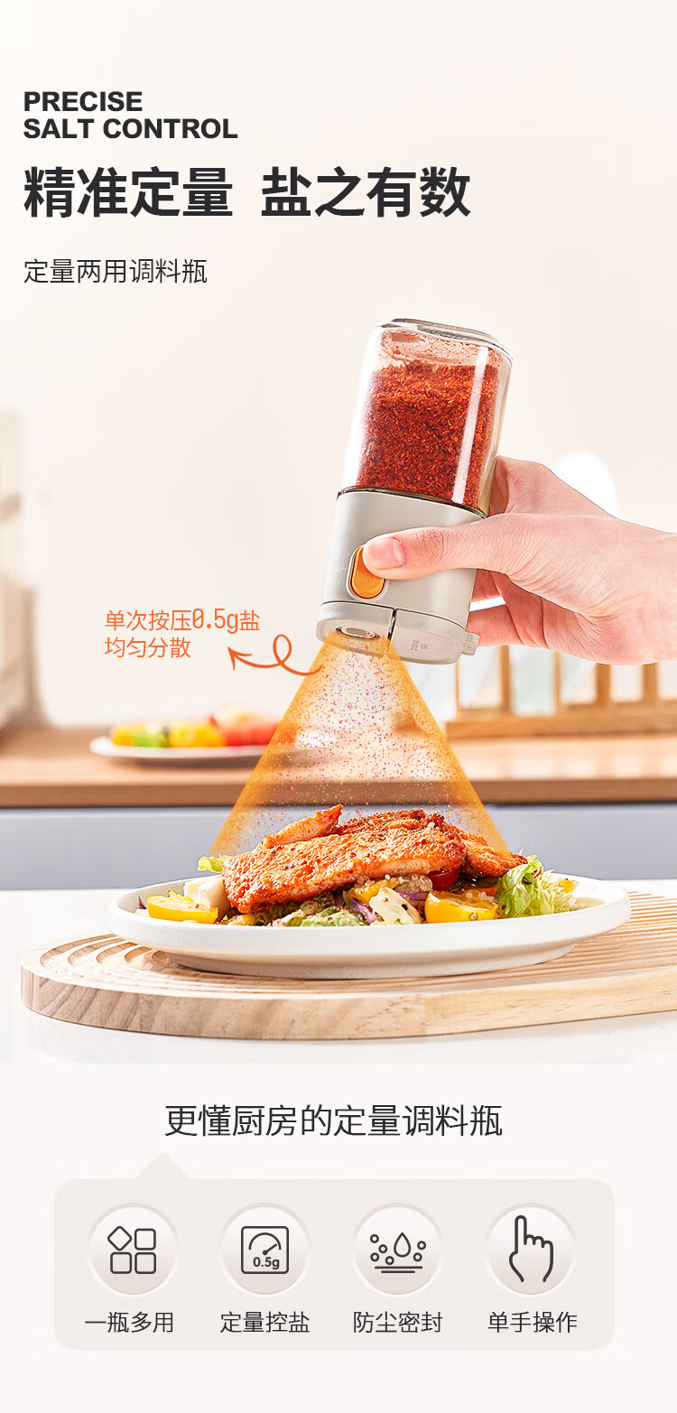 太力控盐罐盐瓶调味罐定量调料容器食盐糖厨房调料盒玻璃可计量两用