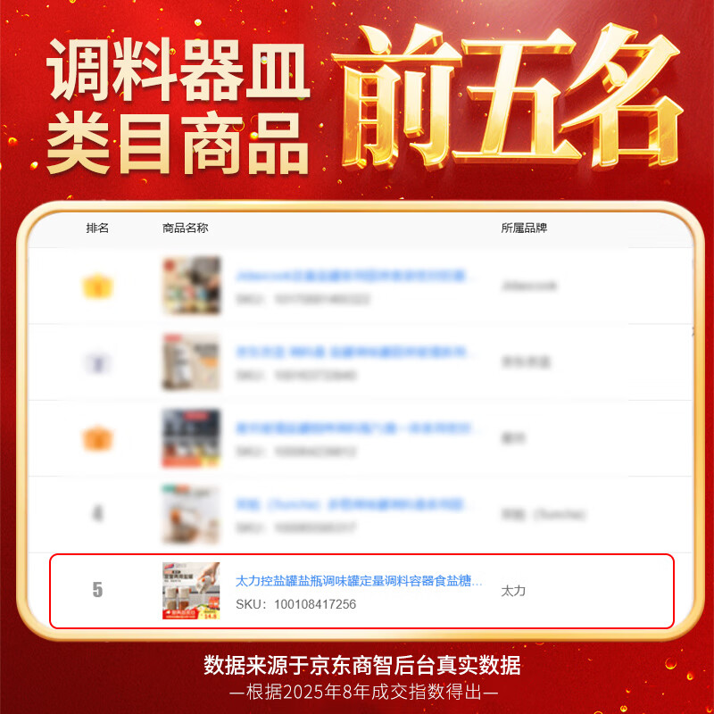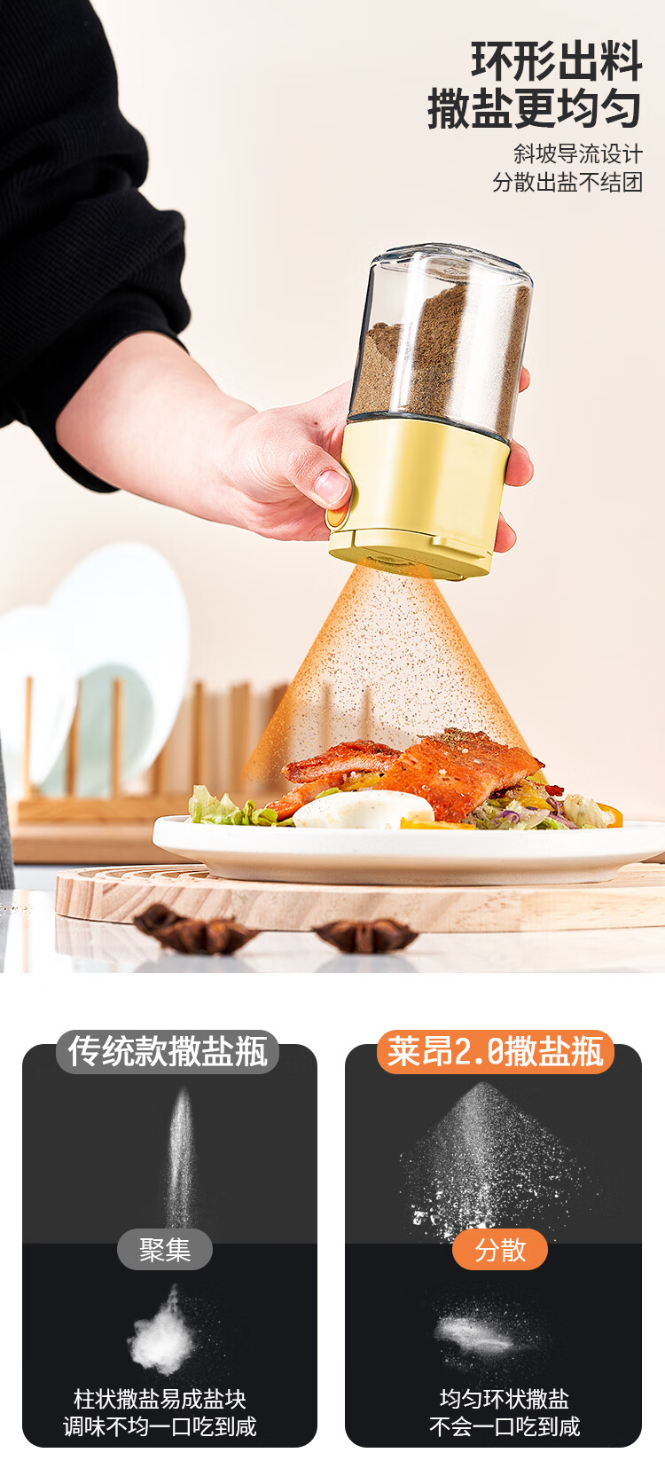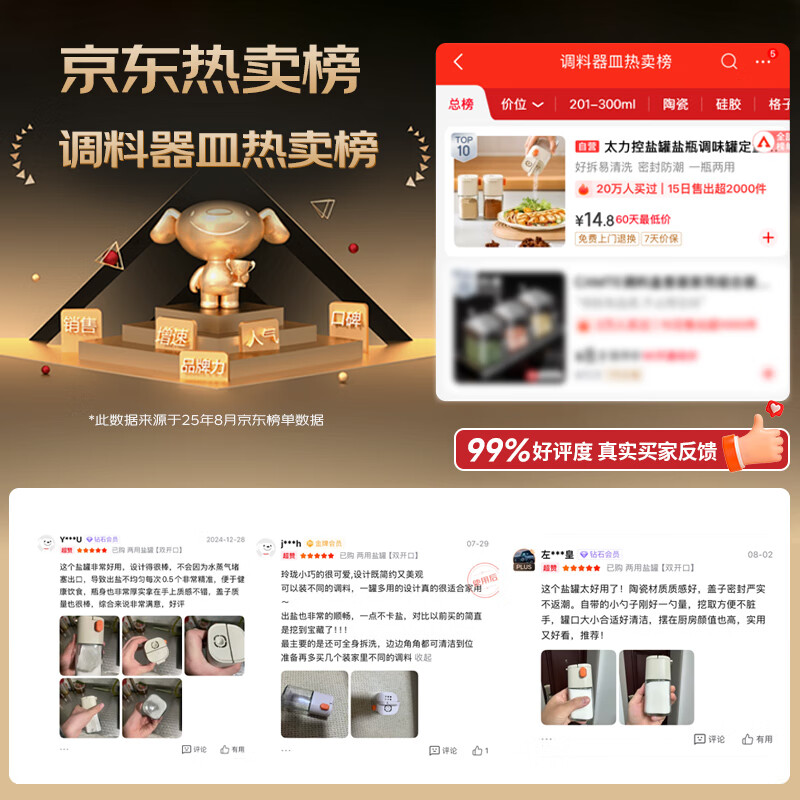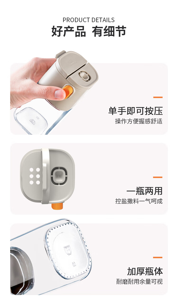 太力控盐罐盐瓶调味罐定量调料容器食盐糖厨房调料盒玻璃可计量两用